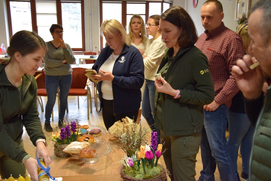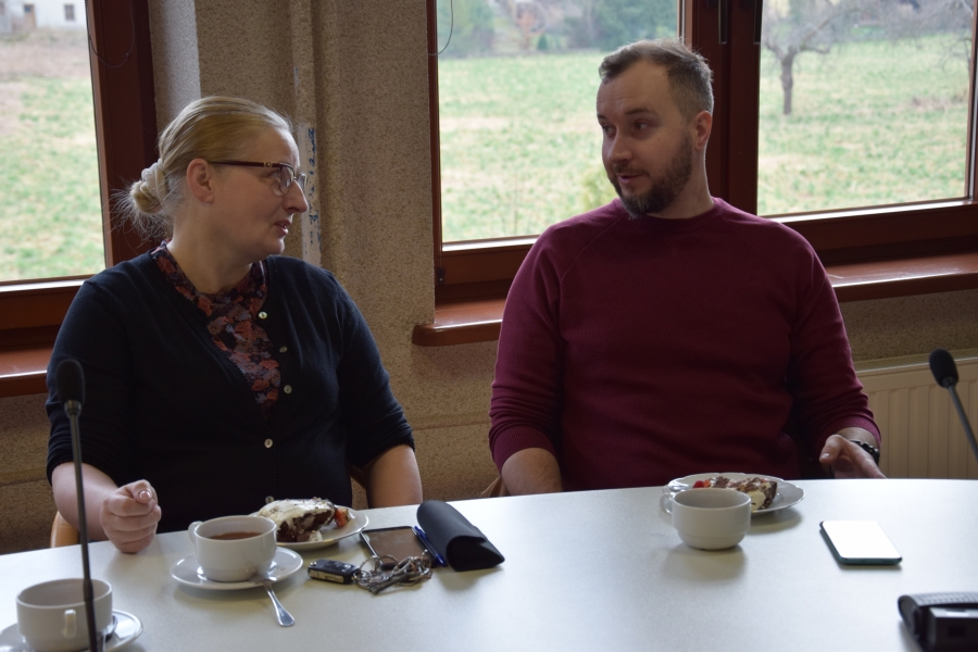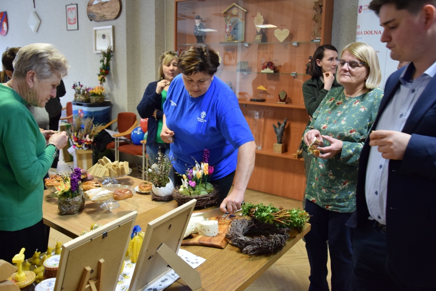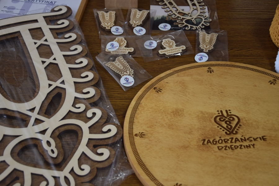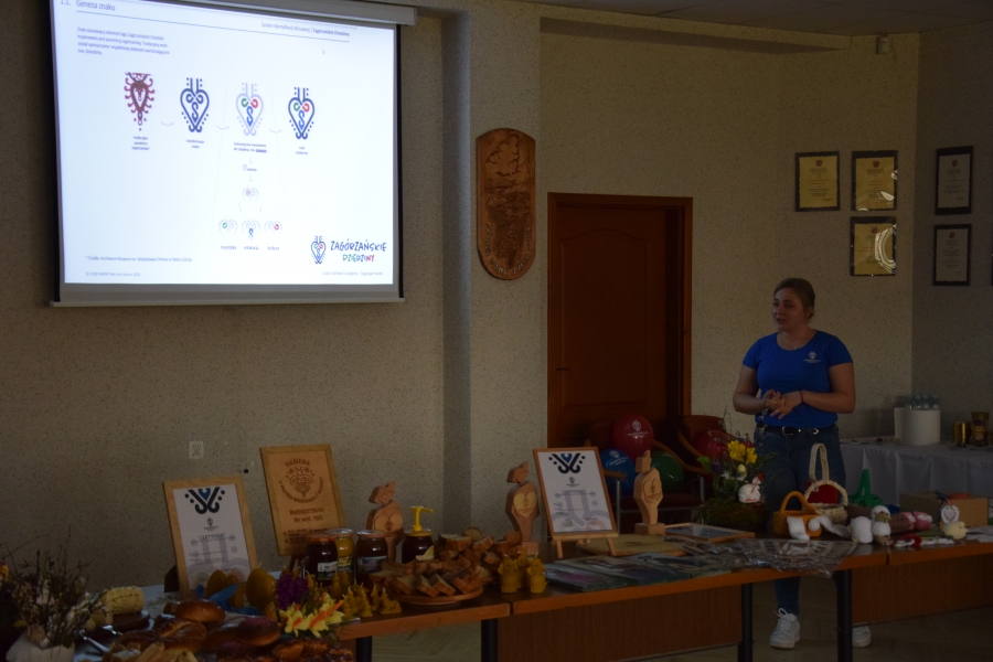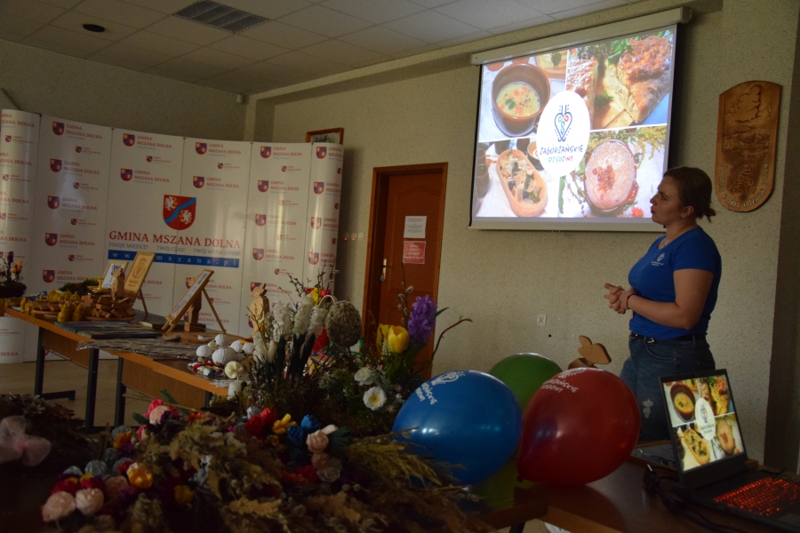 Okazuje się, że Zagórzańskie Dziedziny poszerzają swoje granice działania; do naszego zespołu dołączyła koronczarka, Zofia Piętoń z Półrzeczek, która swój debiut miała na Zagórzańskim Jarmarku Bożonarodzeniowym, gdzie po raz pierwszy prezentowała swoje prace. Podobny przypadek debiutu ma za sobą Maria Nawara z Olszówki, która (jako pierwsza w tym roku) zgłosiła się na Zagórzański Jarmark Wielkanocny z pięknymi ekostroikami i wiankami. Na spotkanie do Urzędu Gminy przyjechała z mężem Janem – i – tu niespodzianka dla wszystkich - okazało się, że mamy do czynienia z prawdziwym specjalistą w dziedzinie tradycyjnego, zagórzańskiego kolędowania! Nie wiemy tylko jak im się udało przywieźć te wszystkie rzeczy, ale stoły zapełniły się przepięknymi stroikami, palmami i wiankami z wiosennymi motywami. Prosto spod Lubonia Wielkiego przyjechał do nas Adam Mydlarz, właściciel „Wisilasu nad Sercowym Potokiem” – czyli nowoczesnej wersji kampingu w naturze. Glamping rozpowszechnia się powoli w różnych formach, w tym przypadku jest to forma namiotów przytwierdzonych do pni drzewa. Okazuje się, że i u nas, w takich leśnych kokonach można spać oddając się całkowitemu relaksowi i obcowaniu z przyrodą. I co najważniejsze, bardzo niedaleko!