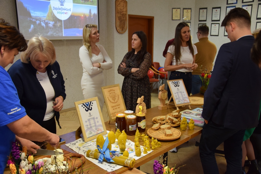 Dziękujemy za obecność niezastąpionym partnerom i markowym producentom, którzy dla nowych osób są przykładem i wsparciem we wdrożeniu się w dziedziny naszej działalności. Towarzyszyli nam i przedstawiali się również, bez wyjątku: Monika Woźniak z Pasieki u Piotra Woźniaka z Koniny, Monika Kubik „Gorczańskie sery”, Paulina Widzisz i Monika Olszewska z Gorczańskiego Parku Narodowego, Lucyna Pazdur z Bazy Szkoleniowo-Wypoczynkowej „Lubogoszcz”, artystka – nie tylko malarka! - Józefa Potaczek, Barbara Węglarz ze „Sznurkowych Perełek”, Paweł Widzisz „Drewniane Cuda z Kasinki Małej”, Dorota i Marianna Kościelniak ze Stowarzyszenia Miłośników Kultury Góralskiej „Pod Cyrlom”, Anna Michałek ze Stowarzyszenia „Gazda” z Niedźwiedzia i właścicielka „Gorczańskiej Zagrody”.