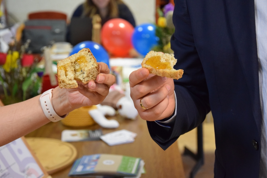 Oj było tego tyle, że trzeba było zrobić przerwę by ochłonąć i… coś przekąsić. A o nasze podniebienia dziedzinne rolniczki: chleb na miodzie od Moniki Woźniak można było zajadać z płynnym złotem, ale też z serkami od Moniki Kubik w różnych wersjach. Na słodko degustowaliśmy firmowy pakiet z mszańskiej piekarni.