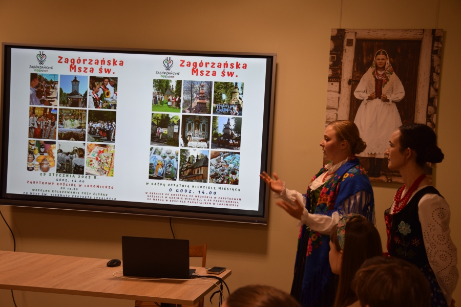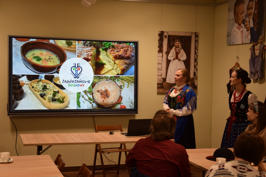 Zebrani usłyszeć mogli również kilka słów o działaniach podejmowanych w poszczególnych regionach. Prezentację na temat marki lokalnej Zagórzańskie Dziedziny i dobrych praktyk w zakresie kultywowania tradycji przedstawiły Dorota Kościelniak z Stowarzyszenia Miłośników Kultury Góralskiej „Pod Cyrlom” z Olszówki oraz Klaudia Gawronek. Omówione zostało również godne uwagi Archiwum Ludowe, którego inicjatorem jest Rafał Bałaś z Fundacji Górom, reprezentujący Górali Żywieckich. Ze strony Dariusza Kocemby, przedstawiciela Regionalnego Ośrodka Kultury w Bielsku-Białej, padło wiele ciekawych słów o organizowanym od 1964 roku Tygodniu Kultury Beskidzkiej. Po prezentacjach nastąpiło równie zajmujące wystąpienie Piotra Gąsienicy, dyrektora nowosądeckiego „Sokoła”, który zaprezentował funkcjonowanie Etnozagrody i zachęcił wszystkich do korzystania z platformy. To było bardzo owocne spotkanie!