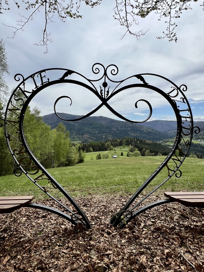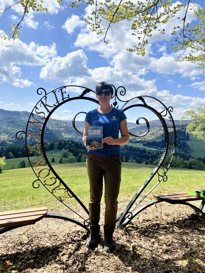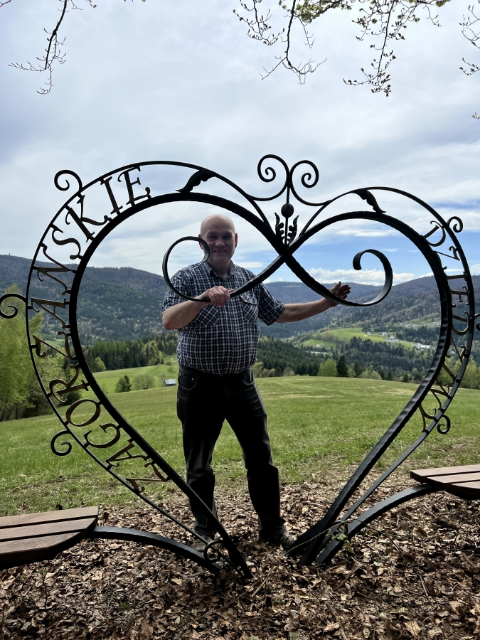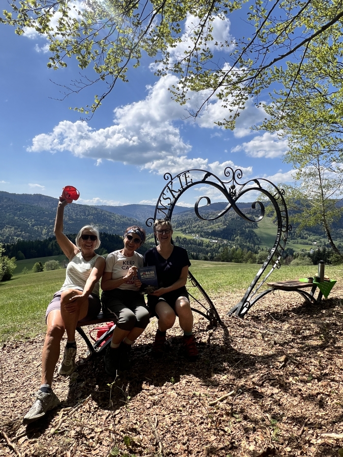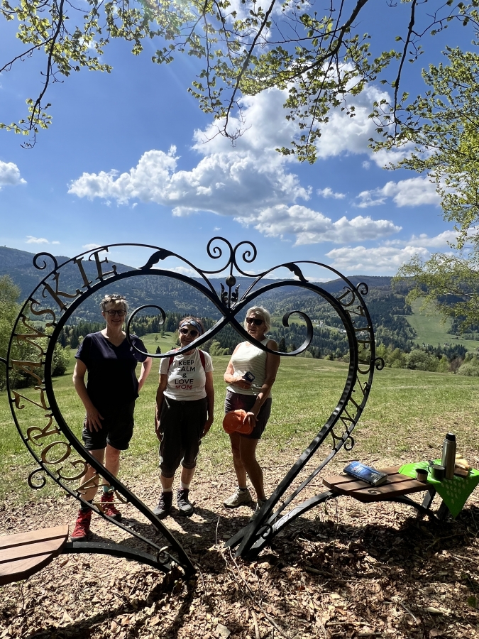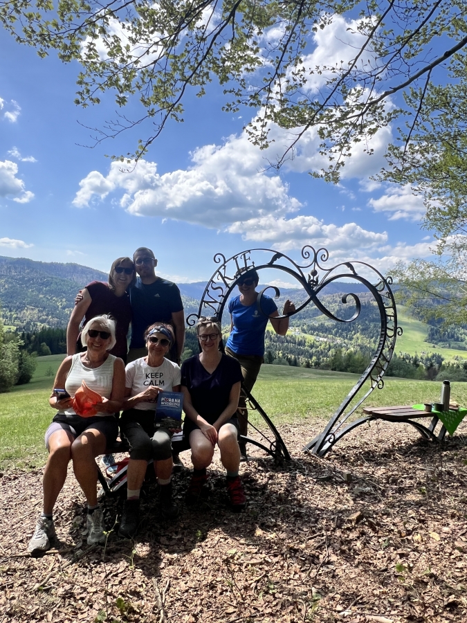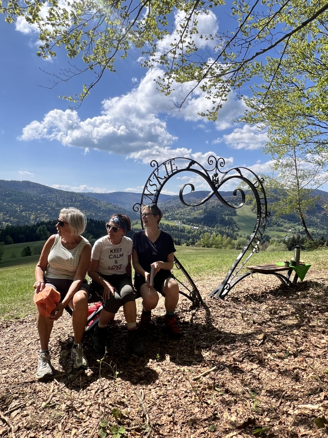 Ten krótki, ale znaczący, pobyt na Polanie Nowej przy żółtym szlaku z Lubomierza na Jasień zaowocował również nowymi znajomościami. Spotkaliśmy tam bowiem przesympatycznych turystów z Piły i Krakowa, zakochanych - tak jak my - w Beskidzie Wyspowym i Gorcach, którzy chętnie pozowali do zdjęć w naszej sercówce.