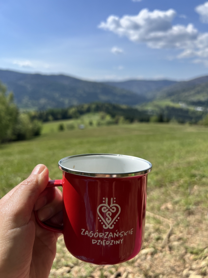 My na otwarcie tej atrakcji zaprosiliśmy Karolinę i Filipa Mleczek, turystycznych blogerów znanych jako Pora na wycieczkę, autorów przewodnika o tym samym tytule. Nie bez powodu spotkaliśmy się tam, gdzie Beskid Wyspowy wita się z Gorcami. Otuleni wszechobecną zielenią, ukojeni szumem lasu i trelami wszelakiego ptactwa, popijaliśmy kawę z naszych kultowych kubeczków, częstowaliśmy się wypiekami z piekarni SWAT oraz markowymi serami gorczańskimi od Moniki Kubik i… snuliśmy plany. Wszak autorzy przewodnika po 108 najpiękniejszych punktach widokowych w Małopolsce (do kupienia w Empiku i Wydawnictwie Bezdroża) zaprosili Zagórzan do pewnej baaaardzo ciekawej współpracy. Koniecznie zaobserwujcie nasze profile na FB i IG aby o tej kooperacji i niezwykłych miejscach godnych odwiedzenia w Zagórzańskich Dziedzinach dowiedzieć się więcej!