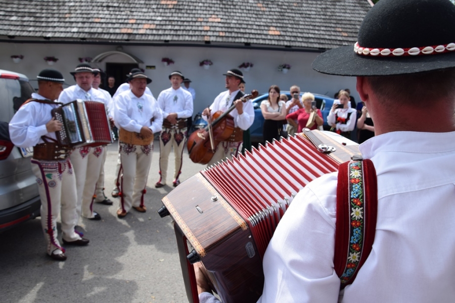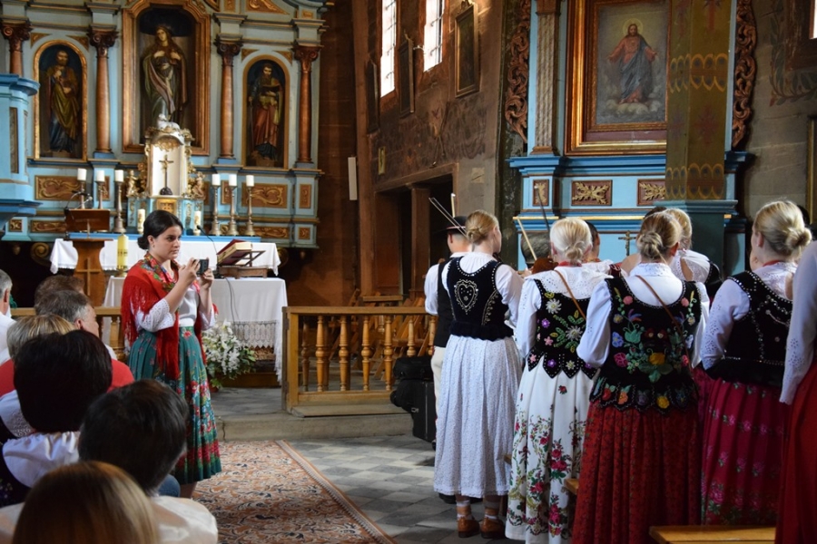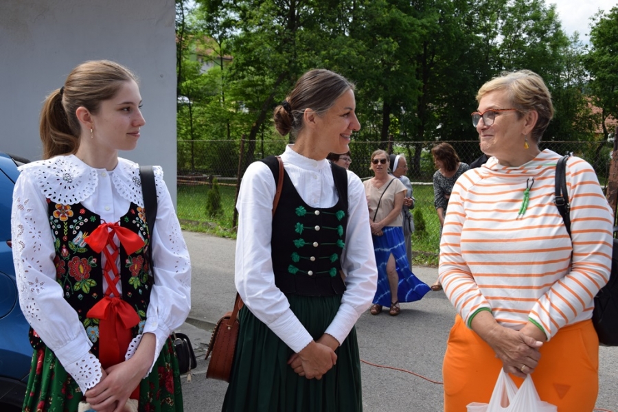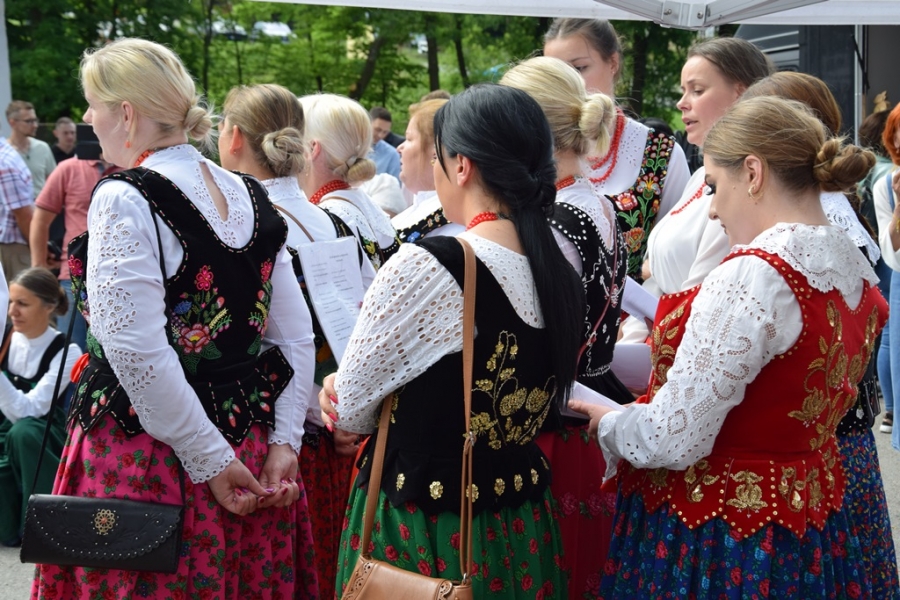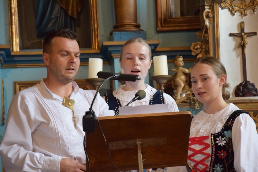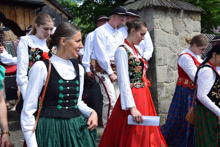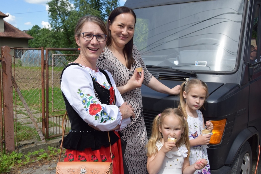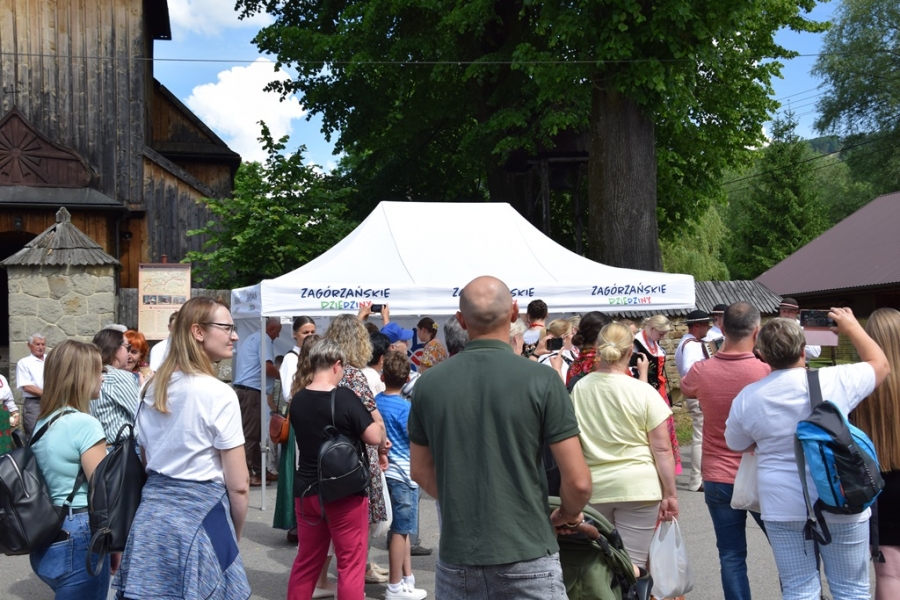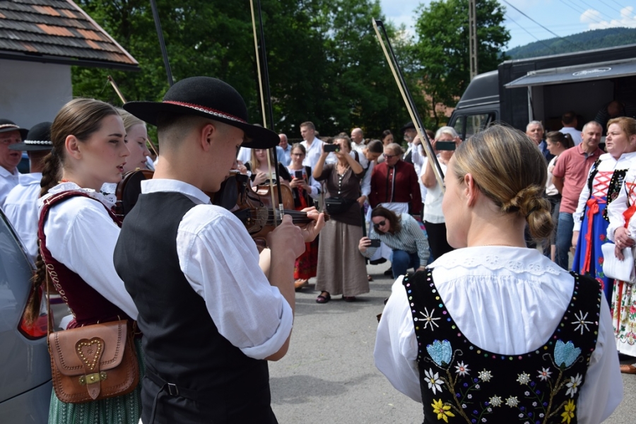 Tak zespół „Folkowe Łętowe” zaznaczył swoją obecność podczas zagórzańskiej Eucharystii, która w ostatnią niedzielę maja do Kasiny Wielkiej przyciągnęła również w swoje progi gości z odległych stron. Symbolicznie kończyliśmy majowe granie, co zaakcentował również w swoim repertuarze zespół, a dla naszych gości z Kurpii Zielonych był to ostatni dzień wizyty studyjnej. Co więcej, warto podkreślić, że grupa z LGD „Kurpsie Razem” specjalnie przełożyła swój przyjazd, dostosowując termin pobytu tam, gdzie Beskid Wyspowy wita się z Gorcami, by uczestniczyć w Zagórzańskiej Mszy św. Zebranych w świątyni przywitał w Niedzielę Trójcy Świętej proboszcz, Wiesław Maciaszek. Pięknie prezentowały się zagórzańskie stroje; a warto dodać, że Kurpie Zielone słyną z równie pięknych okryć. Jednak w tym przypadku zwracała uwagę melodia znanych pieśni, akcenty i gwarowe określenia, które szybko wychwycili uczestnicy wizyty studyjnej. „Folkowe Łętowe” nie poprzestało na wykonaniu pieśni tylko w kościele. Jak zwyczajowo przyjęto – ciąg dalszy nastąpił na placu przed kościołem. Tam mogliśmy obserwować jak zespół podzielony na dwie grupy, męską i żeńską, wygrywa i wyśpiewuje kolejne utwory. Dodatkową atrakcją były również nasze zagórzańskie stoiska, które wyjątkowo i „na wszelki wypadek” szukały schronienia pod dziedzinnym namiotem… Obawialiśmy się deszczu patrząc na kłębiące się na horyzoncie granatowe chmury! Tym razem na okolicznościowym kiermaszu produktów lokalnych pojawiły się różnego rodzaju serki gorczańskie od Moniki Kubik: wędzone, białe z różnymi dodatkami, krojone i zalane oliwą, a nawet bryndza! Po sąsiedzku „Sznurkowe Perełki” – Basia i Asia były przygotowane, by spieszyć z ratunkiem dla tych, którzy mieli braki w prezentach na obchody Dnia Matki. Widzieliście ich piękne, sznurkowe kwiaty? Poza tym nie zabrakło również innych propozycji, zarówno dla modnych fashionistek i małych smyków… A na ochłodę i na deser - dla wszystkich - lody! Najlepsze smaki - wiadomo, sprawdzone, od Maćka Komenzy vel Lody i Spółka.
