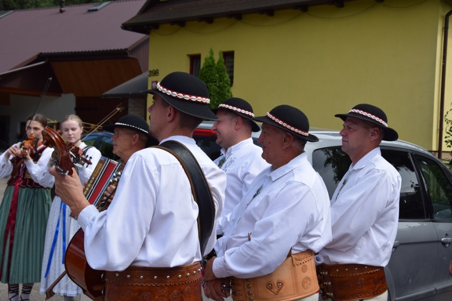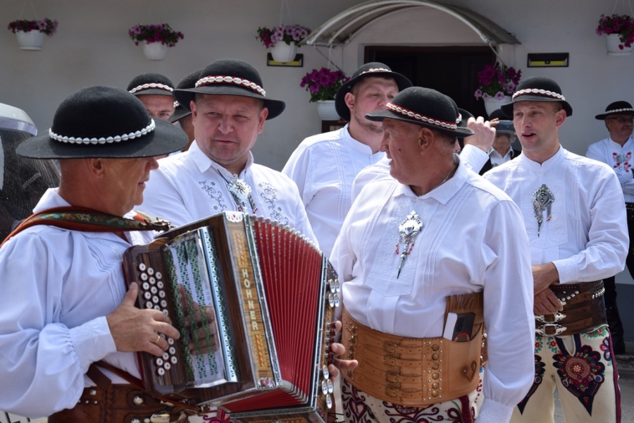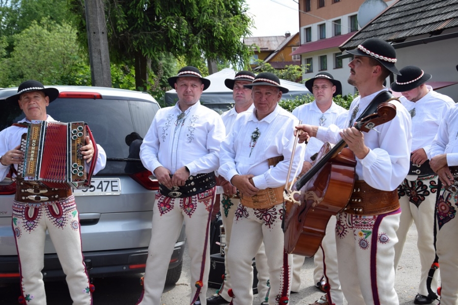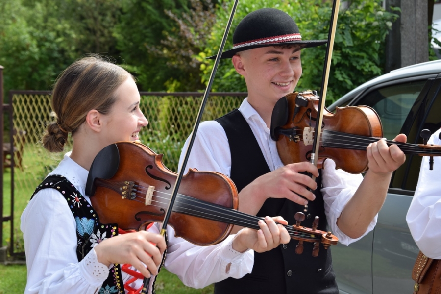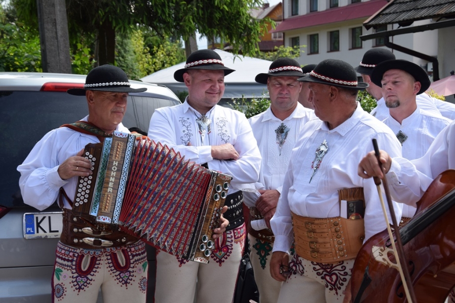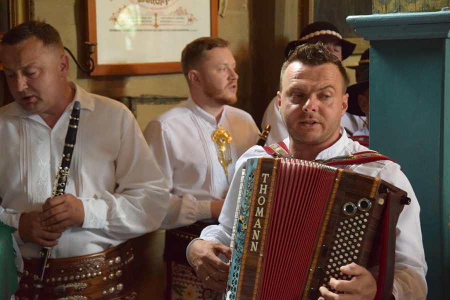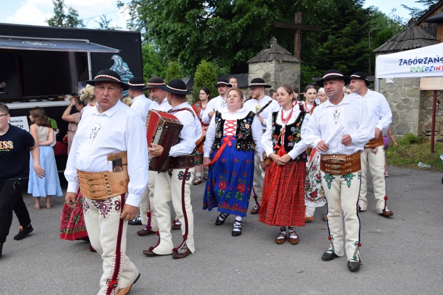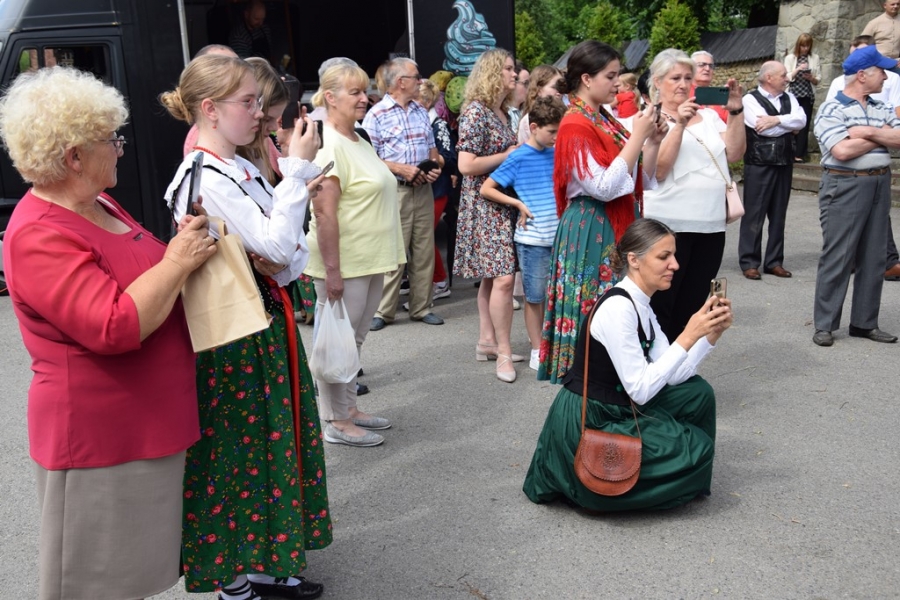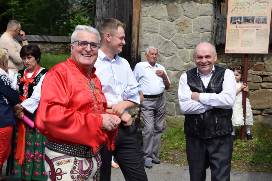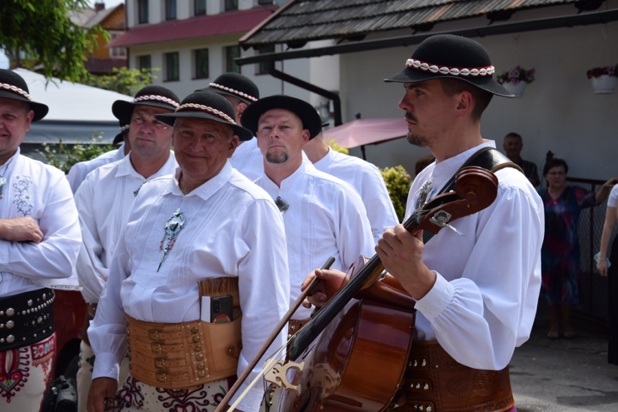 Tak zespół „Folkowe Łętowe” zaznaczył swoją obecność podczas zagórzańskiej Eucharystii, która w ostatnią niedzielę maja do Kasiny Wielkiej przyciągnęła również w swoje progi gości z odległych stron. Symbolicznie kończyliśmy majowe granie, co zaakcentował również w swoim repertuarze zespół, a dla naszych gości z Kurpii Zielonych był to ostatni dzień wizyty studyjnej. Co więcej, warto podkreślić, że grupa z LGD „Kurpsie Razem” specjalnie przełożyła swój przyjazd, dostosowując termin pobytu tam, gdzie Beskid Wyspowy wita się z Gorcami, by uczestniczyć w Zagórzańskiej Mszy św. Zebranych w świątyni przywitał w Niedzielę Trójcy Świętej proboszcz, Wiesław Maciaszek. Pięknie prezentowały się zagórzańskie stroje; a warto dodać, że Kurpie Zielone słyną z równie pięknych okryć. Jednak w tym przypadku zwracała uwagę melodia znanych pieśni, akcenty i gwarowe określenia, które szybko wychwycili uczestnicy wizyty studyjnej. „Folkowe Łętowe” nie poprzestało na wykonaniu pieśni tylko w kościele. Jak zwyczajowo przyjęto – ciąg dalszy nastąpił na placu przed kościołem. Tam mogliśmy obserwować jak zespół podzielony na dwie grupy, męską i żeńską, wygrywa i wyśpiewuje kolejne utwory. Dodatkową atrakcją były również nasze zagórzańskie stoiska, które wyjątkowo i „na wszelki wypadek” szukały schronienia pod dziedzinnym namiotem… Obawialiśmy się deszczu patrząc na kłębiące się na horyzoncie granatowe chmury! Tym razem na okolicznościowym kiermaszu produktów lokalnych pojawiły się różnego rodzaju serki gorczańskie od Moniki Kubik: wędzone, białe z różnymi dodatkami, krojone i zalane oliwą, a nawet bryndza! Po sąsiedzku „Sznurkowe Perełki” – Basia i Asia były przygotowane, by spieszyć z ratunkiem dla tych, którzy mieli braki w prezentach na obchody Dnia Matki. Widzieliście ich piękne, sznurkowe kwiaty? Poza tym nie zabrakło również innych propozycji, zarówno dla modnych fashionistek i małych smyków… A na ochłodę i na deser - dla wszystkich - lody! Najlepsze smaki - wiadomo, sprawdzone, od Maćka Komenzy vel Lody i Spółka.