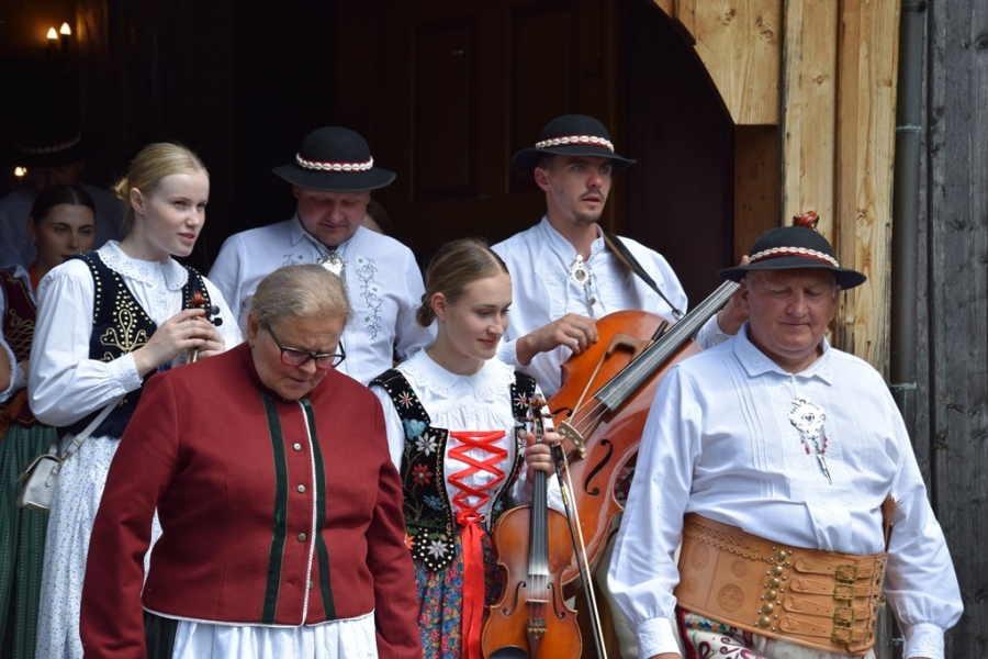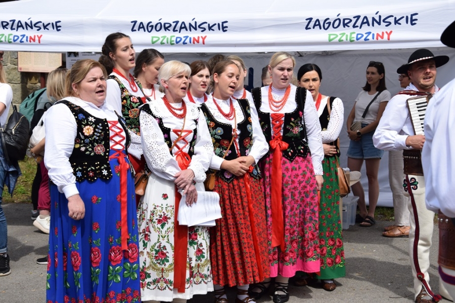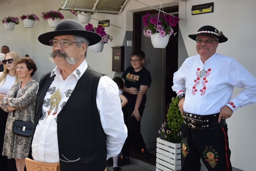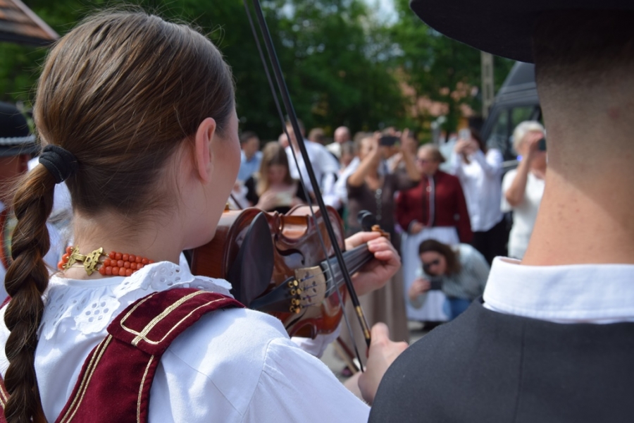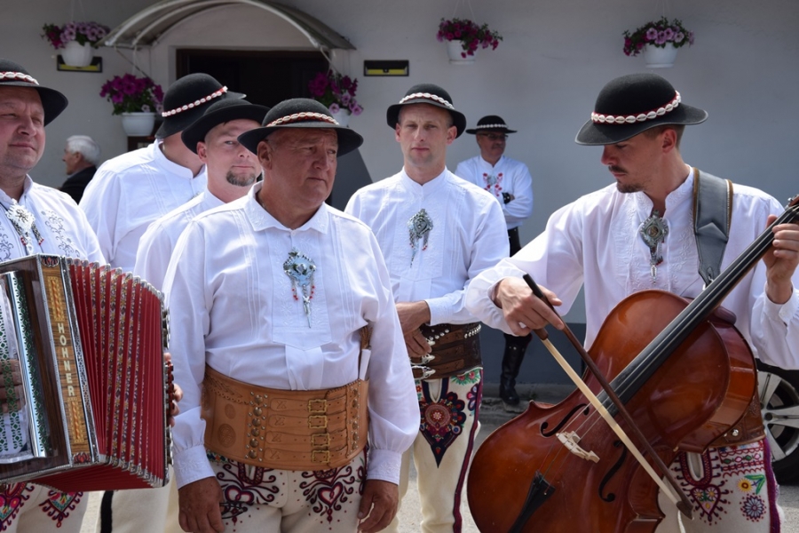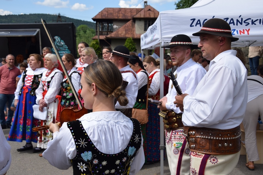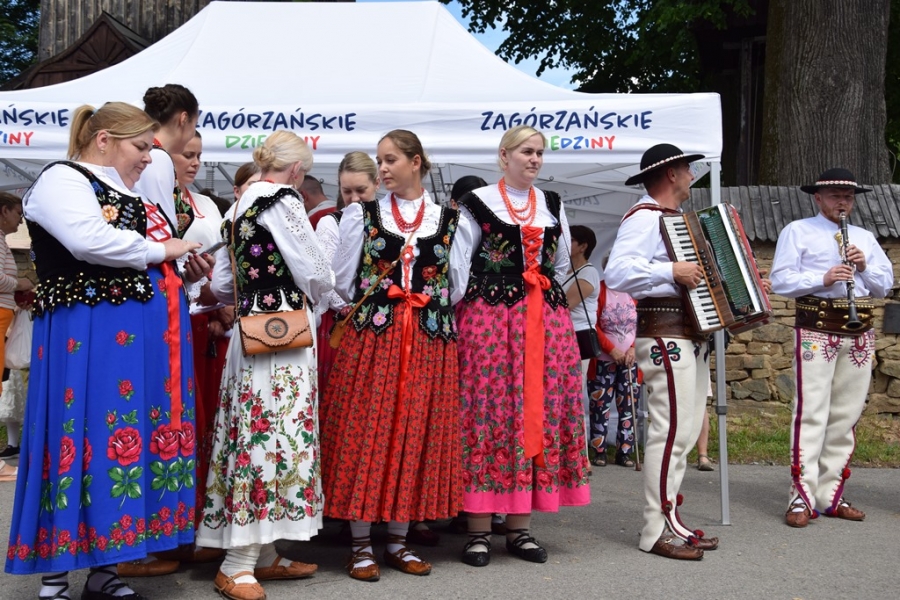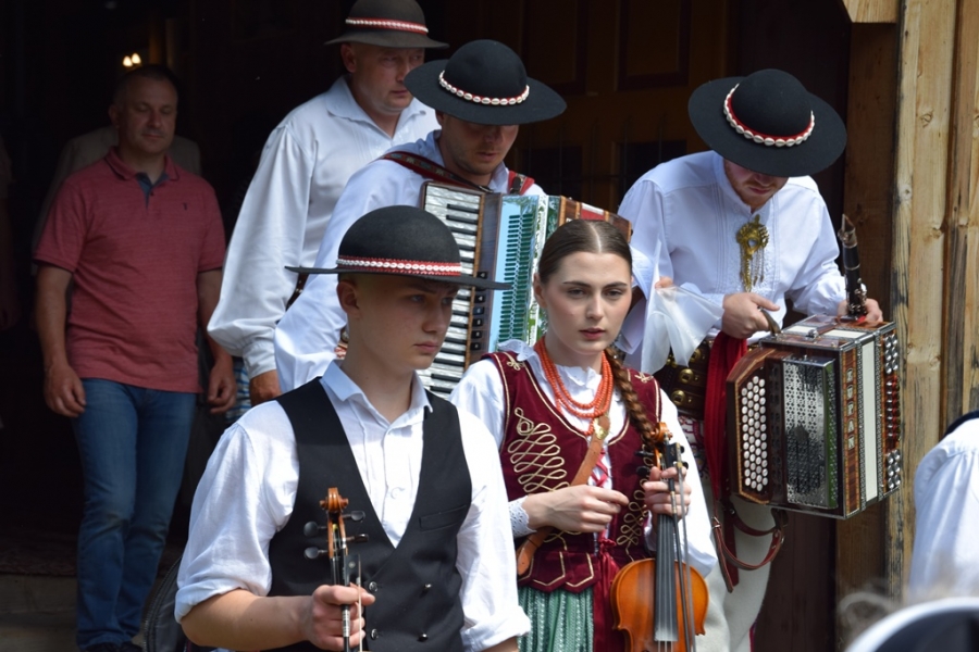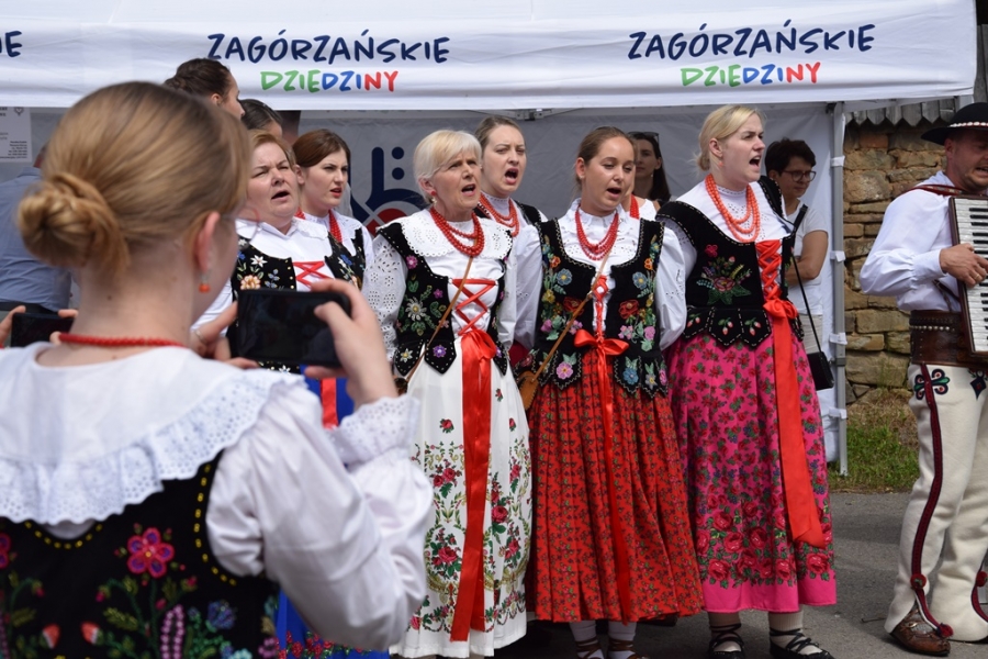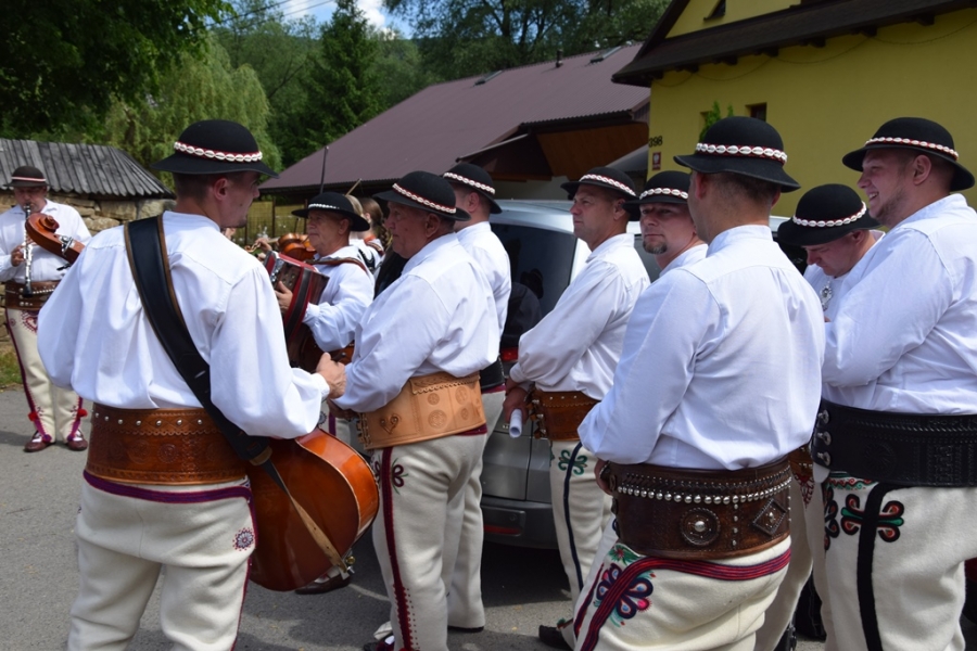 Tak zespół „Folkowe Łętowe” zaznaczył swoją obecność podczas zagórzańskiej Eucharystii, która w ostatnią niedzielę maja do Kasiny Wielkiej przyciągnęła również w swoje progi gości z odległych stron. Symbolicznie kończyliśmy majowe granie, co zaakcentował również w swoim repertuarze zespół, a dla naszych gości z Kurpii Zielonych był to ostatni dzień wizyty studyjnej. Co więcej, warto podkreślić, że grupa z LGD „Kurpsie Razem” specjalnie przełożyła swój przyjazd, dostosowując termin pobytu tam, gdzie Beskid Wyspowy wita się z Gorcami, by uczestniczyć w Zagórzańskiej Mszy św. Zebranych w świątyni przywitał w Niedzielę Trójcy Świętej proboszcz, Wiesław Maciaszek. Pięknie prezentowały się zagórzańskie stroje; a warto dodać, że Kurpie Zielone słyną z równie pięknych okryć. Jednak w tym przypadku zwracała uwagę melodia znanych pieśni, akcenty i gwarowe określenia, które szybko wychwycili uczestnicy wizyty studyjnej. „Folkowe Łętowe” nie poprzestało na wykonaniu pieśni tylko w kościele. Jak zwyczajowo przyjęto – ciąg dalszy nastąpił na placu przed kościołem. Tam mogliśmy obserwować jak zespół podzielony na dwie grupy, męską i żeńską, wygrywa i wyśpiewuje kolejne utwory. Dodatkową atrakcją były również nasze zagórzańskie stoiska, które wyjątkowo i „na wszelki wypadek” szukały schronienia pod dziedzinnym namiotem… Obawialiśmy się deszczu patrząc na kłębiące się na horyzoncie granatowe chmury! Tym razem na okolicznościowym kiermaszu produktów lokalnych pojawiły się różnego rodzaju serki gorczańskie od Moniki Kubik: wędzone, białe z różnymi dodatkami, krojone i zalane oliwą, a nawet bryndza! Po sąsiedzku „Sznurkowe Perełki” – Basia i Asia były przygotowane, by spieszyć z ratunkiem dla tych, którzy mieli braki w prezentach na obchody Dnia Matki. Widzieliście ich piękne, sznurkowe kwiaty? Poza tym nie zabrakło również innych propozycji, zarówno dla modnych fashionistek i małych smyków… A na ochłodę i na deser - dla wszystkich - lody! Najlepsze smaki - wiadomo, sprawdzone, od Maćka Komenzy vel Lody i Spółka.