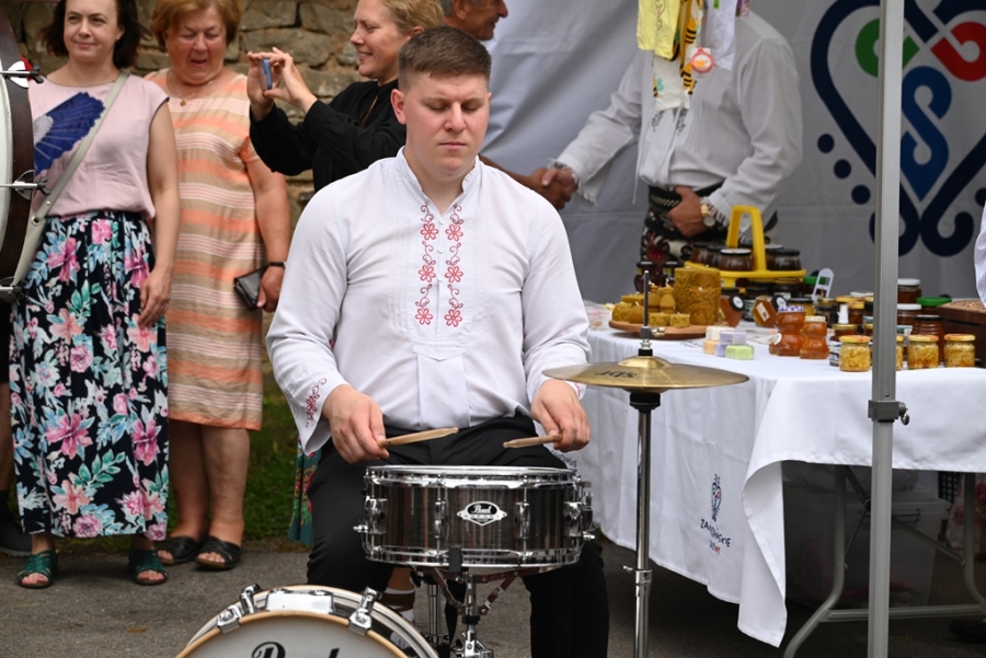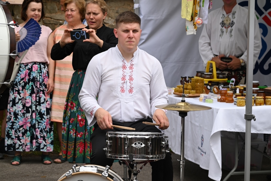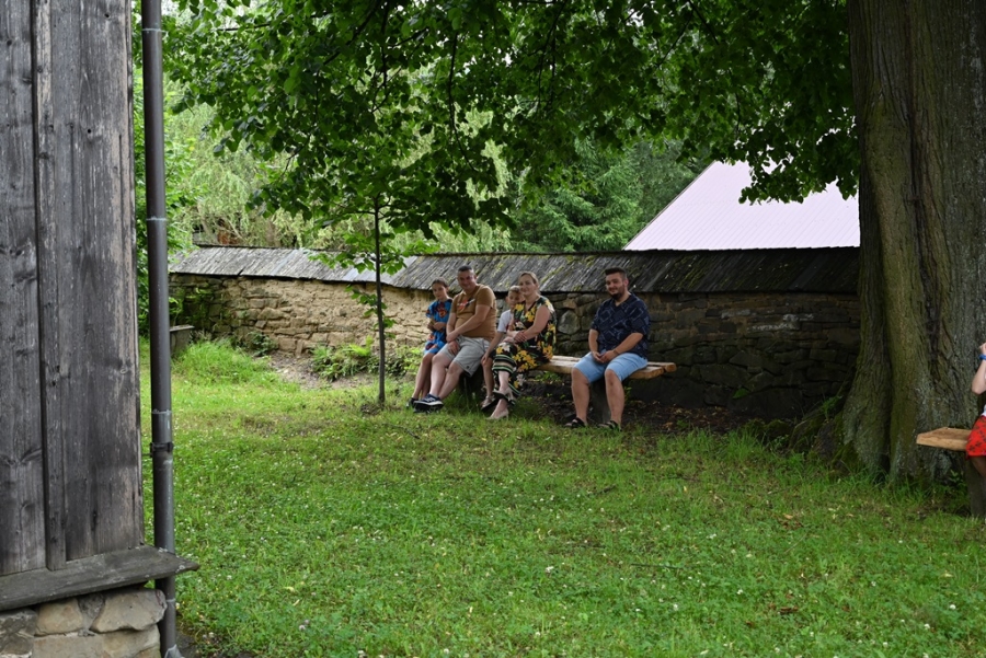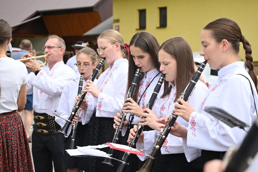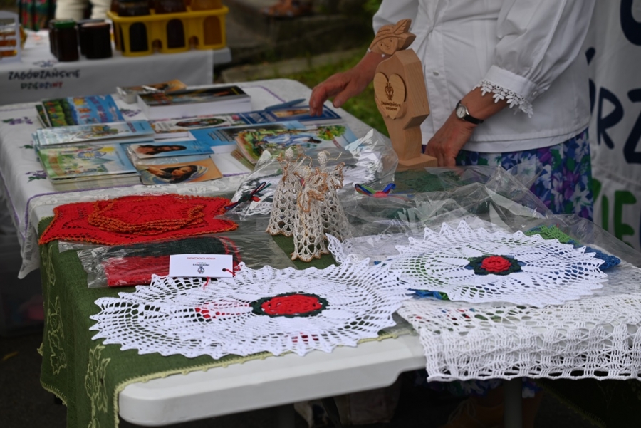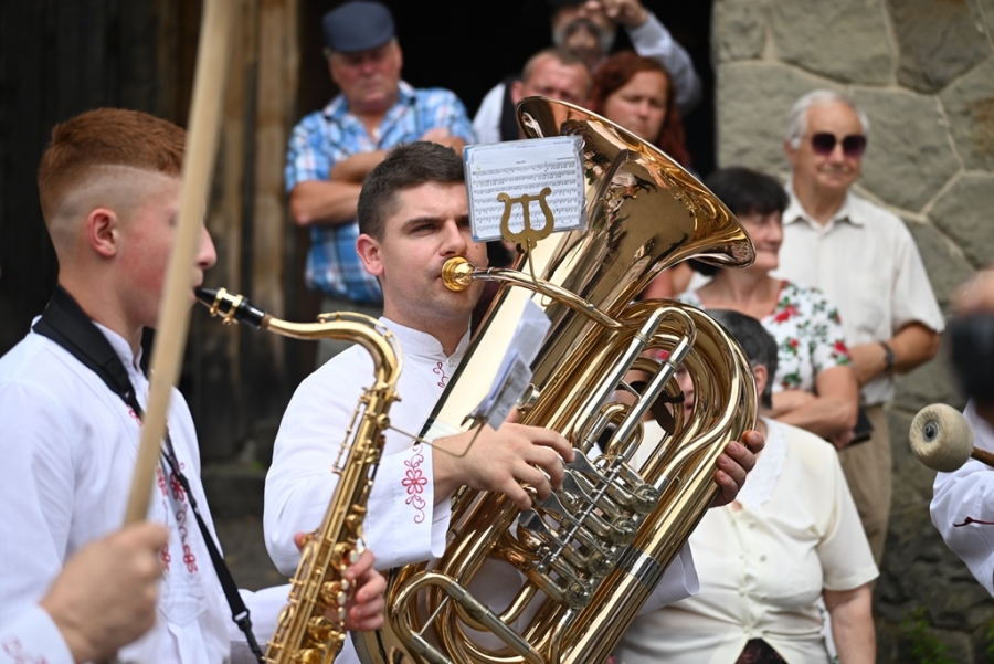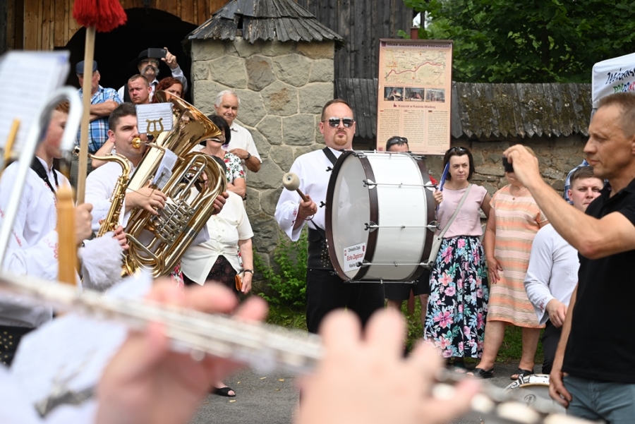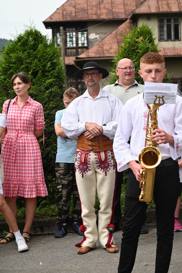 I my sobie nie wyobrażamy, że cokolwiek mogłoby zmienić tę naszą nową tradycję. Okazało się, że wewnątrz kościoła upał wcale nie doskwierał, a schronienie przed słońcem, tym którzy zostali na zewnątrz, dały rozłożyste, również zabytkowe lipy. Gorąco się na naszych zagórzańskich sercach zrobiło tylko wówczas, gdy ksiądz przeczytał piękną intencję Mszy ofiarowaną przez członków Orkiestry Dętej Echo Zagórzan z Kasiny Wielkiej. „Za tych, którzy dbają o dziedzictwo Zagórzan”, czyli za nich samych i wszystkich, którzy tego dnia zgromadzili się w zabytkowym kościele. Mimo wszystko. Charakterystyczna dla Adama Rusnarczyka, kapelmistrza orkiestry, lekkość wygrywanych dźwięków, zachwyciła turystów i naszych gości. „W Krakowie za taki koncert trzeba by było sporo zapłacić, a tutaj? garstka ludzi…” (tych, którzy zostali po zakończonej Eucharystii, aby na placu przed kościołem wysłuchać okolicznościowego koncertu) – skomentował stały bywalec naszych comiesięcznych wydarzeń, mieszkający w grodzie Kraka. Tak, był upał. Ale doskwierał wszystkim; księdzu, organiście, kościelnemu…, dziewczynom dokumentującym wydarzenie…, młodym i starszym, a przede wszystkim muzykom orkiestry, którzy w pełnym słońcu koncertowali dla tych, którzy jednak zostali aby ich posłuchać… Miło było również naszym wystawcom z kiermaszu produktów lokalnych, że uczestnicy Zagórzańskiej Mszy św. zainteresowali się również efektami ich pracy. Niektórzy zaopatrzyli się w Gorczańskie sery u Moniki Kubik, inni zrobili zapas miodów z Pasieki u Piotra Woźniaka z Koniny, jeszcze inni rozkochali się w koronkach od Zofii Piętoń… Najbardziej zadowolone miny mieli jednak ci, którym udało się kupić książeczki edukacyjne, do których osobistą dedykację wpisywała ich autorka, Władysława Anna Jamróz.
