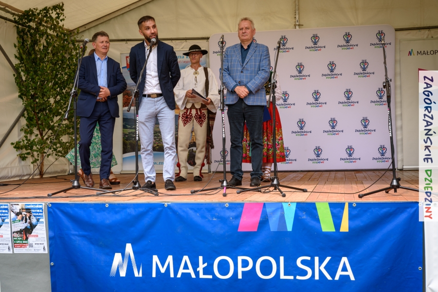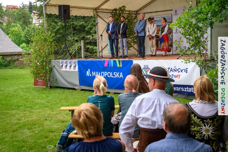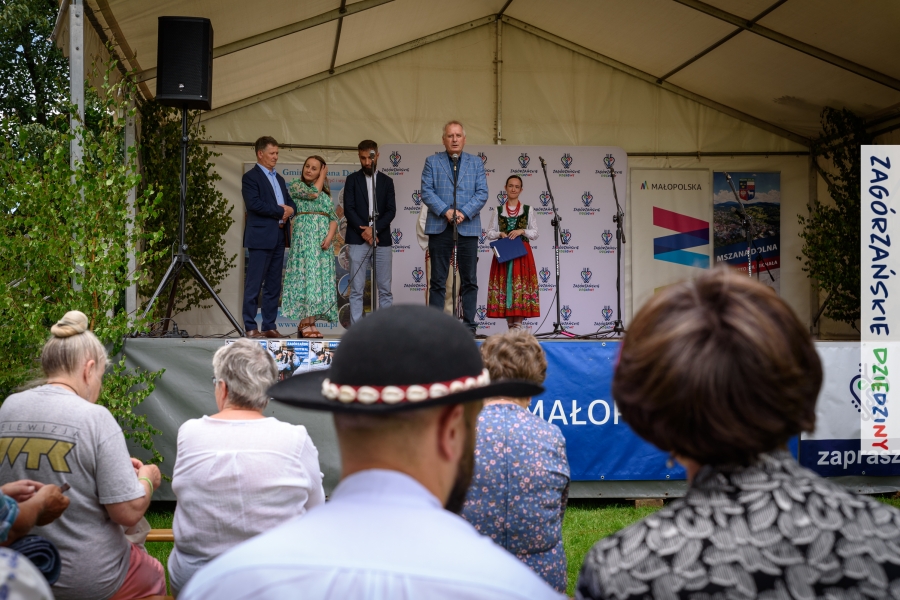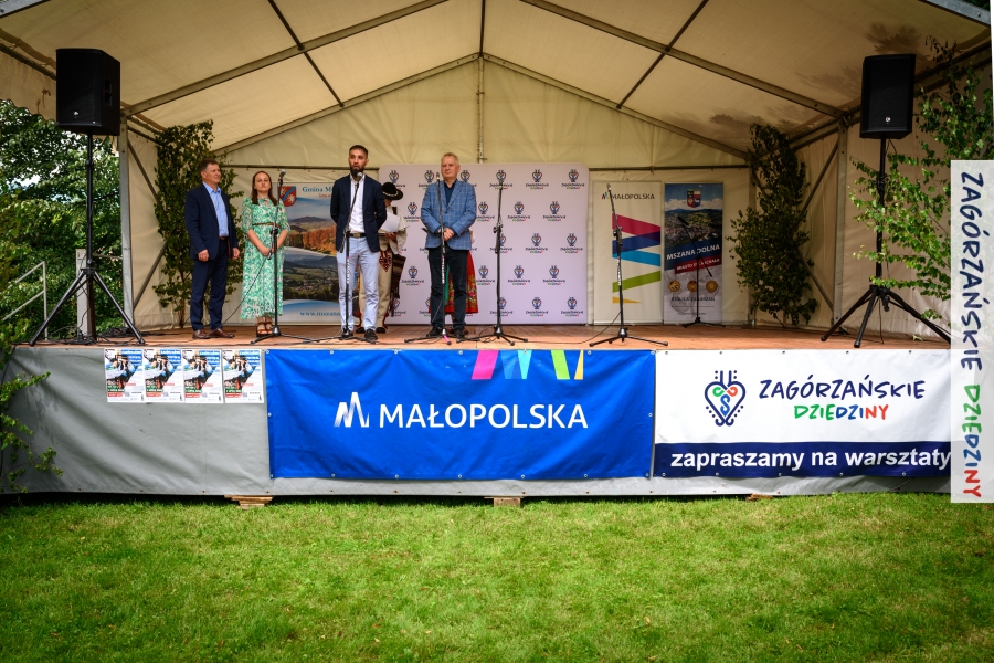 Festiwal otwarł oficjalnie Radny Sejmiku Województwa Małopolskiego oraz Prezes Małopolskiej Organizacji Turystycznej, Grzegorz Biedroń, wraz z gospodarzami zagórzańskich samorządów: Wójtem Gminy Mszana Dolna, Mirosławem Cichorzem, będącym również koordynatorem marki lokalnej Zagórzańskie Dziedziny, Rafałem Rusnakiem, Wójtem Gminy Niedźwiedź, a także Joanną Barnowską, Wiceprzewodniczącą Rady Gminy Mszana Dolna. Swoje dwa słowa „witacki” dorzucił gospodarz miejsca, dyrektor Muzeum, Wojciech Kusiak, któremu w tym dniu przypadła również rola konferansjera, przy sympatycznym i niezwykle powabnym a zarazem profesjonalnym! udziale Klaudii Gawronek. Miłym i oczekiwanym gościem Festiwalu był Wojciech Winkel - Przewodnik Tatrzański, Międzynarodowy Przewodnik Górski UIMLA, Instruktor Przewodnictwa, Przewodnik po Rabce – Zdroju oraz sympatyk Zagórzańskich Dziedzin. Nie mogło wśród nas zabraknąć również zacnego grona tworzącego Kapitułę Znaku Promocyjnego Zagórzańskie Dziedziny. Zaproszenie do wspólnego, dziedzinnego świętowania, przyjęli: Olga Gałek (specjalistka od marek lokalnych i animatorka Zagórzańskich Dziedzin), Marek Panek (Przewodniczący Kapituły) oraz ks. Jan Zając. Co prawda na chwilkę, ale wpadli również się z nami przywitać i wysłuchać wykładów dwaj księża „po cywilu”: Konrad Kozioł, dyrektor Wydziału Katechetycznego Kurii Metropolitalnej w Krakowie, Proboszcz Parafii we Włosani oraz Piotr Sałaciak, wikariusz rabczańskiej Parafii św. Marii Magdaleny.