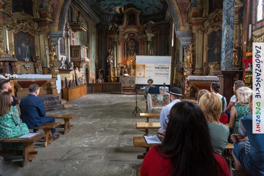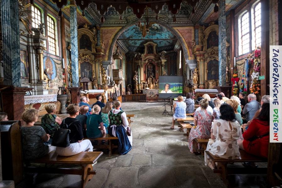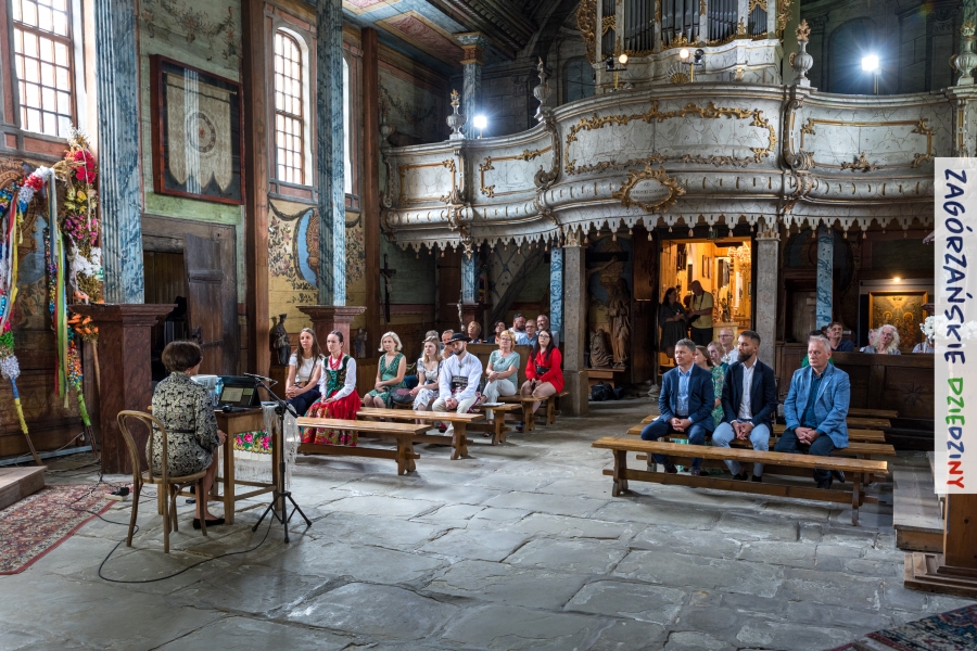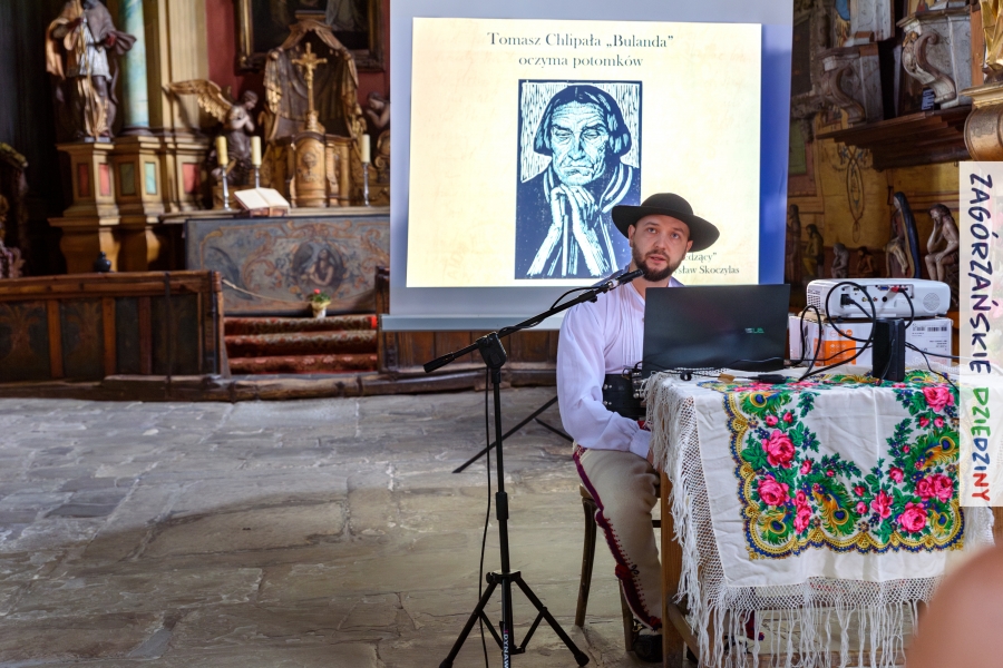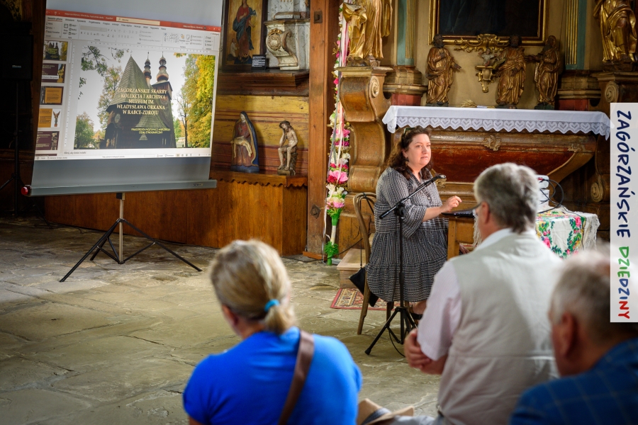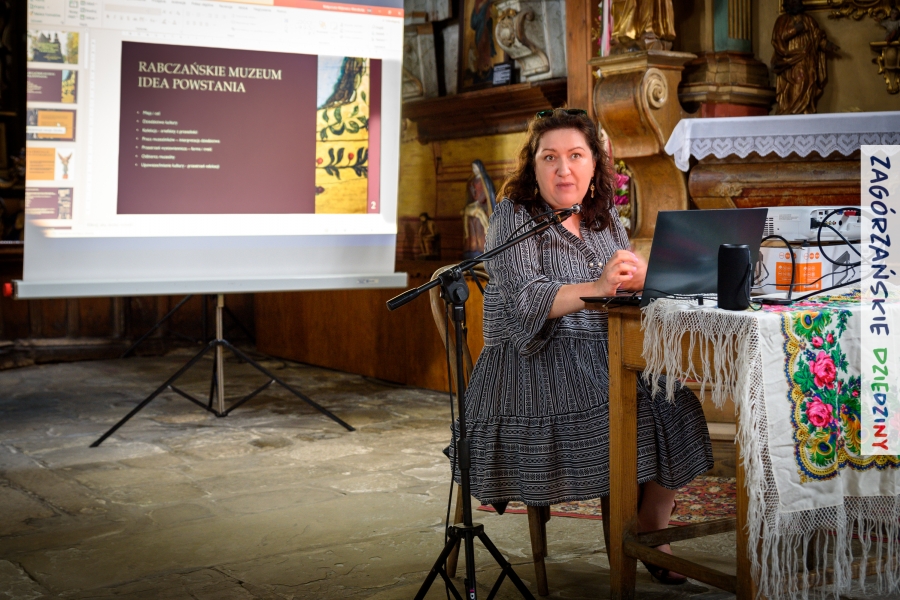 Niedługo po oficjalnym otwarciu uroczystości zebrani znaleźli się w murach Muzeum, gdzie odbyły się prelekcje na temat dziedzictwa zagórzańskiego. Pierwsze słowa wygłosiła Katarzyna Ceklarz – dr nauk humanistycznych w zakresie etnologii i antropologii kulturowej, socjolog, wykładowczyni Akademii Nauk Stosowanych w Nowym Targu, przewodniczka beskidzka i tatrzańska oraz Wiceprzewodnicząca Kapituły Znaku Promocyjnego Zagórzańskie Dziedziny. Jej wykład pt. „Pamiętnik Sebastiana Flizaka – niezwykły dokument do dziejów Zagórzan” koncentrował się wokół postaci tego zasłużonego etnografa i był niezwykle ciekawym studium jego życia. Równie interesujących informacji dostarczył zgromadzonym film dokumentalny „Władysław Orkan” w reżyserii Adama Lewandowskiego, Absolwenta Filmoznawstwa na Uniwersytecie Jagiellońskim i kursu SCRIPT PRO w Szkole Wajdy, reżysera i autora scenariuszy do filmów dokumentalnych „Niezależna Republika Samosiuk”, „Pod Mocnym Smarzolem”, „Film o Pilchu”. Zestawienie zawikłanych kolei losu z wybitnym talentem literackim pozwoliło w sposób autentyczny przedstawić sylwetkę Piewcy Gorców i ukazać jego fenomen. Niepowtarzalną i wyjątkową postać zaprezentował Łukasz Zapała, doktorant w Instytucie Języka Polskiej Akademii Nauk w Krakowie, a przede wszystkim potomek Tomasza Chlipały, słynnego bacy pochodzącego z Lubomierza. Bulanda, jak zwali go jemu współcześni, odżył we wspomnieniach z rodzinnego archiwum i urzekł zebranych swą oryginalnością. W dalszej kolejności o tym, co kryje się w murach rabczańskiego przybytku, opowiedziała Małgorzata Wójtowicz-Wierzbicka – etnolożka, badaczka terenowa i zastępczyni Dyrektora Muzeum im. Władysława Orkana w Rabce -Zdroju. Przedstawiła pokrótce zbiory, które trafiły tam z terenu Beskidu Wyspowego i Gorców. W swoim wykładzie pt. „Zagórzańskie skarby: kolekcja i archiwa Muzeum im. Władysława Orkana w Rabce-Zdroju” ujęła istotę jego działań, a więc ochronę i popularyzację dziedzictwa Zagórzan. Po prelekcji oprowadziła słuchaczy po wnętrzu budynku, dzięki czemu mogli oni na własne oczy ujrzeć zbiory zgromadzone na przestrzeni wieków.