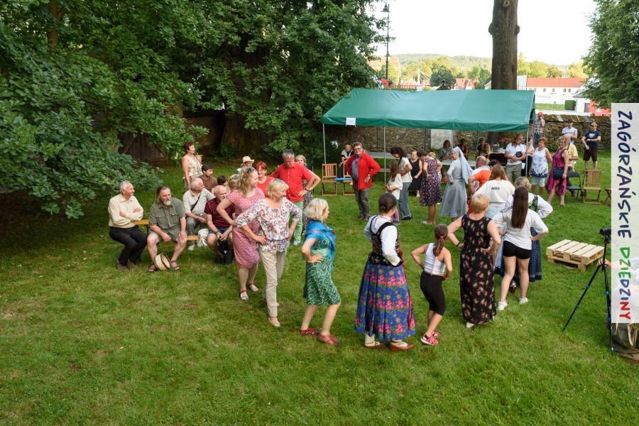 Nudy nie było! I chociaż z wydarzenia w przeważającej większości skorzystali kuracjusze z całej Polski przebywający w rabczańskich sanatoriach na turnusach rehabilitacyjnych i goście, którzy wybrali region na miejsce swojego wakacyjnego wypoczynku (ba! niektórzy specjalnie zboczyli z górskiego szlaku turystycznego żeby skorzystać z propozycji organizatorów Festiwalu), to nas cieszyła przede wszystkim obecność Zagórzan, tych ze „stolicy” (np. Państwo Starmachowie, Jamrozowie) jak i z Łostówki, Mszany Górnej czy Poręby Wielkiej (rodzina Rysiów wspiera wszystkie nasze inicjatywy!), którzy przyjechali uzupełnić swoją wiedzę o dziedzictwie regionu. Zajrzeli do nas również rabczańscy artyści a także radni Gminy Mszana Dolna: Monika Góralik oraz Rafał Kubowicz. Po raz kolejny dziedzinną ofertą zachwyciły się dwie turystyczne rodzinki całym swoim sercem kibicujące Zagórzańskim Dziedzinom, znane w blogosferze jako „Mamo, a daleko jeszcze?” i „Odkrywając Beskidy”. Skutecznie rzuciliśmy również przynętę „Szewndaczom na luzie” i Sylwii Bal – popularyzatorom aktywnego trybu życia i górskich wędrówek. Ich instagramowe relacje z wydarzenia poszybowały w świat! Redaktorską opieką otoczył nas Piotr Kuczaj reprezentujący portal gorce24.pl (zobacz), a dziedzinne chwile uwiecznił również drugi z rabczańskich fotografów: Jan Ciepliński (zobacz). Nieodgadnionym dla nas do tej pory jest tajemniczy, cichutki turysta z plecakiem retro, który cierpliwie czekał na sceniczne popisy Zagórzan i nagrywał je rzetelnie. Podobno mają być opublikowane na YT. Jak się tylko pojawią, na pewno się taką informacją z Wami podzielimy. Oczywiście o dokumentację zadbały również niezawodne w tej materii Monika Kościelniak! (już zapowiadamy film na naszym kanale YT) i Agnieszka Józefiak – Lewandowska (zobacz), które dzielnie wspierał Marcin Gałek (to jego fotorelację Wam dzisiaj prezentujemy).