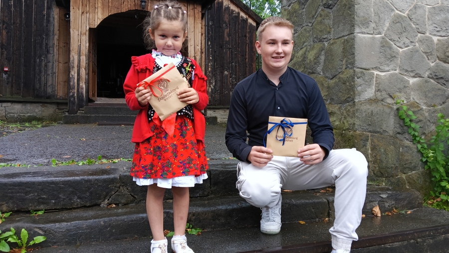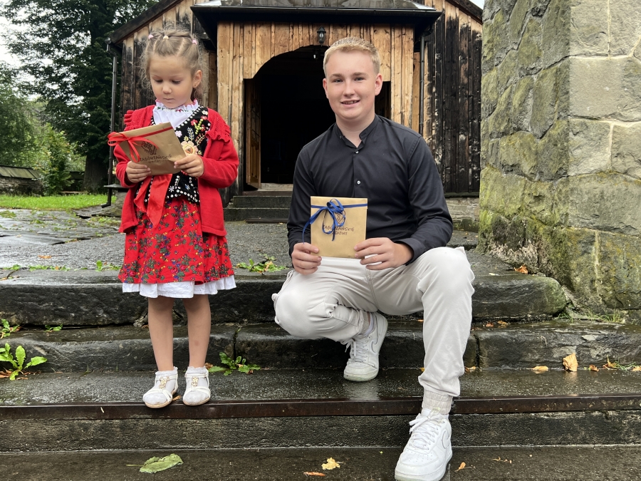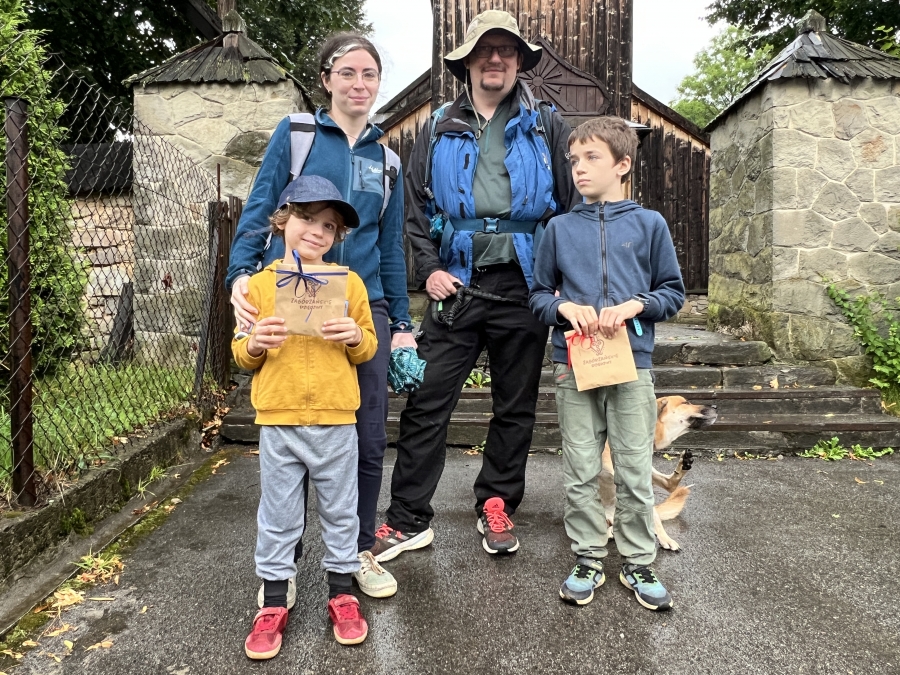 Padający deszcz zelżał na chwilkę, więc pod gołym niebem mogliśmy też dopełnić naszej instagramowej obietnicy i wręczyć nagrody – breloki od Drewniane cuda z Kasinki – tym, którzy prawidłowo odpowiedzieli na nasze pytanie. Tym razem zdobione zagórzańskimi wzorami zawieszki trafiły do Zosi z Kasinki Małej i Bartka z Koniny.