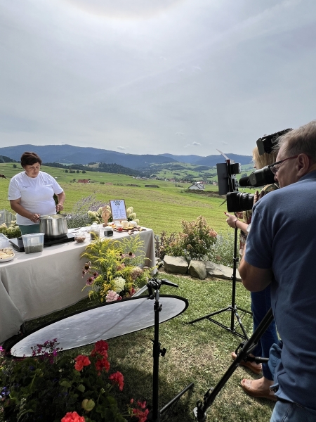 Dzisiaj informujemy, że efekty tej pracy będziecie mogli obejrzeć już jutro, 3 września, o godzinie 19:15, na antenie krakowskiej trójki. Emisja reportażu „Dziedzictwo kulinarne marką regionu” to znak, że tegoroczna Agropromocja zbliża się wielkimi krokami. My, razem ze Śwarnymi Babkami z KGW Łętowe oraz Moniką Kubik, rolniczką produkującą Gorczańskie sery, już intensywnie się przygotowujemy do udziału w tym wielkim święcie małopolskiego rolnictwa. Gotowi do gościnnych występów są już nasi pszczelarze: Monika i Piotr Woźniakowie prowadzący Pasiekę u Piotra Woźniaka z Koniny i Józef Bierowiec, właściciel Pasieki Przygórze nr 248 z Mszany Dolnej. Wszyscy, na czele z Mirosławem Cichorzem, Wójtem Gminy Mszana Dolna, koordynatorem zagórzańskiej marki lokalnej, reprezentować będą Zagórzańskie Dziedziny na głównym stoisku organizatora wydarzenia. Podczas niedzielnej Mszy św. odprawionej przy „papieskim” ołtarzu w Starym Sączu, a potem również na agropromocyjnej scenie, no i przy naszym stoisku, zagrają Kościelnioki z Olszówki działający w ramach Stowarzyszenie Miłośników Kultury Góralskiej Pod Cyrlom.