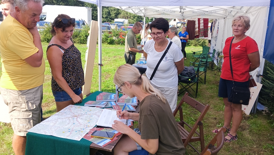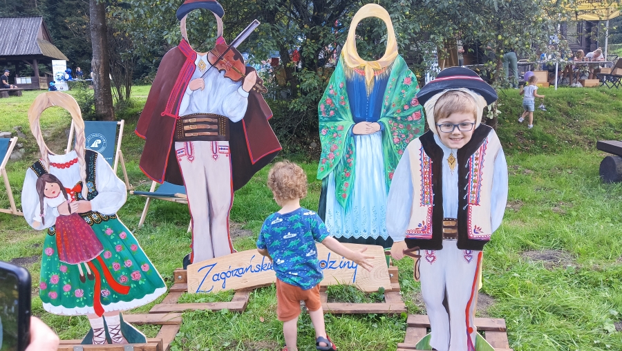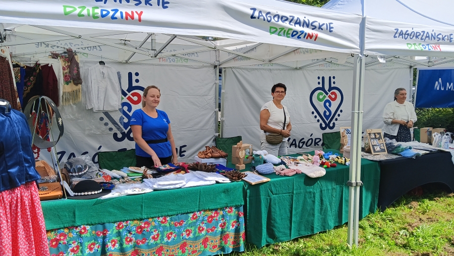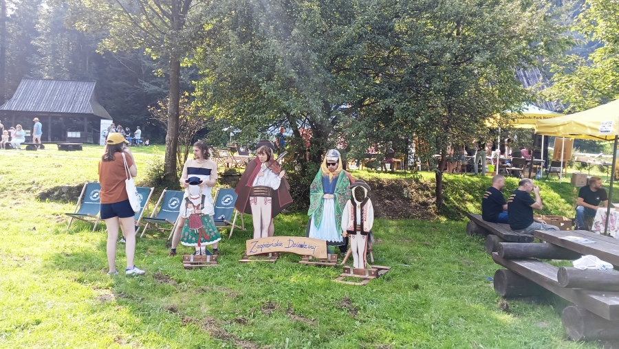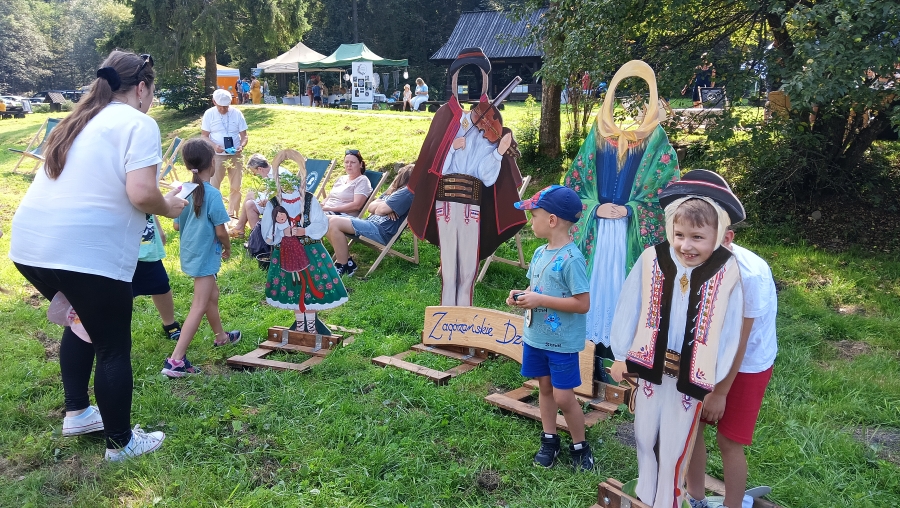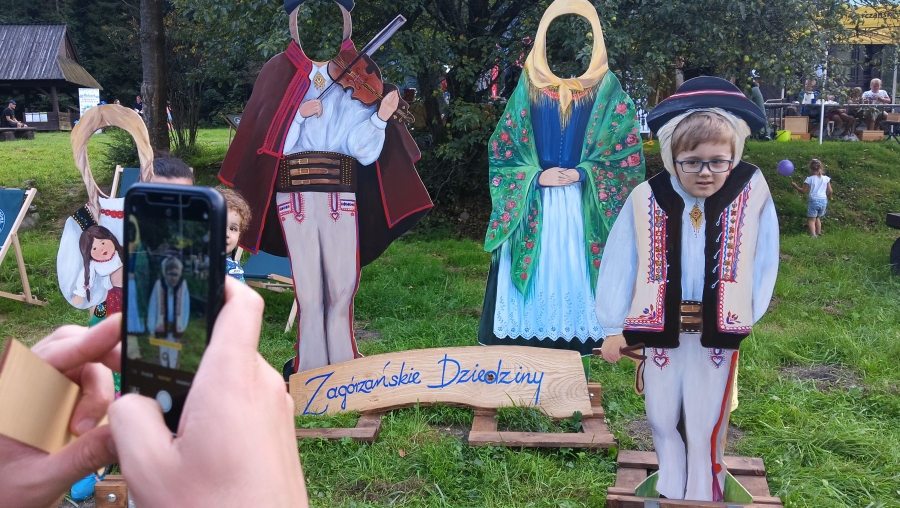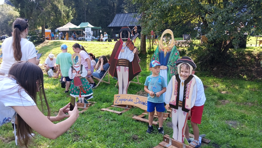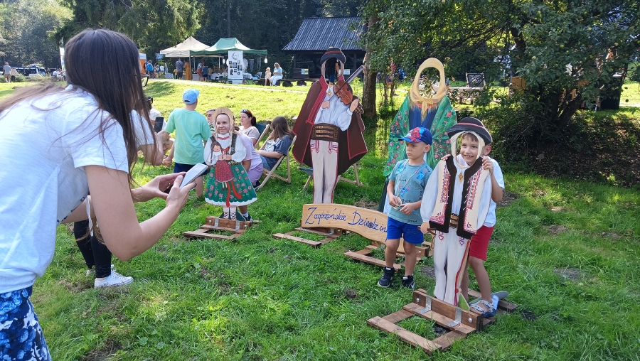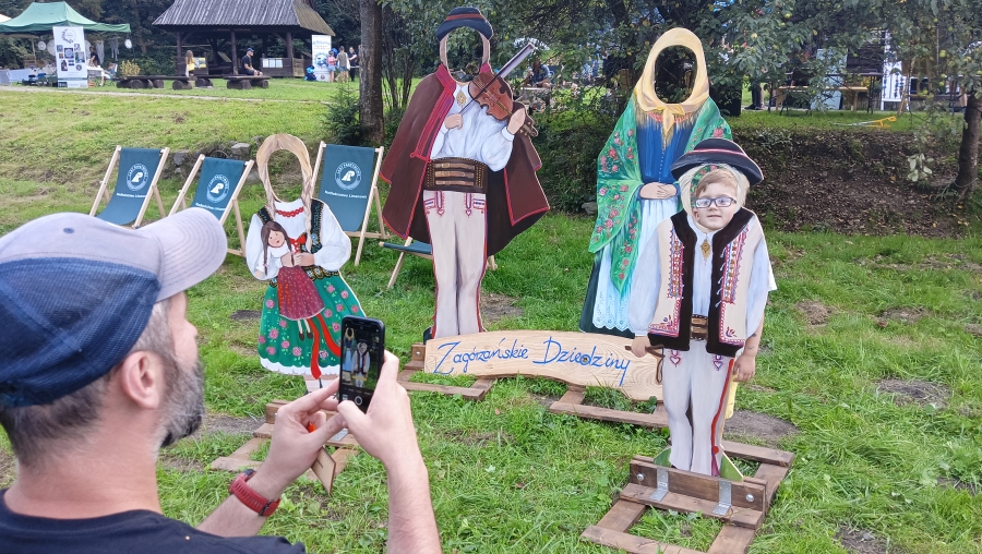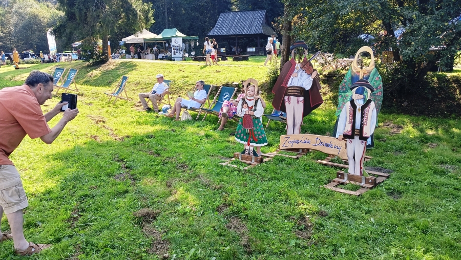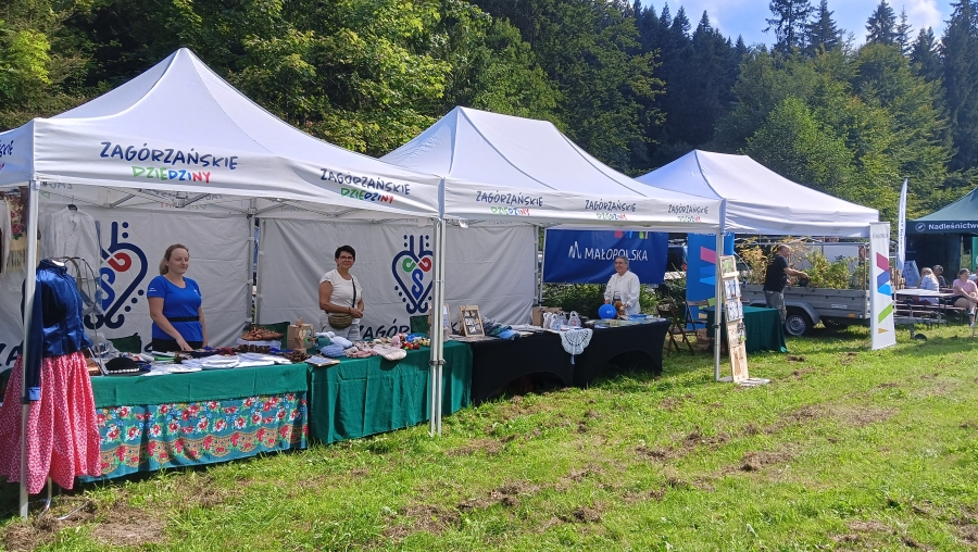 Końcówka sierpnia w tym roku to wyjątkowo zapełniony kalendarz, gdzie następuje kumulacja imprez, wydarzeń, spotkań… Nie da się też ukryć, że to czas zbiorów i gdzie by się nie ruszyć, zaplanowane są dożynki, pożegnania z latem czy okolicznościowe potańcówki. Często dzielimy się obowiązkami, gdy w kalendarzu jedno wydarzenie pokrywa się z drugim. Tak właśnie było np. 25 sierpnia, kiedy to cześć zagórzańskiej rodziny spotykała się w Kasinie Wielkiej na Mszy św. w regionalnej oprawie, podczas której oprawę zapewniło Stowarzyszenie „Zagórzanie” z Mszany Dolnej (Asysta Zagórzańska), a część wybrała Niedzielę w Gorczańskim Parku Narodowym na polanie Trusiówka w Lubomierzu - Rzekach. Na pikniku już od kilku lat pojawiają się nasze charakterystyczne, białe namioty, z reprezentacją rękodzielników, twórców i artystów. Tym razem „Sznurkowe Perełki” reprezentowała Barbara Węglarz, towarzyszyła jej Władysława Anna Jamróz ze swoją twórczością dla najmłodszych; można było również dostrzec przepiękne koronkowe prace Zofii Piętoń oraz wyroby z Kasinki Małej czyli „Drewniane Cuda”, nie zabrakło markowych miodów z pasieki od Józefa Bierowca, a całość dopełnia Paulina Hanula z firmy „Hafthan Konina” prezentując galanterię i konfekcję z góralskimi akcentami. Uważni obserwatorzy mogli dostrzec również nowe produkty promujące markę „Zagórzańskie Dziedziny” – czapki, torby i kubki od „nasego” Jaśka, który ma talent niebywały i raczej niekonwencjonalne podejście do promocji, bo na przekór wszystkiemu firmę nazwał „PanDa”. Nie zabrakło też wyjątkowych lodów od „Lody i Spółka”, które na upalne popołudnie sprawdziły się doskonale i, jak zawsze, tworzone przez nich połączenia smaków zaskakiwały fantazją, którą ewidentnie posiadają właściciele tej rzemieślniczej produkcji, Kinga i Maciek. A gdy tylko rozłożyliśmy nasze nowe monidła, to nie mogliśmy się napatrzeć na pamiątkowe zdjęcia, które w różnych konfiguracjach robili sobie piknikowi goście.