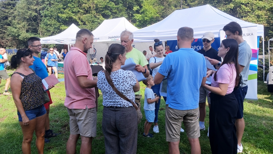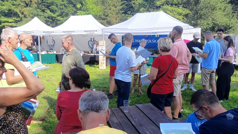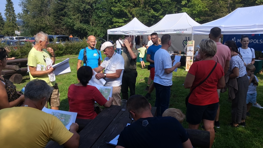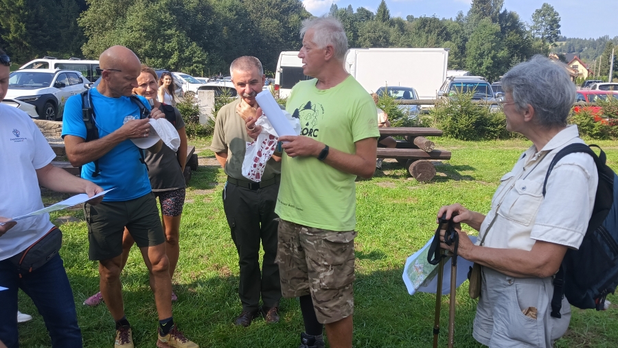 Tym razem wyjątkowo nasz skład poszerzony został o namiot turystyczny – „Zagórzańskiego Pierścienia”. Cieszymy się ogromnie, że nasze plany związane z kolejną propozycją spędzenia czasu w Zagórzańskich Dziedzinach finalizują się dzięki współpracy z Fundacją Wspierania Rozwoju Lokalnego „Inicjatywa”, Stowarzyszeniem Miłośników Kultury Góralskiej Pod Cyrlom i wsparciu ze strony Urzędu Marszałkowskiego Województwa Małopolskiego oraz anonimowych sympatyków zagórzańskiej marki lokalnej. Piknik z Gorczańskim Parkiem Narodowym to idealny czas by przedstawić założenia naszego pomysłu, co więcej zaczerpnąć wiedzy od profesjonalistów - nie tylko teoretycznej – gdyż każdy uczestnik spotkania na polanie otrzymał świeżo wydany przewodnik i mapę „Zagórzańskiego Pierścienia” – ale też praktycznej, bo prawie od razu „poszli w las”. Swoim osobistym doświadczeniem i wiedzą dzielili się Marek Panek i Wojciech Kusiak, jak się okazuje są to panowie o wielu talentach, a kto wie co jeszcze przed nami odkryją? Na razie uczestnicy chłonęli wiedzę tak, by w przyszłości nie mieć żadnych trudności na górskich szlakach. Czy była to zachęta by podjąć wyzwanie Srebrnego Zagórzańskiego Pierścienia? Dzisiaj już wiemy, że zdecydowanie tak!