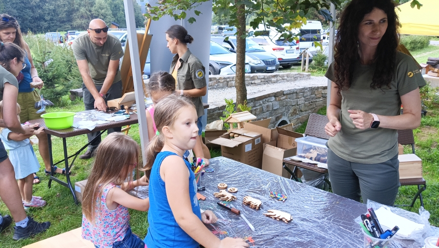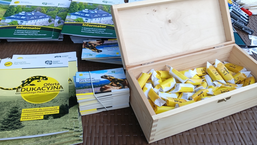 Z naszego spotkania na polanie Trusiówska wszyscy wracali do domu z przewodnikami oraz masą różnych pamiątek, które własnoręcznie tworzyli na poszczególnych stanowiskach. Zapaleni majsterkowicze sprawdzili się w składaniu budek dla ptaków przy stoisku limanowskiego Nadleśnictwa i różnych zagadkach przyrodniczych. Testy sprawnościowe można było wykonać na ściance wspinaczkowej GOPR, o bezpieczeństwo i wiedzę w tym zakresie rozpytywały panie policjantki na stoisku Komendy Wojewódzkiej z Krakowa i nagradzały za dobre odpowiedzi. Malowane pamiątki nawiązujące do gorczańskiej przyrody, gra terenowa i żółte jak plamy na salamandrze krówki oraz tatuaże to hit gospodarzy, czyli Gorczańskiego Parku Narodowego. Na stoisku Powiatu Limanowskiego można było otrzymać wszystkie wydawnictwa obejmujące cały powiat i spróbować szczęścia w kole fortuny losując dla siebie drobne nagrody. No i najważniejsze! Nikt nie wracał głodny do domu, bo można było się posilić czy to pieczoną kiełbaską czy ogniskowym ziemniakiem – a na deser, poza lodami oczywiście, sernik z malinami na zimno. Jeśli tak jak my, spędziliście czas w Gorczańskim Parku Narodowym, to mamy nadzieję, że macie ochotę na więcej, bo to jeszcze nie koniec…