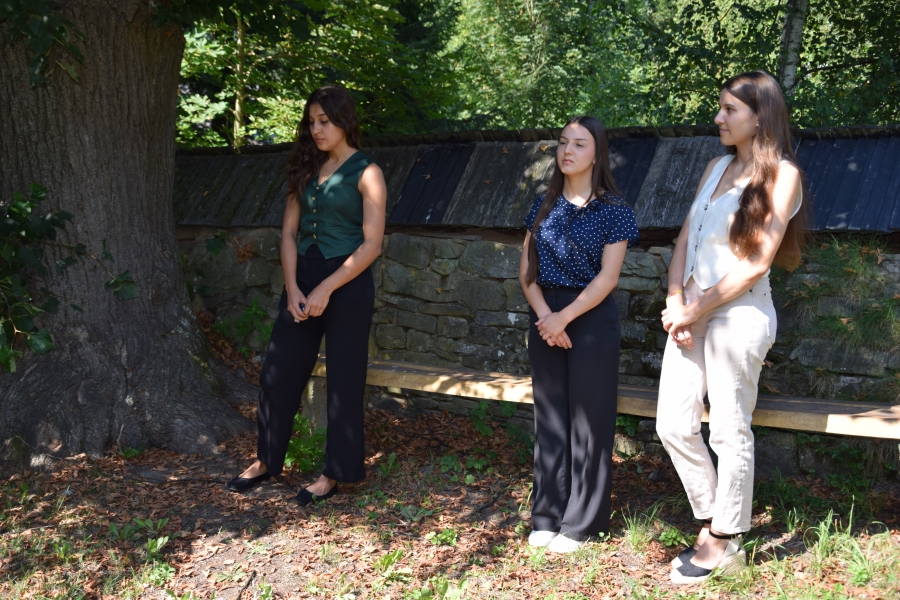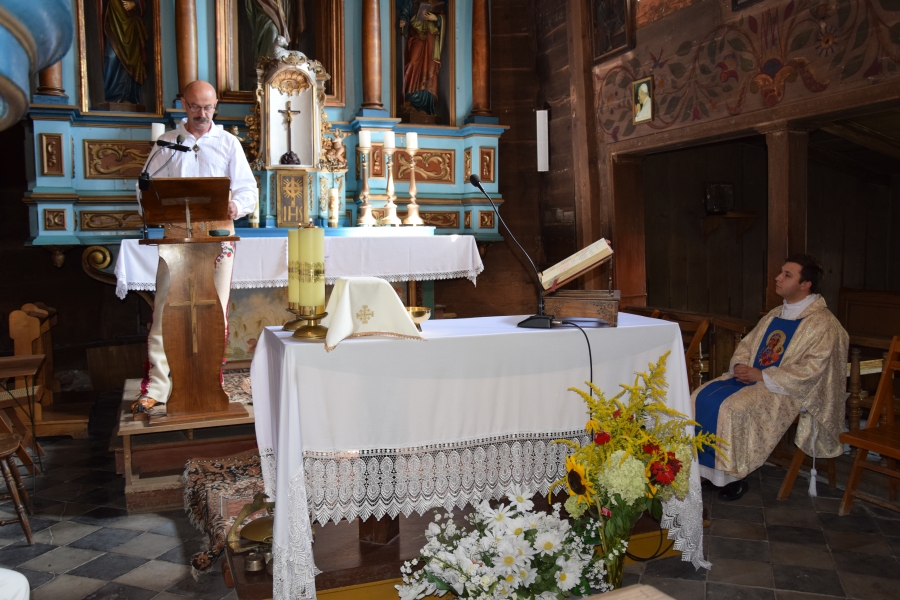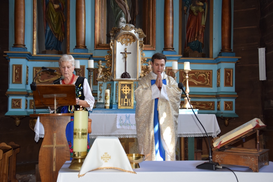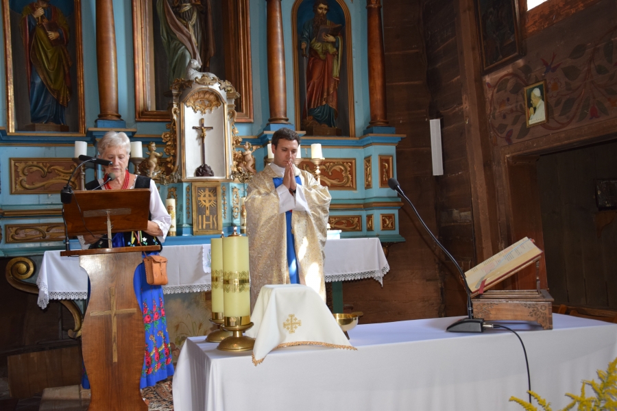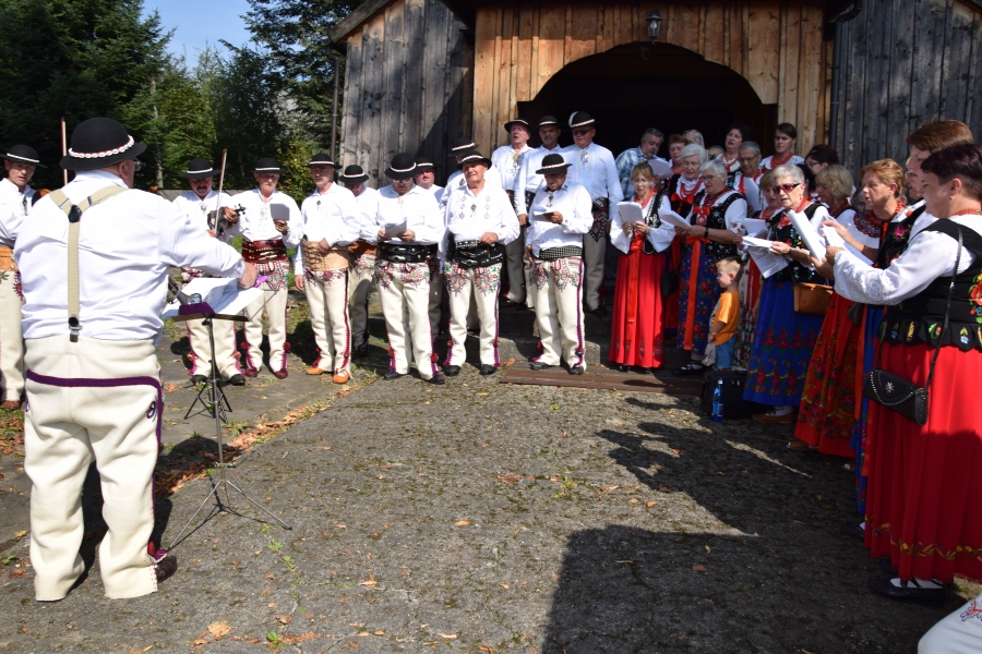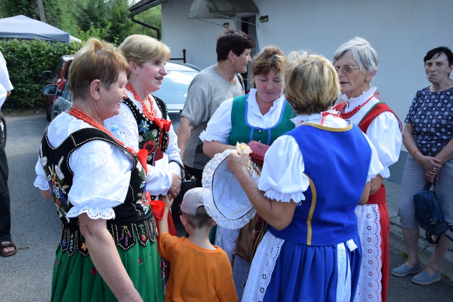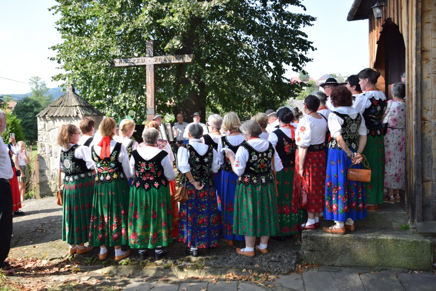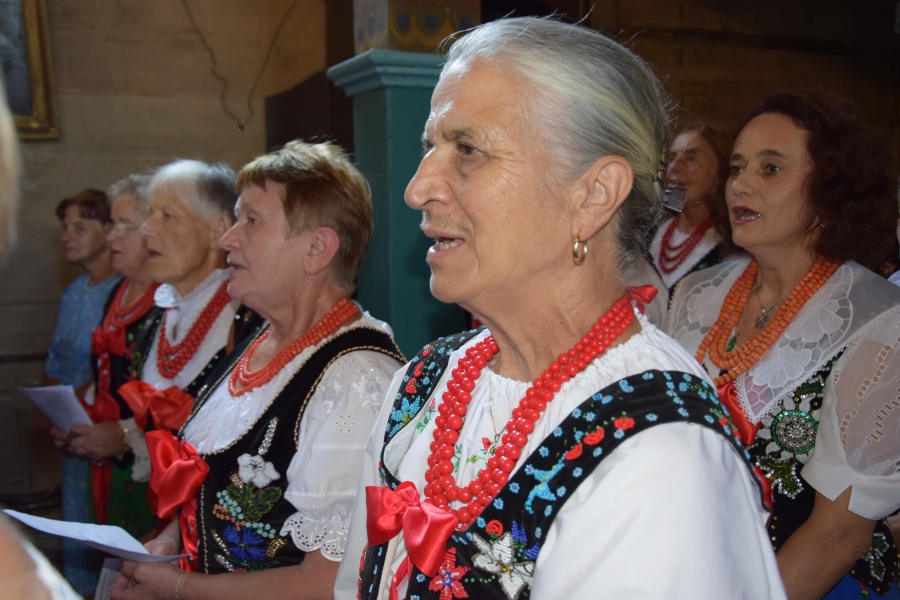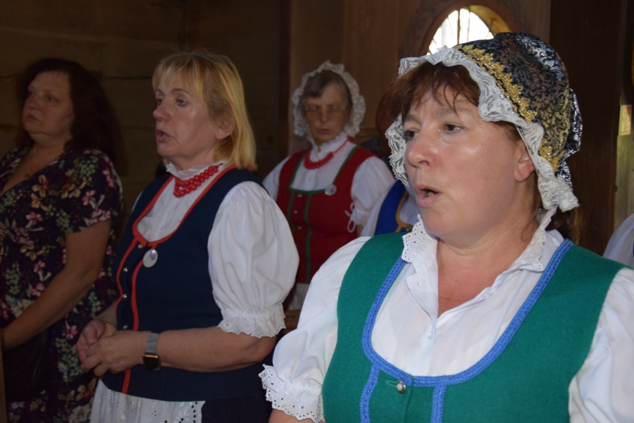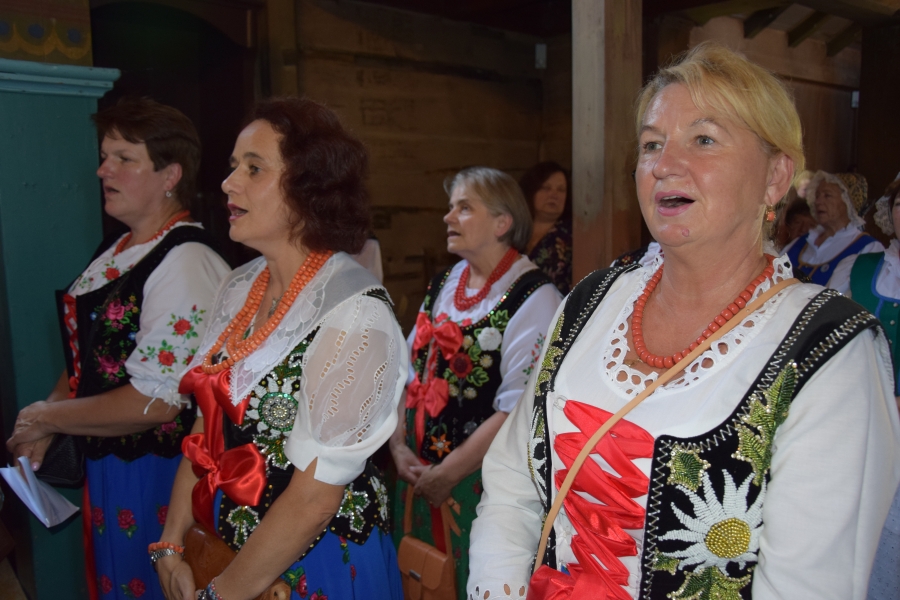 Dawna Asysta Zagórzańska, przemianowana ostatnio i usankcjonowana prawnie jako stowarzyszenie, dzieliła tę Mszę z innymi gośćmi. Z Dolnego Śląska, z okolic Wrocławia, przyjechała bowiem na wizytę studyjną do Zagórzańskich Dziedzin grupa rezolutnych pań zrzeszonych w KGW w Kuraszkowie, wspierana przez kilku mężczyzn. Specjalnie wybrały taki termin odwiedzin Zagórzan, aby móc uczestniczyć w comiesięcznej Mszy św. z uroczystą oprawą. Zadały sobie sporo trudu i przywiozły swoje stroje regionalne, aby zaprezentować się w nich uczestnikom wydarzenia. Co więcej, po raz pierwszy w historii tych Mszy zdarzyło się, aby goście czynnie włączyli się w oprawę Eucharystii. A tym razem wyzwanie przyjęła Beata, przewodnicząca KGW, do której należały śpiewy międzylekcyjne i „Alleluja”.