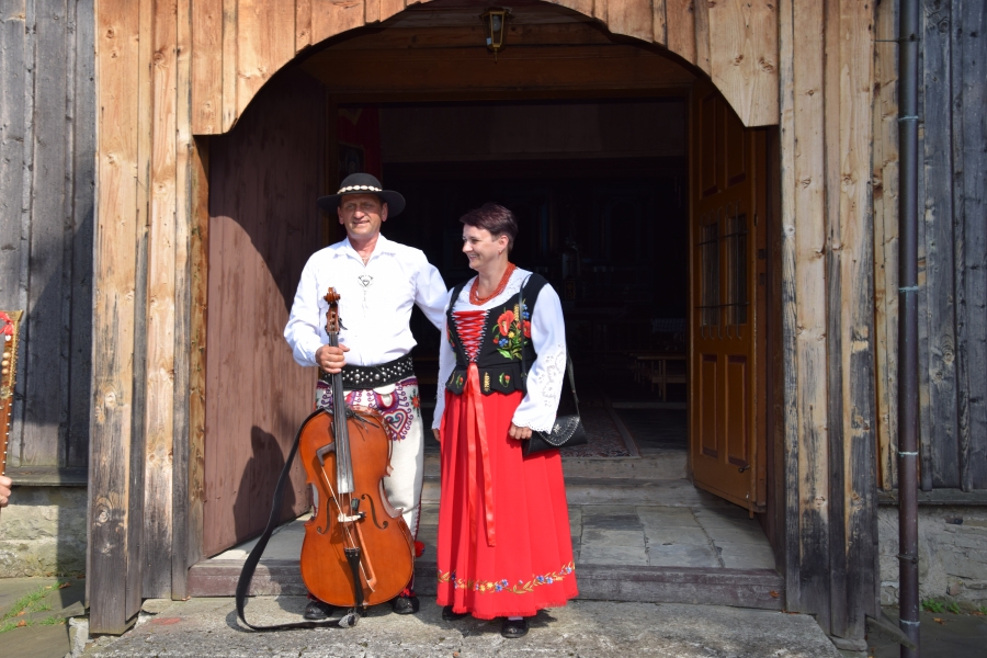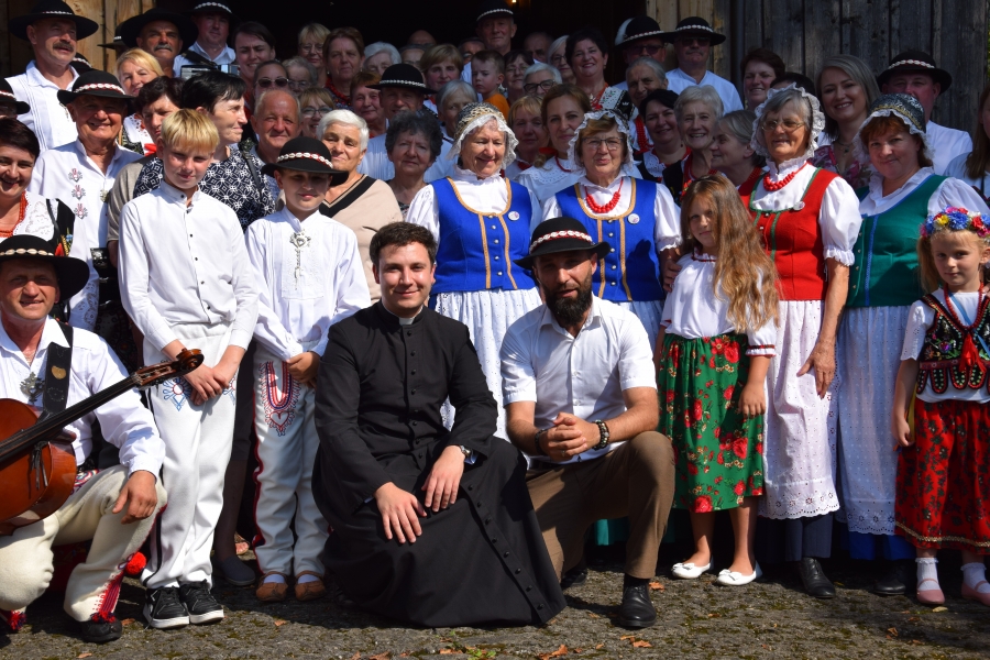 Zafascynowane prezencją i koncertem mszańskiej grupy, próbowały dobić targu i… kupić grającą część Asysty. „Oj przydałaby się nam taka orkiestra, przydała” szeptały z zazdrością, której nie miały czasu pielęgnować, wszak porwane zostały do sesji fotograficznej – a to z mieszkańcami Kasiny Wielkiej, a to z Mirosławem Cichorzem, Wójtem Gminy Mszana Dolna i koordynatorem zagórzańskiej marki lokalnej, a to z członkami Stowarzyszenia Zagórzanie i licznymi uczestnikami Eucharystii, do których dołączył kasiński wikariusz, ks. Szymon Wykupił. I choć niektórzy z nas mieli go okazję dopiero poznać, okazało się, że on skojarzył wiele z twarzy członków Asysty, z którymi się spotkał podczas swojej posługi w Parafii p.w. Miłosierdzia Bożego w Mszanie Dolnej.