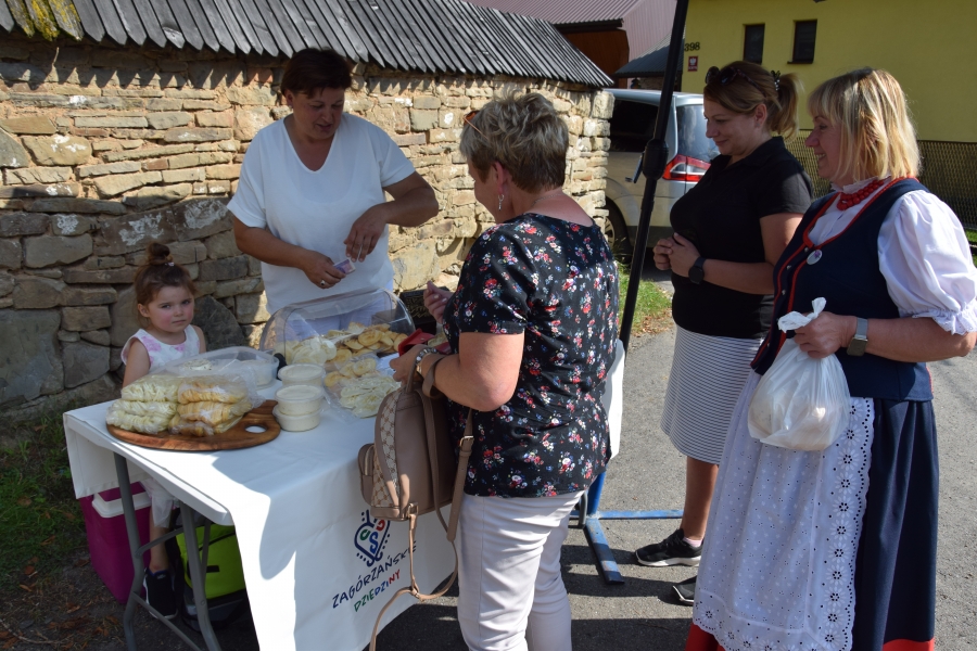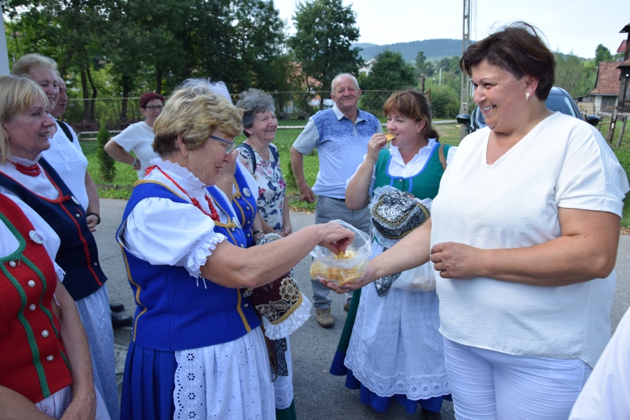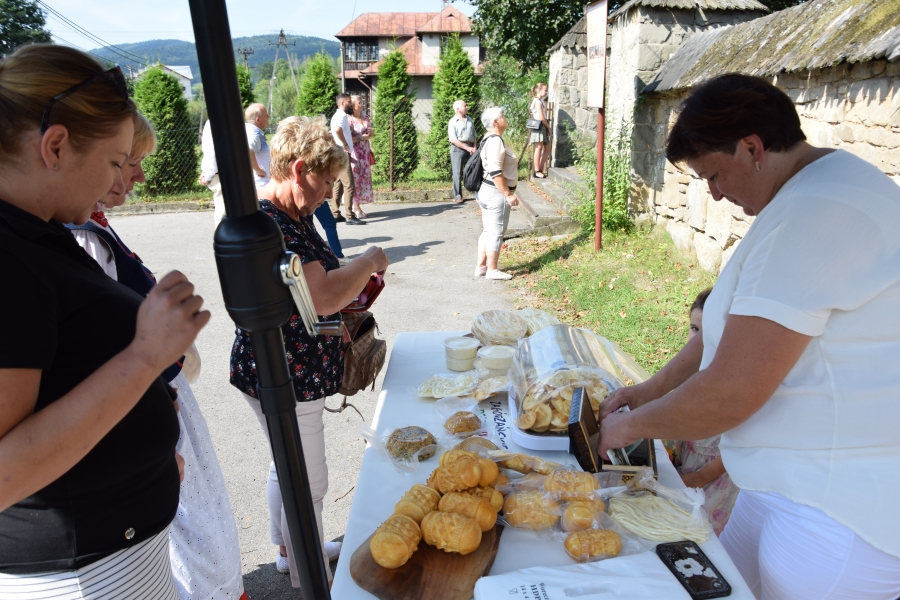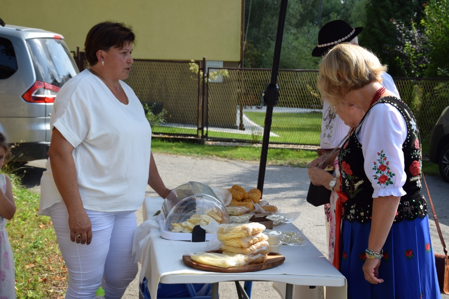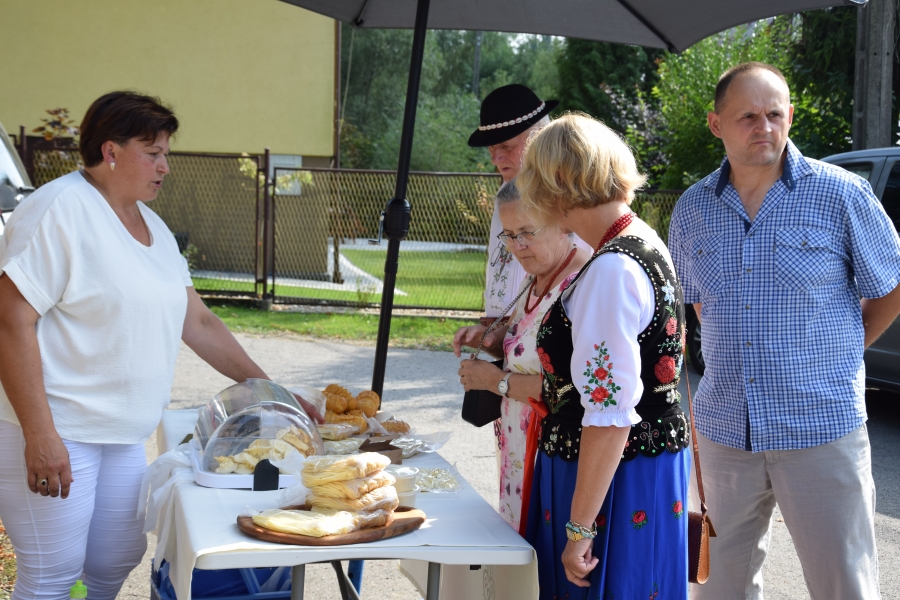 Ostatnim punktem programu, dość niespodziewanym tego dnia, był… mały kiermasz produktu lokalnego. Zapowiadaliśmy wszystkim, że go nie będzie, jednak, na specjalne życzenie kuraszkowian do Kasiny Wielkiej przyjechała Monika Kubik vel Zagórzańska Tradycja – Sery Podpuszczkowe. Bez jej pysznych Gorczańskich serów nasi goście nie mogli wrócić do swoich domów…