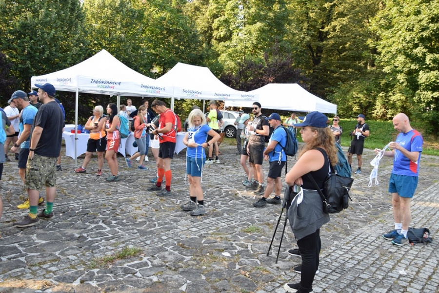 A zawodnicy? Uzbrojeni w pakiety startowe, które wykonał Jasiek Filipiak (PanDa – haftowanie, znakowanie i więcej), mapę biegu i przewodnik dot. Zagórzańskiego Pierścienia oraz drobny poczęstunek energetyczny, mieli do pokonania trasę o długości 28 kilometrów, z różnicą podejść i zejść 1450m. Na każdym szczycie pretendujący do tytułu zdobywcy pierścienia musieli zaliczyć punkt kontrolny i założyć opaskę, kwalifikującą potem do weryfikacji końcowej. Zebranym na mecie nie pozostawało nic więcej, jak oczekiwanie i przyjmowanie relacji od ustawionych w punktach kontrolnych strzelców.