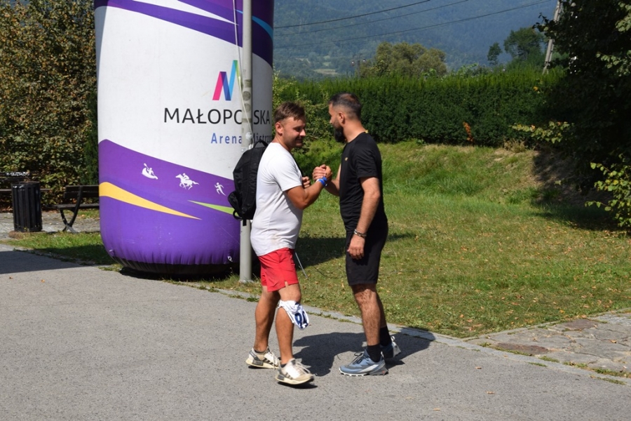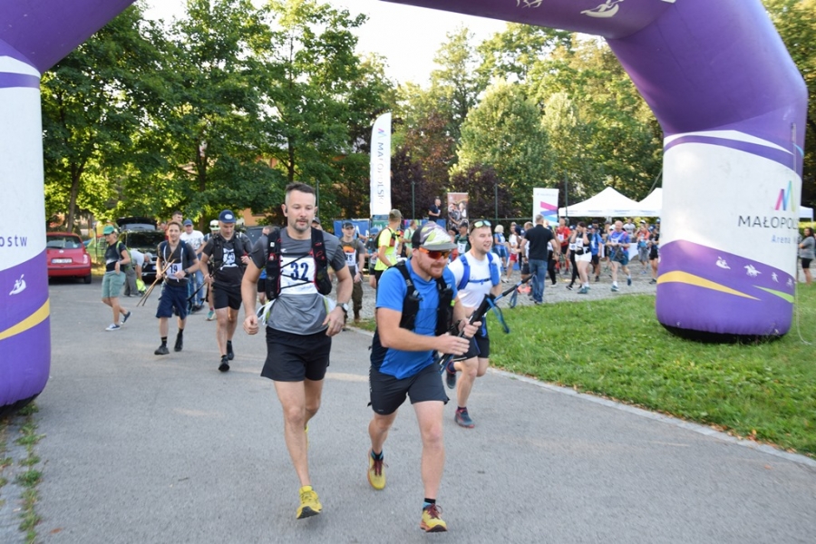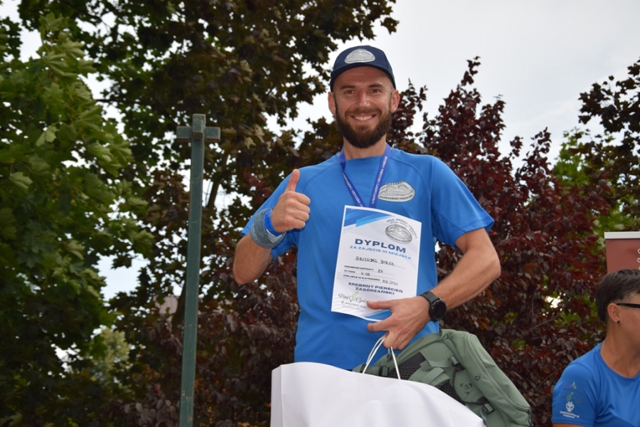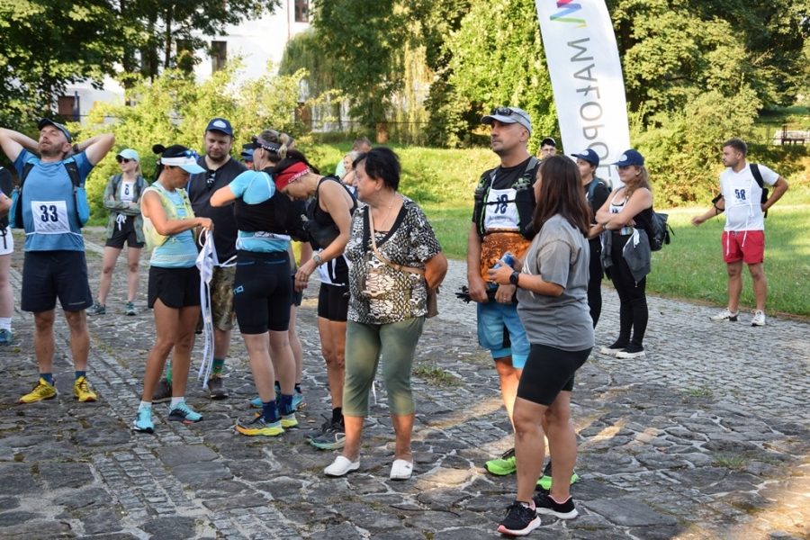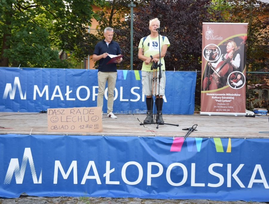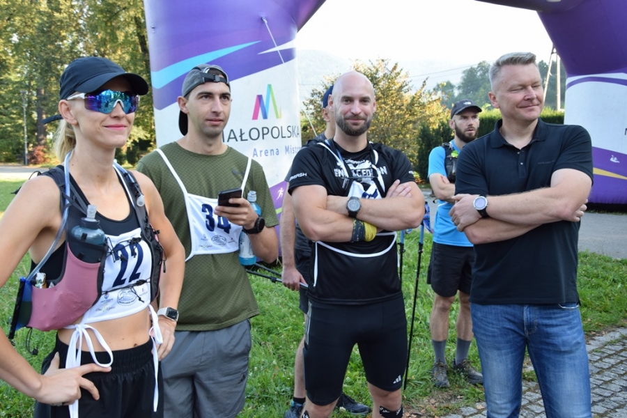 A kto odważył się sięgnąć po Srebrny Pierścień Zagórzański i zdobyć trzy szczyty górskie: Ćwilin, Śnieżnicę i Lubogoszcz? Śmiałków nie zabrakło! I choć zgłosiło się więcej osób, ostatecznie w sobotni poranek, 30 sierpnia, na starcie pojawiło się 51 uczestników. Dzielni zawodnicy nie zważali na prognozę pogody, która zapowiadała upał; dostrzec można było ich mobilizację i ogromne wsparcie ze strony znajomych, przyjaciół i sympatyków. Pojawiły się też osoby, które specjalnie przyjechały na bieg z różnych destynacji, np. z Czech! Przykład płynie z góry – tym razem postanowili go dać i zmierzyć się z wyzwaniem zagórzańscy samorządowcy. Na starcie pojawili się przygotowani na sportowe zmagania: Mirosław Cichorz, Wójt Gminy Mszana Dolna i Kacper Bierowiec, Radny Rady Miejskiej w Mszanie Dolnej. Krótkie powitanie, słowa otuchy ze strony włodarzy bliźniaczych gmin i… komendę do startu wydała gospodyni miejsca, Burmistrz Miasta, Agnieszka Orzeł. Nad bezpieczeństwem zawodników czuwali na całej trasie ratownicy z Podhalańskiej Grupy GOPR oraz ratownicy medyczni z limanowskiego Pogotowia Ratunkowego. W miejscach newralgicznych (przy przekroczeniu dróg publicznych) nasze działania wsparli strażacy - ochotnicy z Mszany Dolnej i Kasiny Wielkiej. W punktach kontrolnych dyżurowali mszańscy „Strzelcy” z Zespołu Szkół Techniczno – Informatycznych (dwóch Jakubów, Mikołaj, Wiktor oraz Kamil wraz z opiekunem, Przemysławem) a także Emilia, Grzegorz i Filip, nasi wolontariusze. Ozdobą trasy były niewątpliwie wodzianki: Agata, Sylwia, Monia i Rysia. Nie wiadomo, czy to ze względu na ich urok, czy na wodę, którą szczodrze rozdawały spragnionym zawodnikom, każdy z biegaczy witał ich szczerym, serdecznym uśmiechem. Cieszy nas również spontaniczne zaangażowanie mieszkańców regionu w to wydarzenie, którzy dokarmiali pokonujących w zawodach trasę i serwowali naszym biegaczom orzeźwiającą lemoniadę! Wielkim wsparciem dla organizatorów wydarzenia okazał się mł. chorąży JWK Andrzej Bukowiec, anioł, który spadł nam z przysłowiowego nieba. Nie dość, że zrezygnował ze startu w zawodach aby zaangażować się w ich przebieg, to jeszcze pomógł w promocji wydarzenia, ufundował nagrody, wsparł nas organizacyjnie i zamykał trasę biegu sprawdzając, czy wszystko zostało po nas w porządku, a któryś z zawodników czy wolontariuszy nie potrzebuje opieki. Cały czas był z nami na łączach weryfikując również pracę punktów kontrolnych. Wielki szacun za taką postawę!