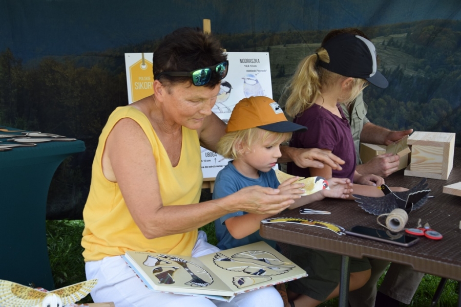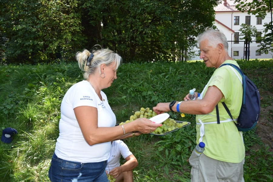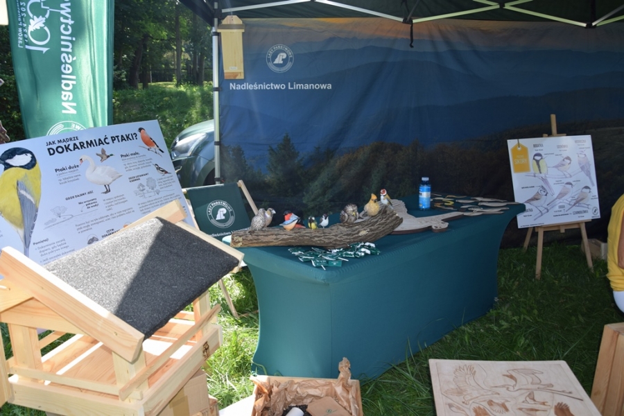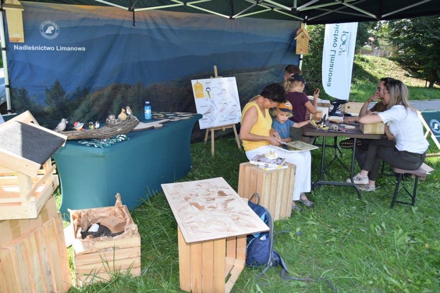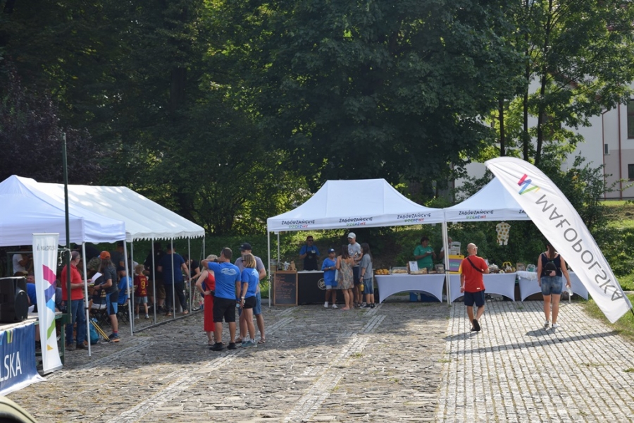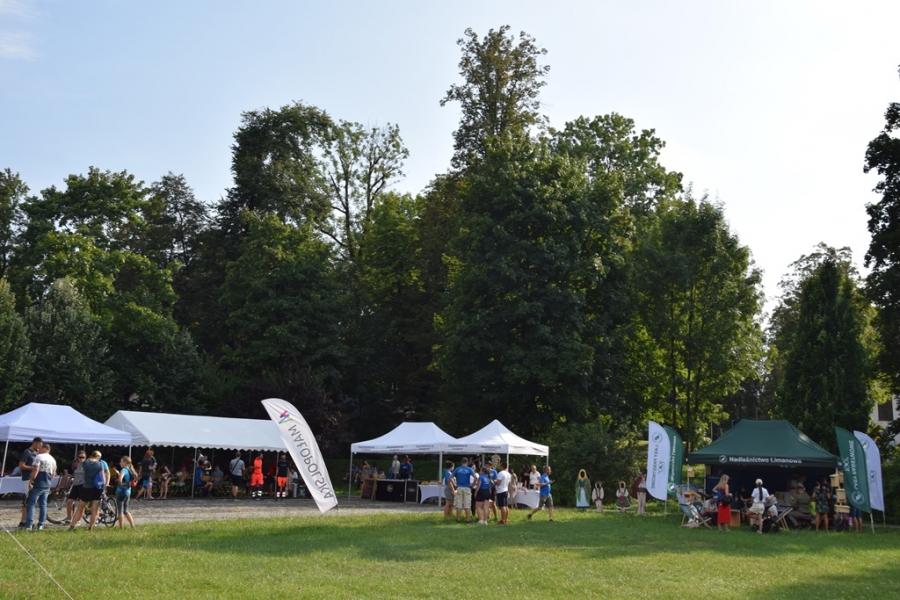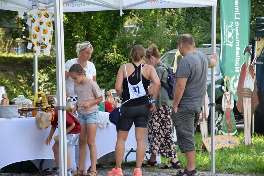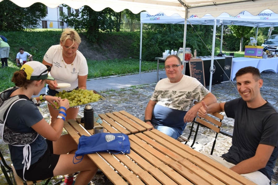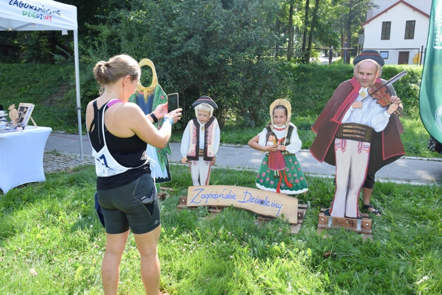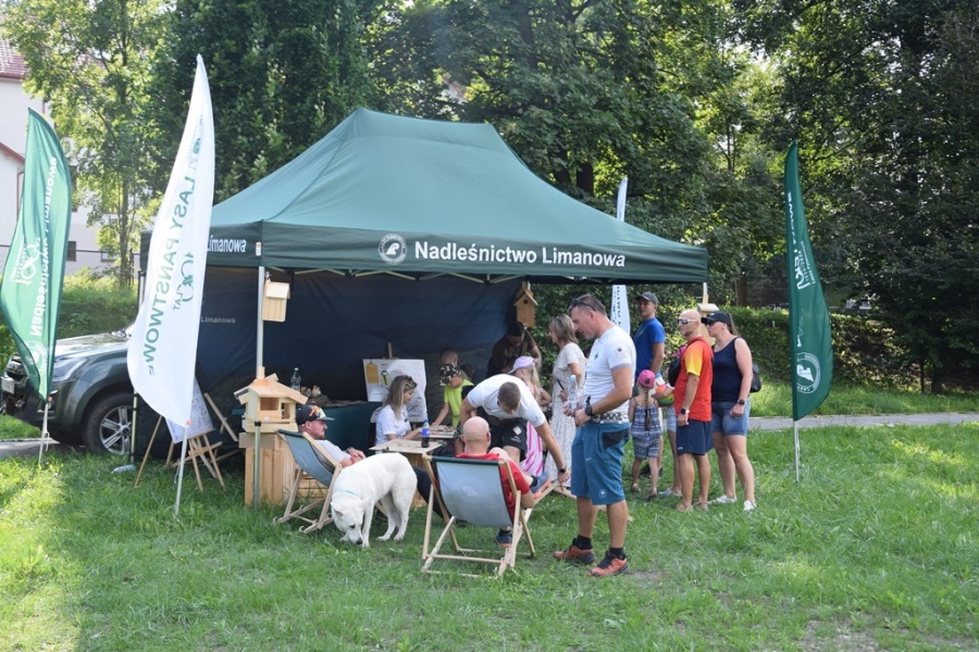 Może trudno w to uwierzyć, ale pierwszy zawodnik na mecie biegu pojawił się już po 2 godzinach i 50 minutach! Na pewno wzbudził ogromne niedowierzanie nie tylko u konferansjera imprezy, Grzegorza Lenartowicza. Wszyscy byliśmy nastawieni na „średnią wypadkową”, czyli około 4 godziny po starcie. Zgodnie z regulaminem akcja miała zakończyć się po 8 godzinach (limit czasowy), a tu taki harpagan górskich biegów nam się trafił, i to jeszcze lokalny! Szymon Dobrowolski – wielkie brawa! Podobno – jak donieśli najbliżsi - sprawdził sobie trasę wcześniej i dobrze wiedział, co go czeka po drodze, gdzie może „nadgonić”. W jego możliwości nie zwątpili rodzice, którzy kilka minut przed finiszem syna pojawili się na mecie aby oklaskiwać zwycięzcę! Zresztą nie tylko on pokazał się z najlepszej strony – w biegu uczestniczyli „starzy wyjadacze”. Mamy nadzieję, że dobrze się bawili na naszych górkach, a na mecie zapewniliśmy im jeszcze dodatkowe atrakcje. Regionalny poczęstunek solidnie zregenerował wymęczone ciała. Gaździny z KGW Olszówka uważnie pilnowały zawartości na talerzach i dokładały, dokładały ile się da… Dodatkowo do spokojnej już tym razem aktywności zachęcały namioty Zagórzańskich Dziedzin, w których swoje produkty wystawili użytkownicy Znaku Promocyjnego Zagórzańskie Dziedziny. Można było schłodzić się lodami rzemieślniczymi od Lodów i Spółki, poczęstować proziakami z pysznym miodem z Pasieki u Piotra Woźniaka z Koniny i serem gorczańskim od Moniki Kubik. Amatorzy produktów lokalnych mieli też do dyspozycji Sznurkowe Perełki, Drewniane cuda z Kasinki i koronki od Zofii Piętoń. Dyżurująca na stoisku Monika prowadziła też warsztaty, podczas których wykonywano świece z wosku pszczelego i udzielała informacji o naszej dziedzinnej ofercie. Dzięki temu, że Honorowy Patronat nad wydarzeniem objął Piotr Kempf, Dyrektor Lasów Państwowych z Krakowa, zawitali również do nas leśnicy z Nadleśnictwa Limanowa z namiotem edukacyjnym. Tutaj można było samodzielnie zbić budkę dla ptaków lub wziąć udział w konkursie licząc na drobną eko-nagrodę.