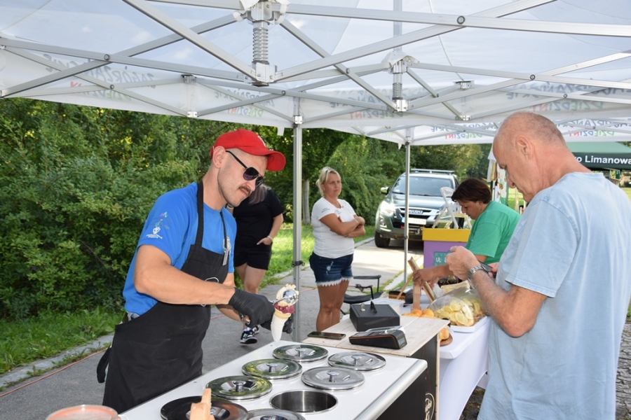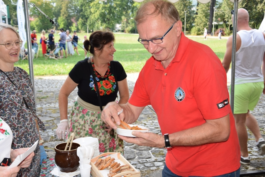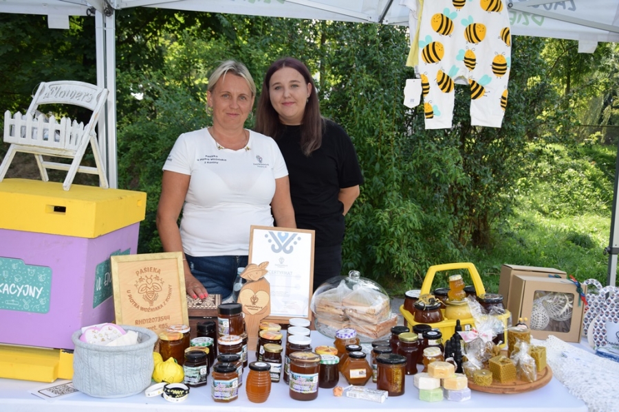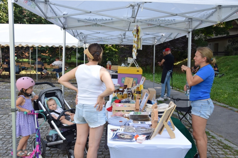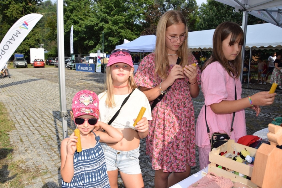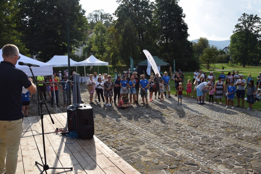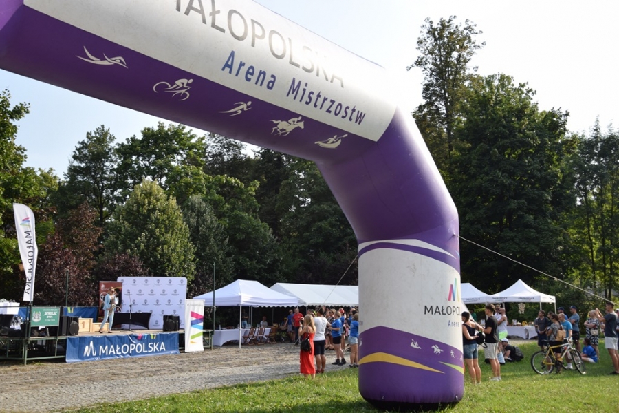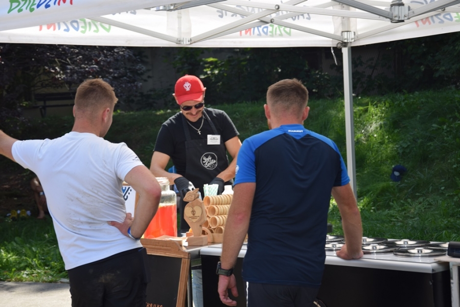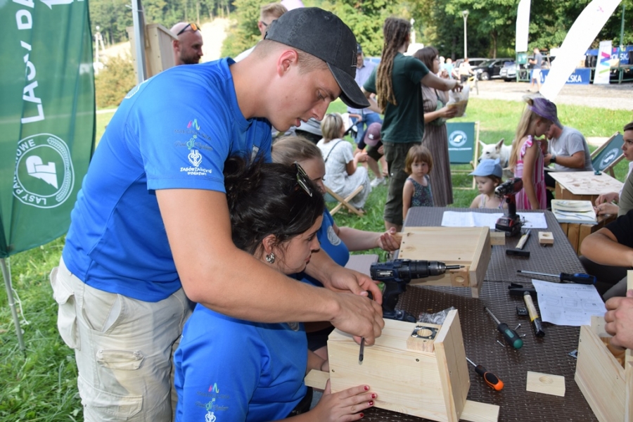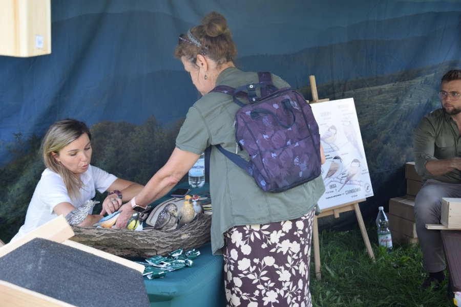 Może trudno w to uwierzyć, ale pierwszy zawodnik na mecie biegu pojawił się już po 2 godzinach i 50 minutach! Na pewno wzbudził ogromne niedowierzanie nie tylko u konferansjera imprezy, Grzegorza Lenartowicza. Wszyscy byliśmy nastawieni na „średnią wypadkową”, czyli około 4 godziny po starcie. Zgodnie z regulaminem akcja miała zakończyć się po 8 godzinach (limit czasowy), a tu taki harpagan górskich biegów nam się trafił, i to jeszcze lokalny! Szymon Dobrowolski – wielkie brawa! Podobno – jak donieśli najbliżsi - sprawdził sobie trasę wcześniej i dobrze wiedział, co go czeka po drodze, gdzie może „nadgonić”. W jego możliwości nie zwątpili rodzice, którzy kilka minut przed finiszem syna pojawili się na mecie aby oklaskiwać zwycięzcę! Zresztą nie tylko on pokazał się z najlepszej strony – w biegu uczestniczyli „starzy wyjadacze”. Mamy nadzieję, że dobrze się bawili na naszych górkach, a na mecie zapewniliśmy im jeszcze dodatkowe atrakcje. Regionalny poczęstunek solidnie zregenerował wymęczone ciała. Gaździny z KGW Olszówka uważnie pilnowały zawartości na talerzach i dokładały, dokładały ile się da… Dodatkowo do spokojnej już tym razem aktywności zachęcały namioty Zagórzańskich Dziedzin, w których swoje produkty wystawili użytkownicy Znaku Promocyjnego Zagórzańskie Dziedziny. Można było schłodzić się lodami rzemieślniczymi od Lodów i Spółki, poczęstować proziakami z pysznym miodem z Pasieki u Piotra Woźniaka z Koniny i serem gorczańskim od Moniki Kubik. Amatorzy produktów lokalnych mieli też do dyspozycji Sznurkowe Perełki, Drewniane cuda z Kasinki i koronki od Zofii Piętoń. Dyżurująca na stoisku Monika prowadziła też warsztaty, podczas których wykonywano świece z wosku pszczelego i udzielała informacji o naszej dziedzinnej ofercie. Dzięki temu, że Honorowy Patronat nad wydarzeniem objął Piotr Kempf, Dyrektor Lasów Państwowych z Krakowa, zawitali również do nas leśnicy z Nadleśnictwa Limanowa z namiotem edukacyjnym. Tutaj można było samodzielnie zbić budkę dla ptaków lub wziąć udział w konkursie licząc na drobną eko-nagrodę.