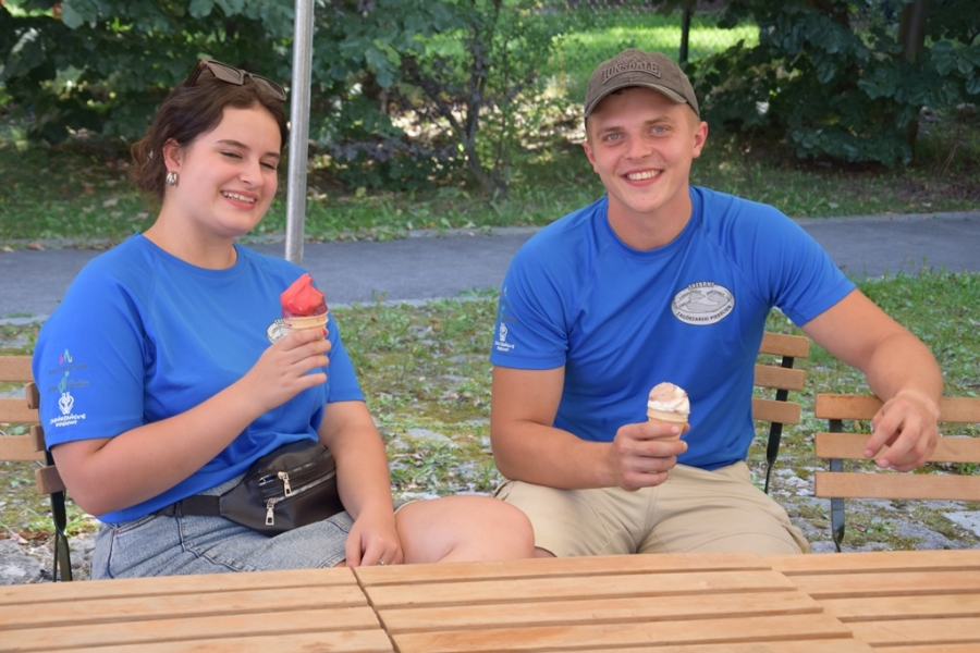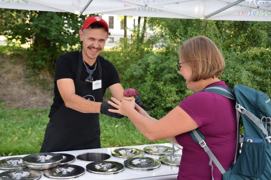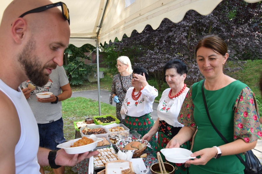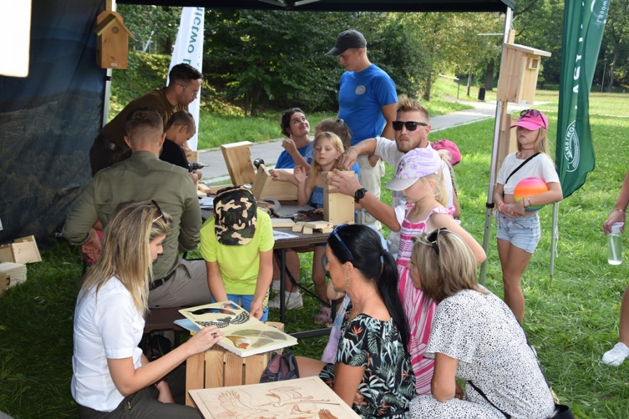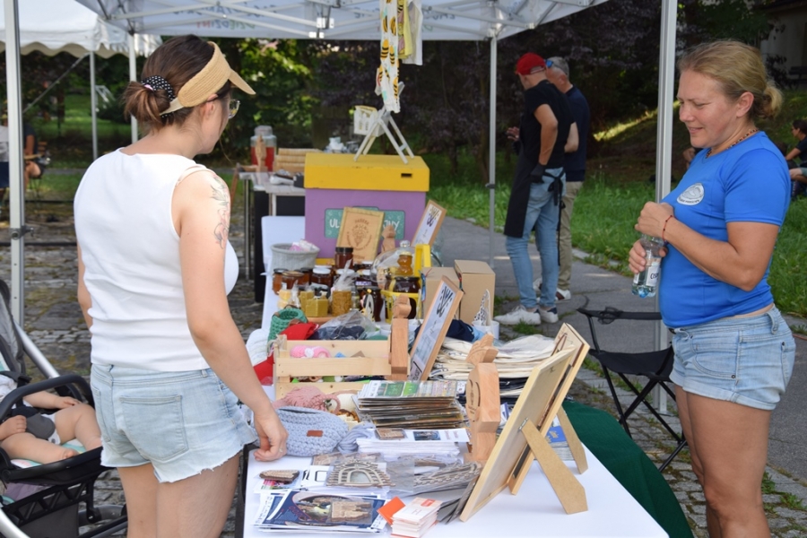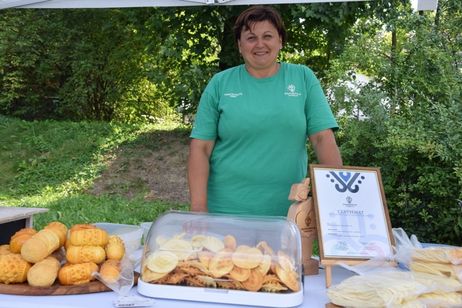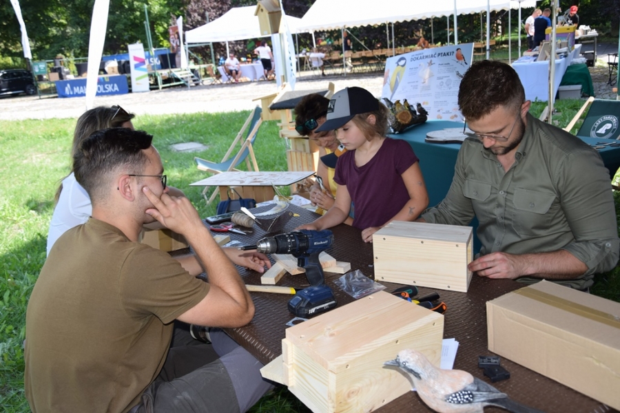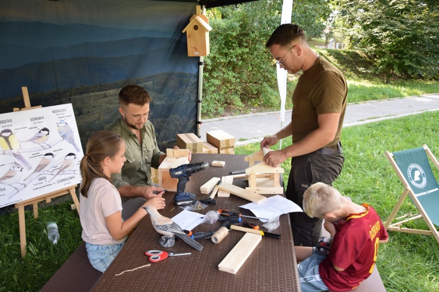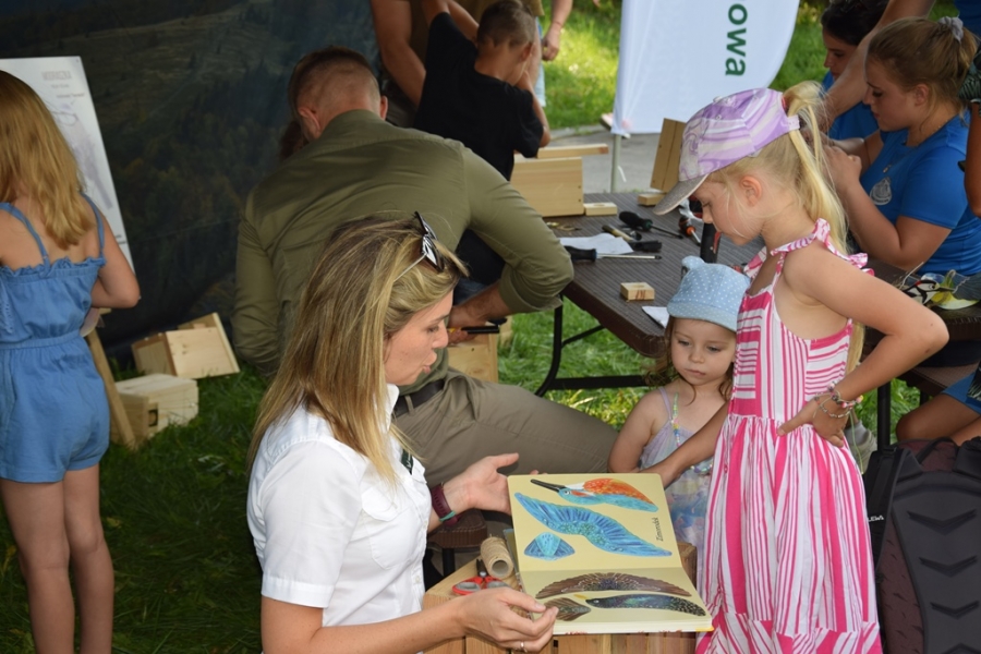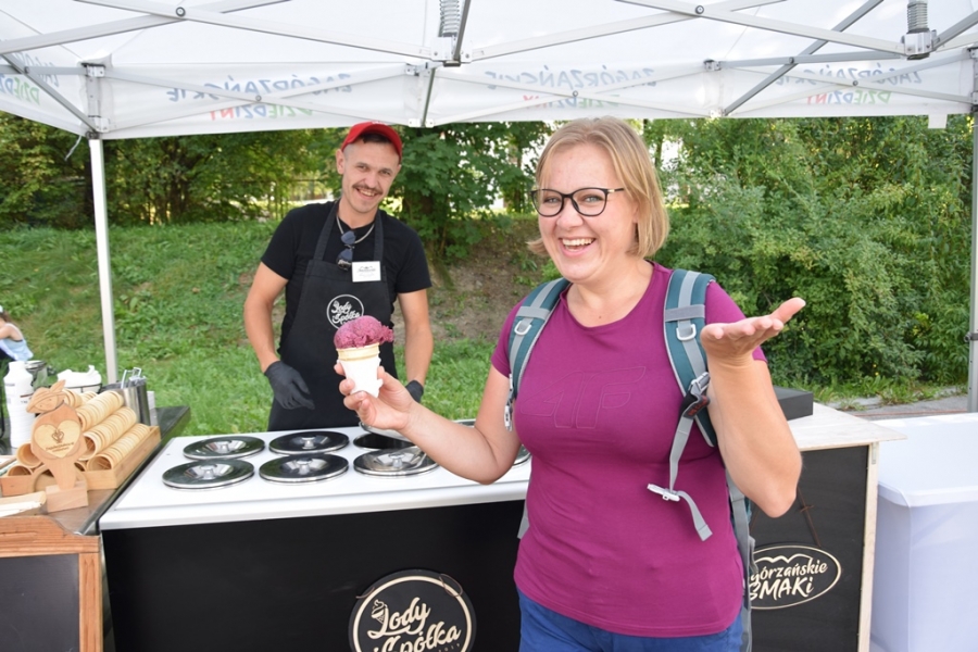 Może trudno w to uwierzyć, ale pierwszy zawodnik na mecie biegu pojawił się już po 2 godzinach i 50 minutach! Na pewno wzbudził ogromne niedowierzanie nie tylko u konferansjera imprezy, Grzegorza Lenartowicza. Wszyscy byliśmy nastawieni na „średnią wypadkową”, czyli około 4 godziny po starcie. Zgodnie z regulaminem akcja miała zakończyć się po 8 godzinach (limit czasowy), a tu taki harpagan górskich biegów nam się trafił, i to jeszcze lokalny! Szymon Dobrowolski – wielkie brawa! Podobno – jak donieśli najbliżsi - sprawdził sobie trasę wcześniej i dobrze wiedział, co go czeka po drodze, gdzie może „nadgonić”. W jego możliwości nie zwątpili rodzice, którzy kilka minut przed finiszem syna pojawili się na mecie aby oklaskiwać zwycięzcę! Zresztą nie tylko on pokazał się z najlepszej strony – w biegu uczestniczyli „starzy wyjadacze”. Mamy nadzieję, że dobrze się bawili na naszych górkach, a na mecie zapewniliśmy im jeszcze dodatkowe atrakcje. Regionalny poczęstunek solidnie zregenerował wymęczone ciała. Gaździny z KGW Olszówka uważnie pilnowały zawartości na talerzach i dokładały, dokładały ile się da… Dodatkowo do spokojnej już tym razem aktywności zachęcały namioty Zagórzańskich Dziedzin, w których swoje produkty wystawili użytkownicy Znaku Promocyjnego Zagórzańskie Dziedziny. Można było schłodzić się lodami rzemieślniczymi od Lodów i Spółki, poczęstować proziakami z pysznym miodem z Pasieki u Piotra Woźniaka z Koniny i serem gorczańskim od Moniki Kubik. Amatorzy produktów lokalnych mieli też do dyspozycji Sznurkowe Perełki, Drewniane cuda z Kasinki i koronki od Zofii Piętoń. Dyżurująca na stoisku Monika prowadziła też warsztaty, podczas których wykonywano świece z wosku pszczelego i udzielała informacji o naszej dziedzinnej ofercie. Dzięki temu, że Honorowy Patronat nad wydarzeniem objął Piotr Kempf, Dyrektor Lasów Państwowych z Krakowa, zawitali również do nas leśnicy z Nadleśnictwa Limanowa z namiotem edukacyjnym. Tutaj można było samodzielnie zbić budkę dla ptaków lub wziąć udział w konkursie licząc na drobną eko-nagrodę.