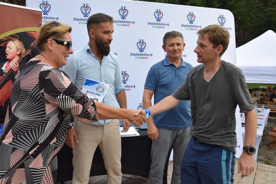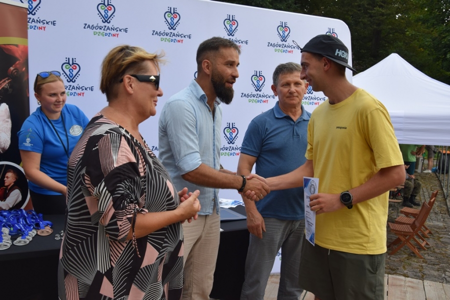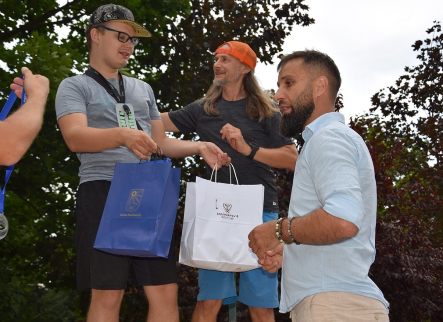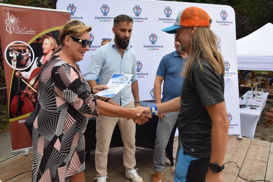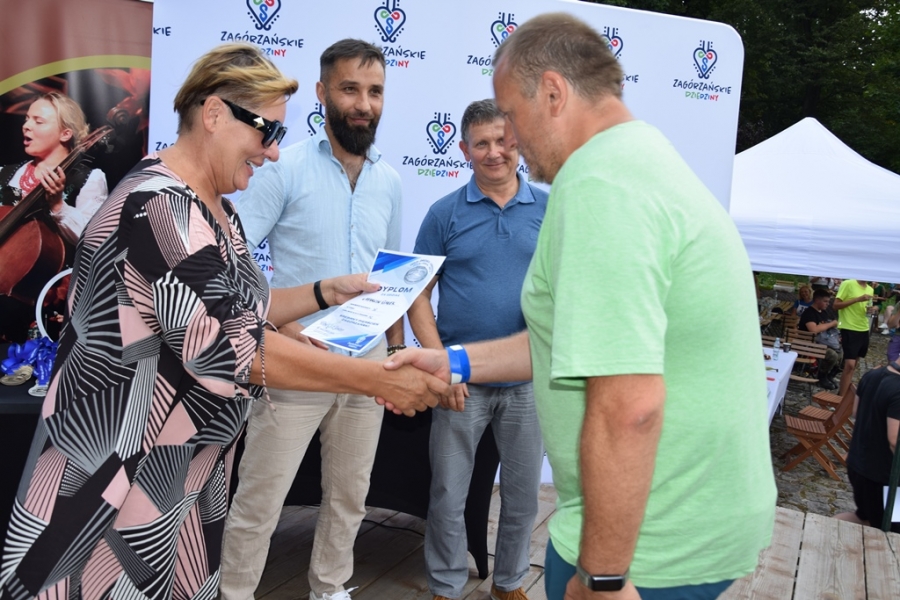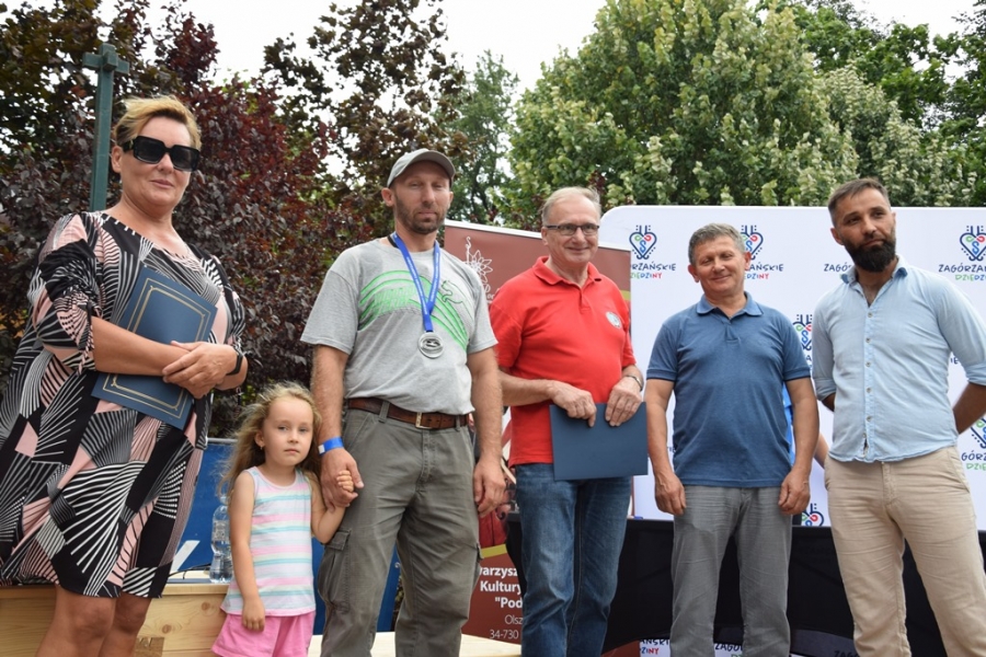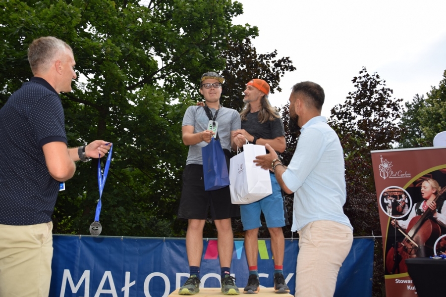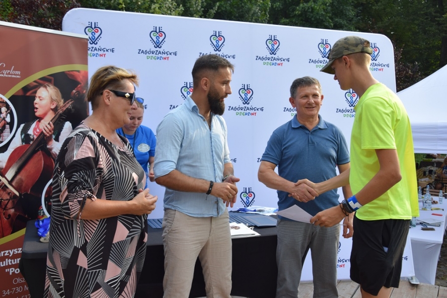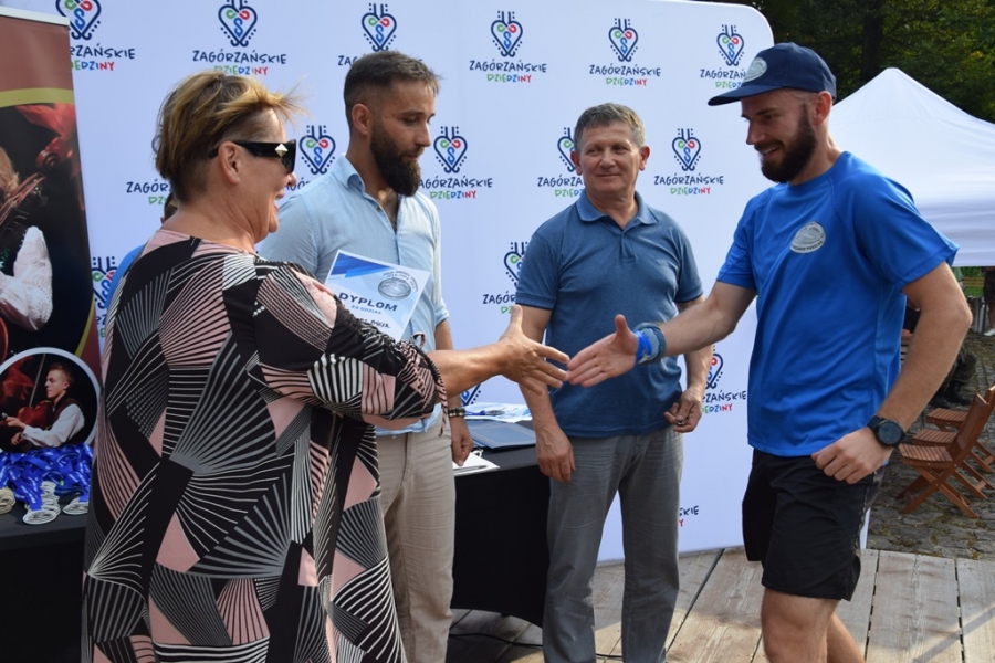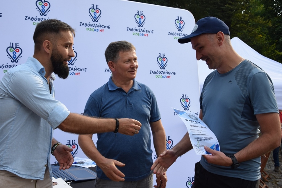 Gratulacje i nagrody wręczali: Burmistrz Miasta Mszana Dolna, Wójt Gminy Mszana Dolna i Wójt Gminy Niedźwiedź (ten ostatni na wydarzenie przywiózł dodatkowe nagrody), a te z kategorii open również Wojciech Winkel. Zanim jednak przystąpiono do dekoracji medalowej postanowiono nagrodzić biletami do popularnej w Regionie Zagórzańskim atrakcji – Muzeum motorowerów Moped Retro, które ufundował Partner Zagórzańskich Dziedzin – Kasina Ski&Bike Park, najmłodszego i najstarszego zawodnika, biegacza, który na zawody przyjechał z najdalszej miejscowości oraz małżeństwa, które wspólnie zdecydowały się na start.