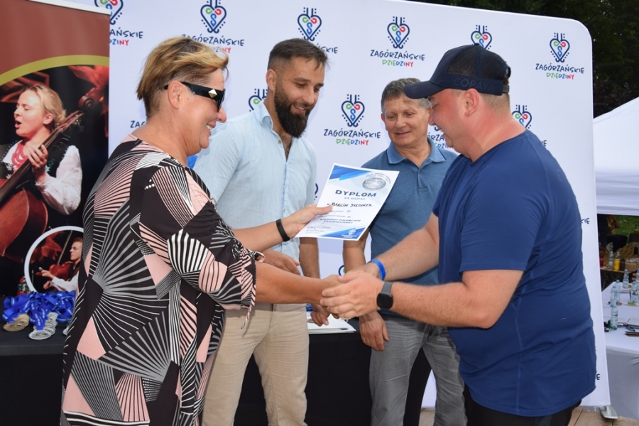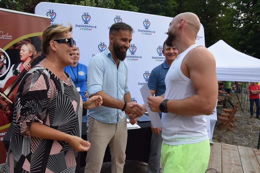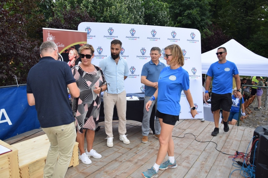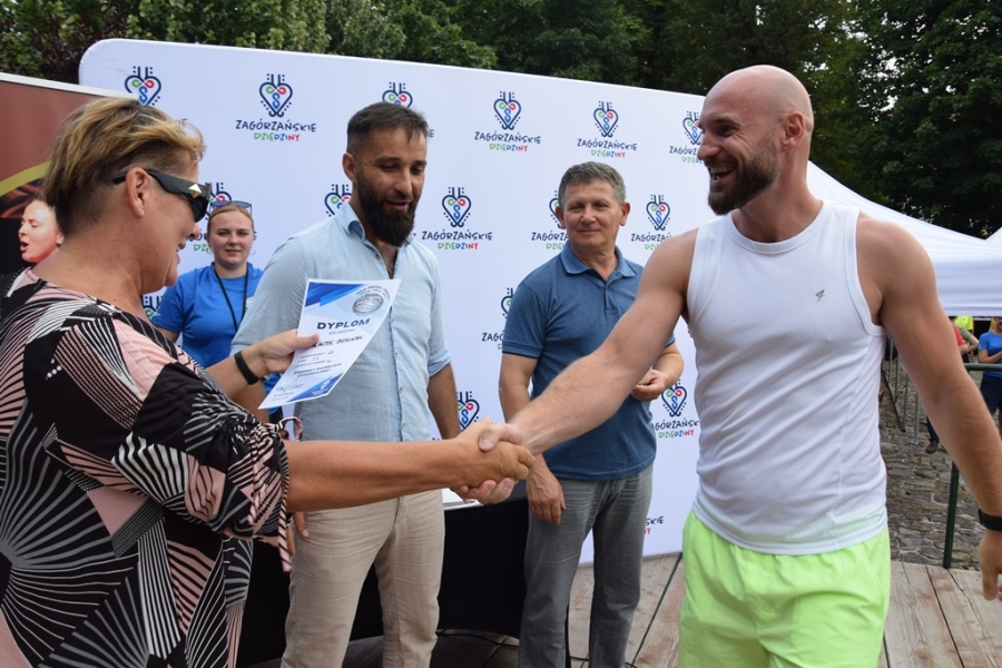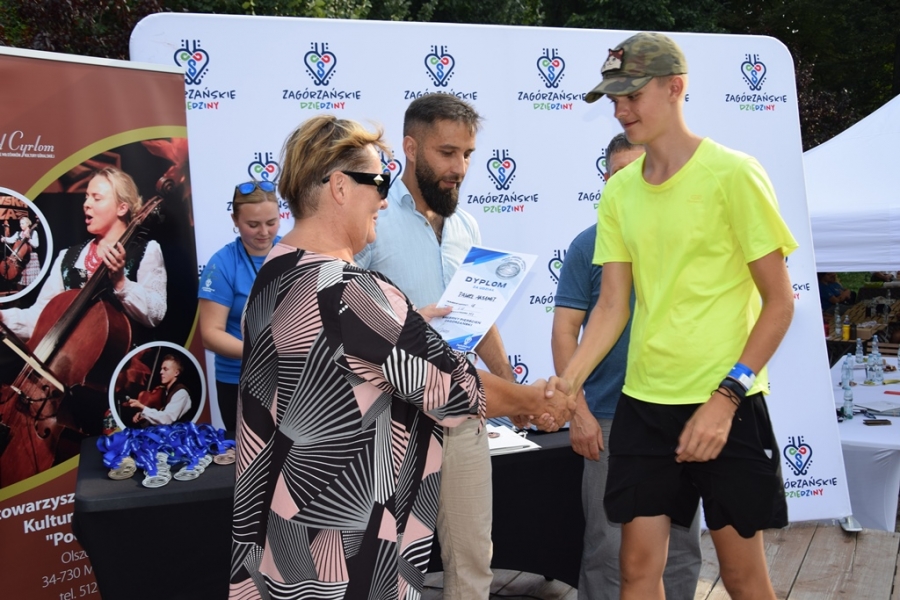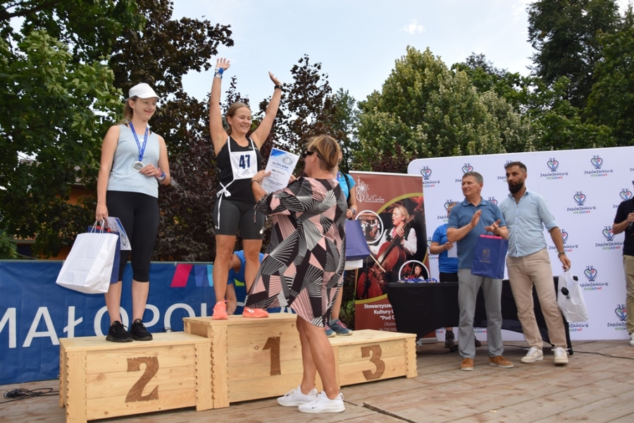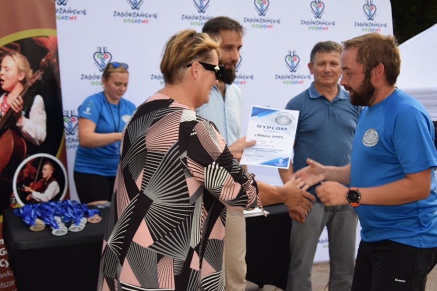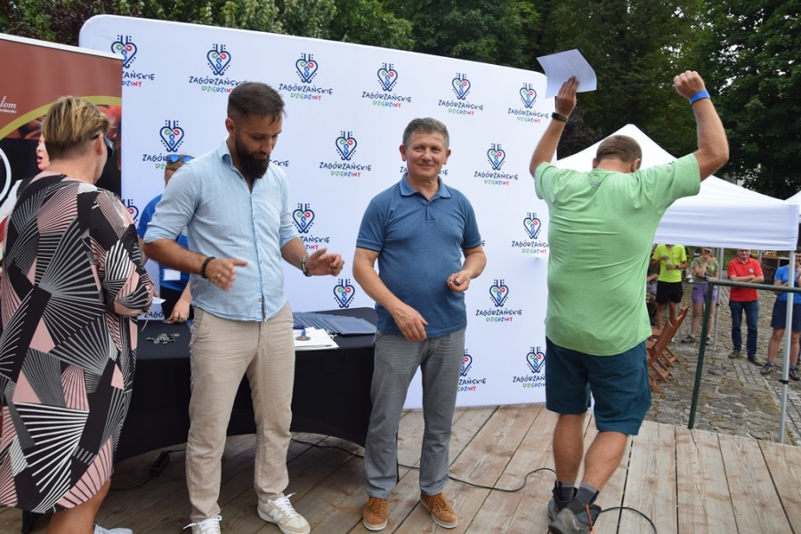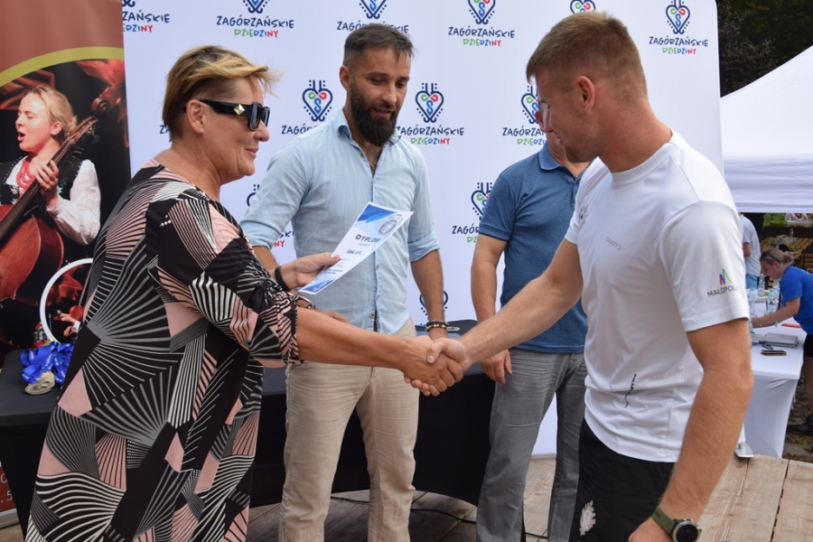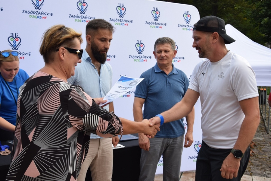 Gratulacje i nagrody wręczali: Burmistrz Miasta Mszana Dolna, Wójt Gminy Mszana Dolna i Wójt Gminy Niedźwiedź (ten ostatni na wydarzenie przywiózł dodatkowe nagrody), a te z kategorii open również Wojciech Winkel. Zanim jednak przystąpiono do dekoracji medalowej postanowiono nagrodzić biletami do popularnej w Regionie Zagórzańskim atrakcji – Muzeum motorowerów Moped Retro, które ufundował Partner Zagórzańskich Dziedzin – Kasina Ski&Bike Park, najmłodszego i najstarszego zawodnika, biegacza, który na zawody przyjechał z najdalszej miejscowości oraz małżeństwa, które wspólnie zdecydowały się na start.