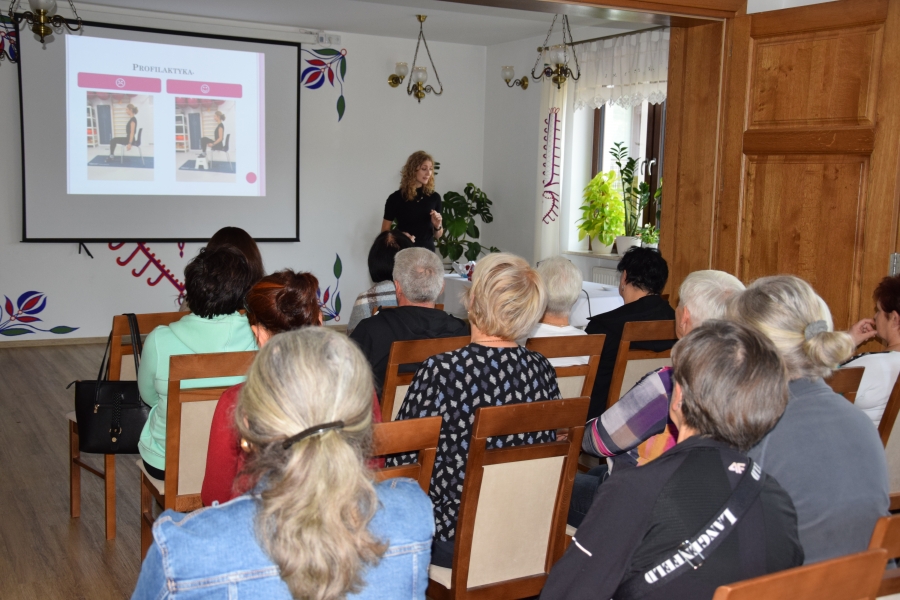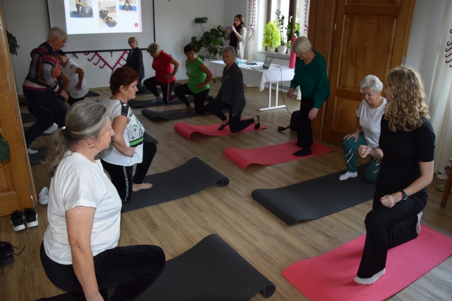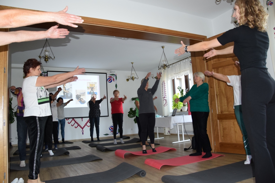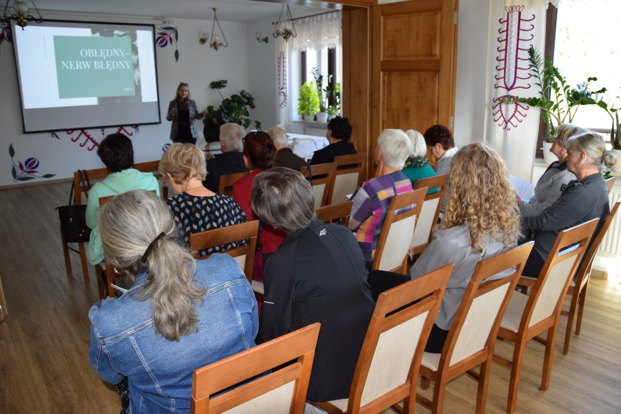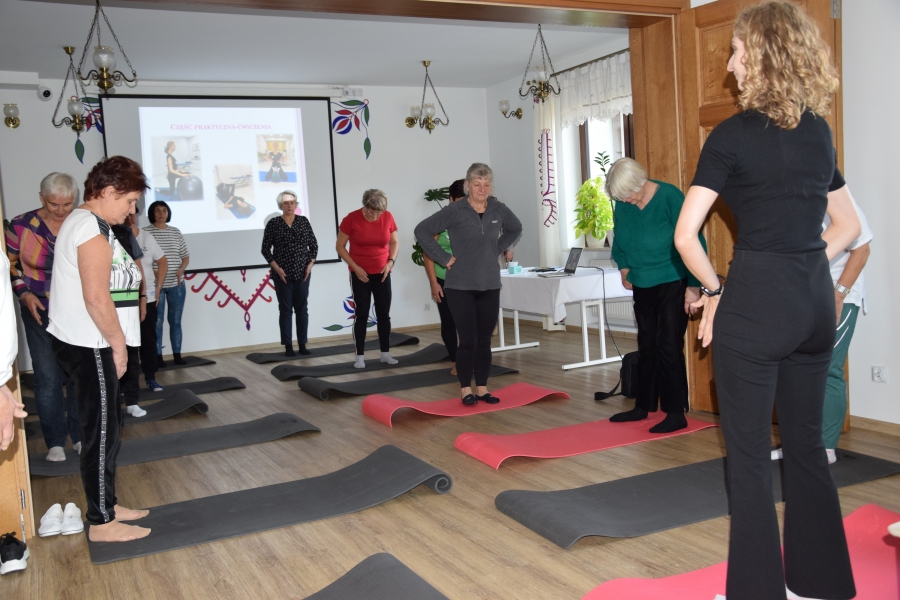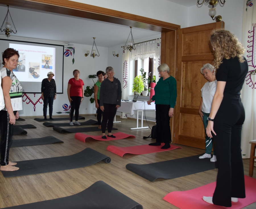 Jadwiga wspiera nas swoimi zasobami i wiedzą dot. regionu, Krysia zaś prowadzi trudną księgowość podmiotów skupionych w marce lokalnej. A Józia? Tej to już nikomu przedstawiać nie trzeba! Śwarna Babka, która popularyzuje kuchnię górali zagórzańskich, promuje nasz strój, gwarę, obrzędy i zwyczaje! I jak tu o nie nie zadbać? To właśnie więc one i jeszcze kilka innych przedstawicielek zagórzańskiej płci pięknej, a na okrasę Józef, który na zajęcia przywiózł żonę i też został, spotkali się w gościnnych progach Janda Resort & Conference w Mszanie Dolnej aby skorzystać z kolejnych zajęć edukacyjnych projektu „Aktywny w każdym wieku” realizowanego przez Stowarzyszenie Skrawek Nieba z Łosia. Prezes tej organizacji, Urszula Klucznik – Kosińska, zaprosiła - tym razem do stolicy Zagórzan - Agnieszkę Kudroń (coach, diet coach, psychodietetyczkę) i Małgorzatę Podobińską (fizjoterapeutkę uroginekologiczną). W trakcie warsztatów, podziwiając przy okazji piękne, regionalne zdobienia sali oraz nowy mebel w jej wyposażeniu, kredens, rozprawiano o profilaktyce Alzheimera, nerwie błędnym a także zdrowych nawykach. Uczestnicy spotkania w praktyce sprawdzili, jakie ćwiczenia służą zdrowiu uroginekologicznemu; dowiedzieli się też jakich sytuacji i przyzwyczajeń unikać, aby w każdej sytuacji czuć się komfortowo.