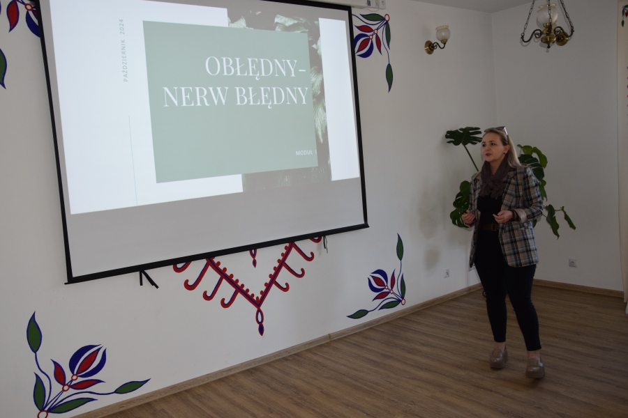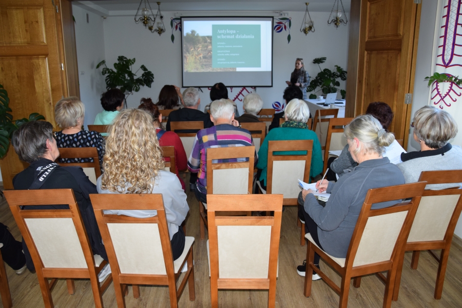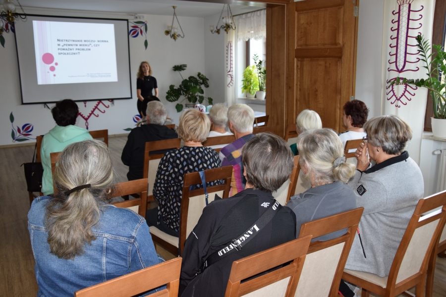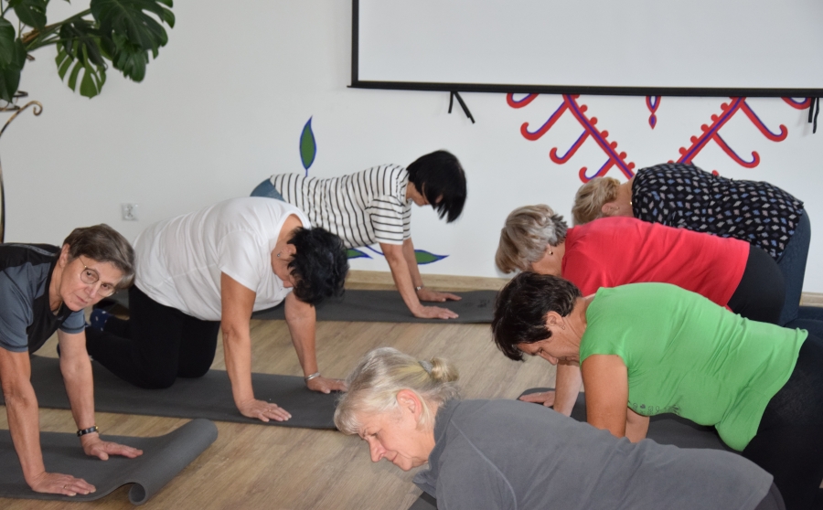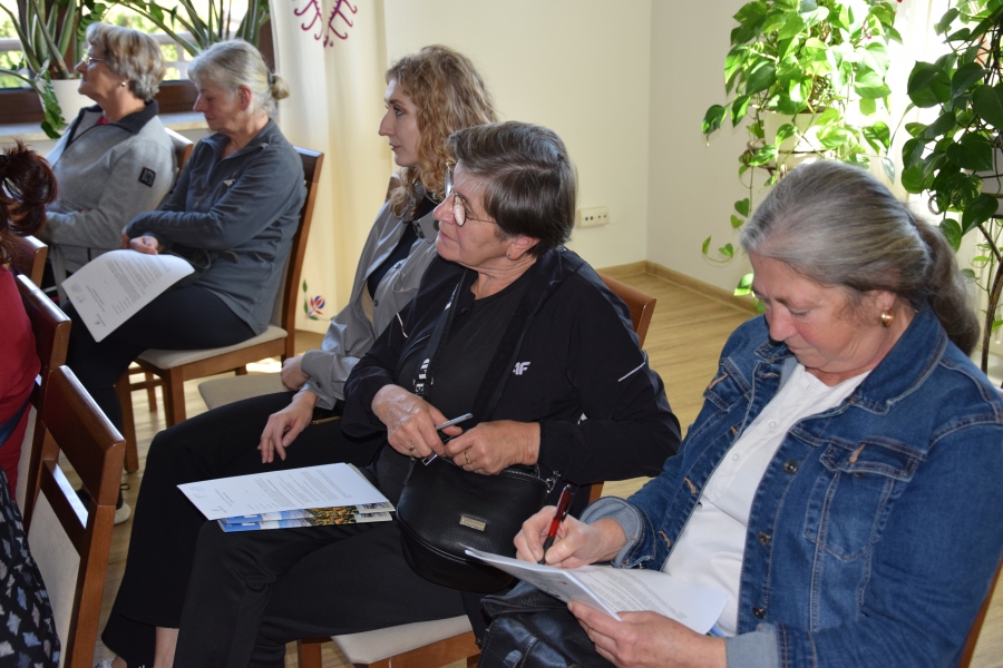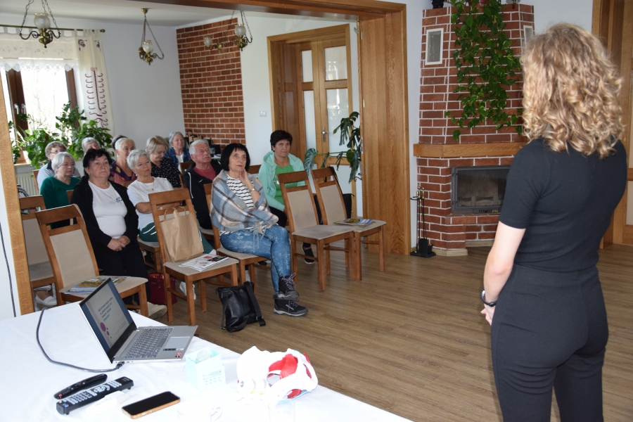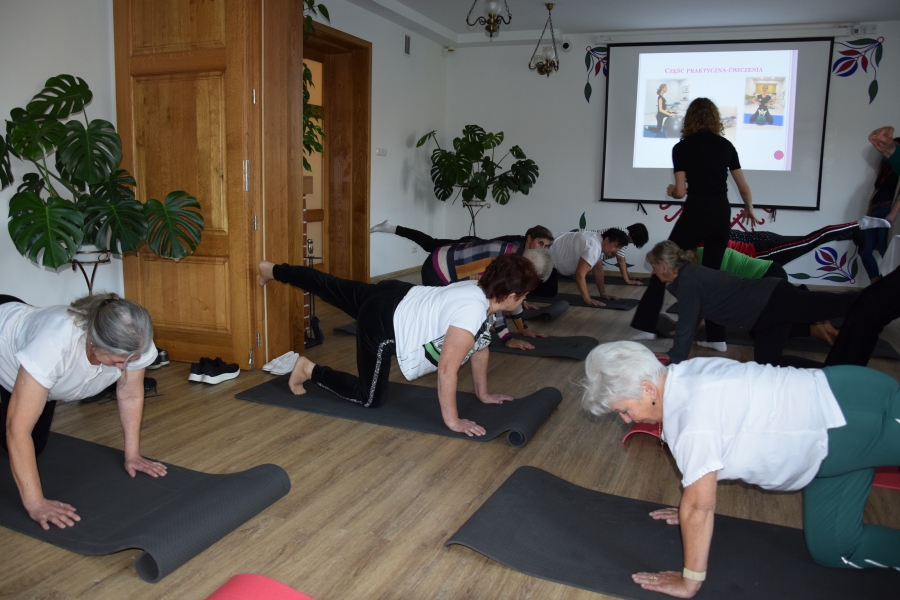 Jadwiga wspiera nas swoimi zasobami i wiedzą dot. regionu, Krysia zaś prowadzi trudną księgowość podmiotów skupionych w marce lokalnej. A Józia? Tej to już nikomu przedstawiać nie trzeba! Śwarna Babka, która popularyzuje kuchnię górali zagórzańskich, promuje nasz strój, gwarę, obrzędy i zwyczaje! I jak tu o nie nie zadbać? To właśnie więc one i jeszcze kilka innych przedstawicielek zagórzańskiej płci pięknej, a na okrasę Józef, który na zajęcia przywiózł żonę i też został, spotkali się w gościnnych progach Janda Resort & Conference w Mszanie Dolnej aby skorzystać z kolejnych zajęć edukacyjnych projektu „Aktywny w każdym wieku” realizowanego przez Stowarzyszenie Skrawek Nieba z Łosia. Prezes tej organizacji, Urszula Klucznik – Kosińska, zaprosiła - tym razem do stolicy Zagórzan - Agnieszkę Kudroń (coach, diet coach, psychodietetyczkę) i Małgorzatę Podobińską (fizjoterapeutkę uroginekologiczną). W trakcie warsztatów, podziwiając przy okazji piękne, regionalne zdobienia sali oraz nowy mebel w jej wyposażeniu, kredens, rozprawiano o profilaktyce Alzheimera, nerwie błędnym a także zdrowych nawykach. Uczestnicy spotkania w praktyce sprawdzili, jakie ćwiczenia służą zdrowiu uroginekologicznemu; dowiedzieli się też jakich sytuacji i przyzwyczajeń unikać, aby w każdej sytuacji czuć się komfortowo.