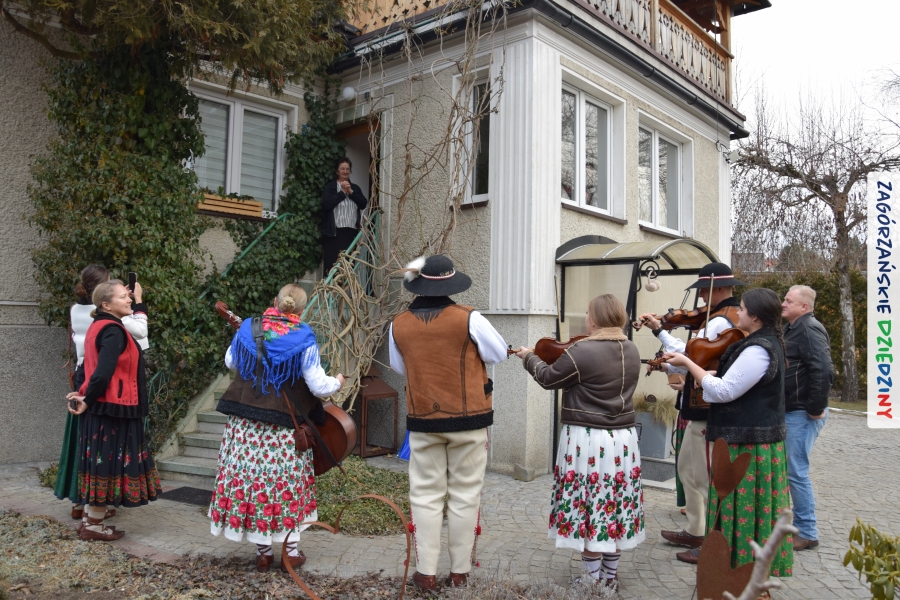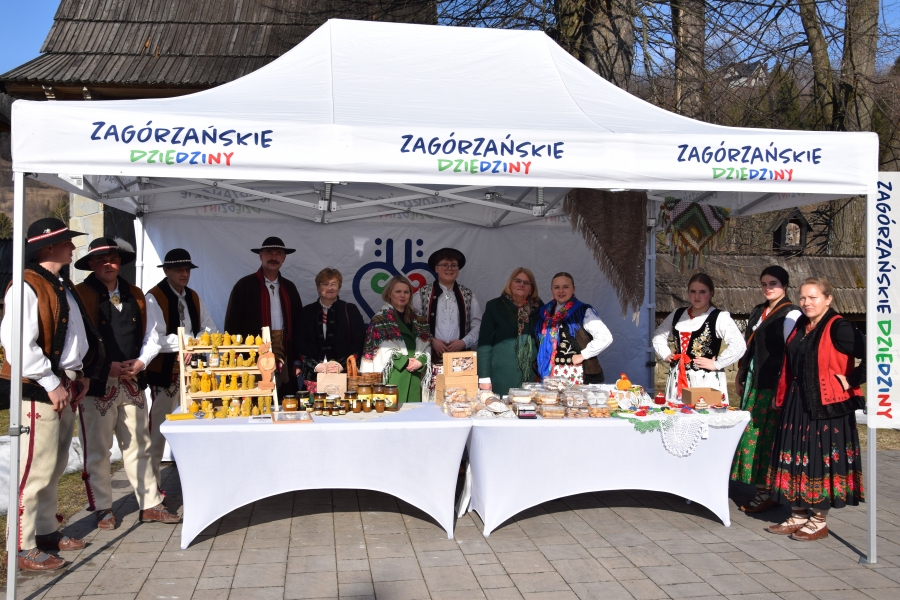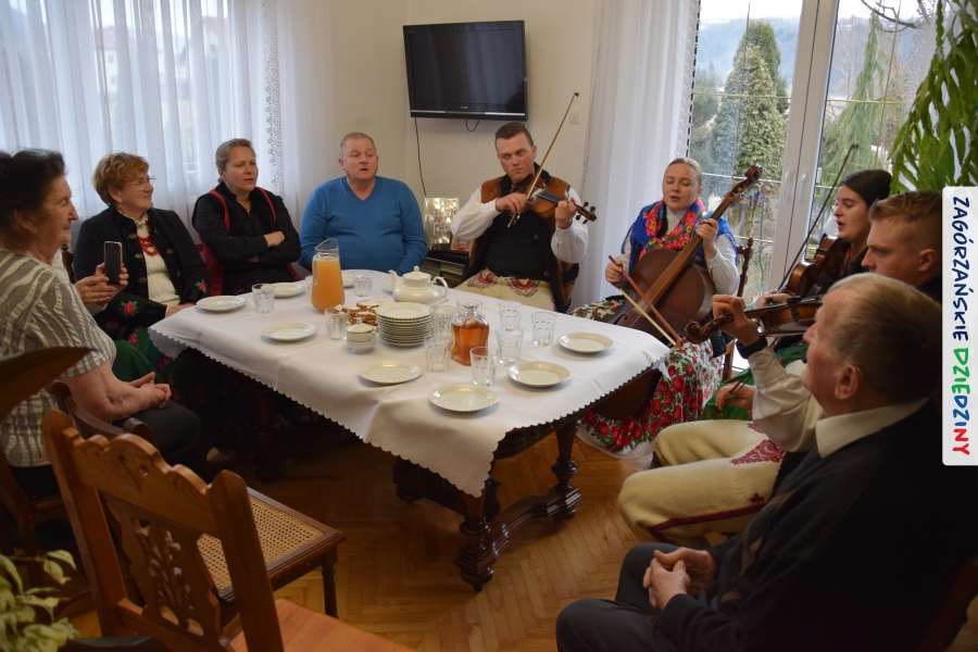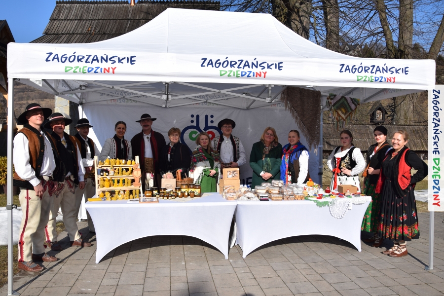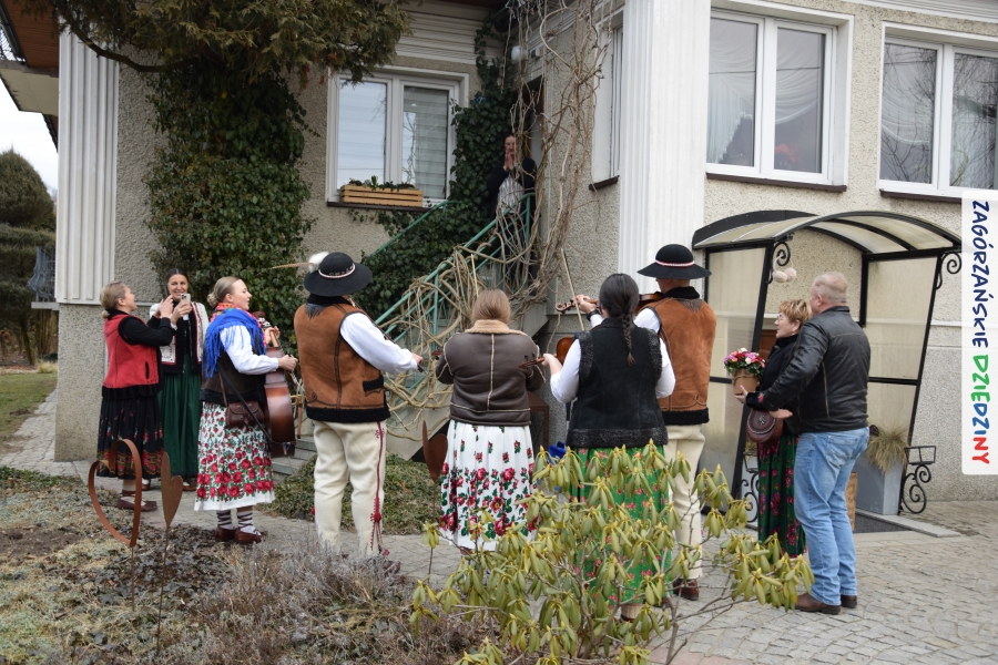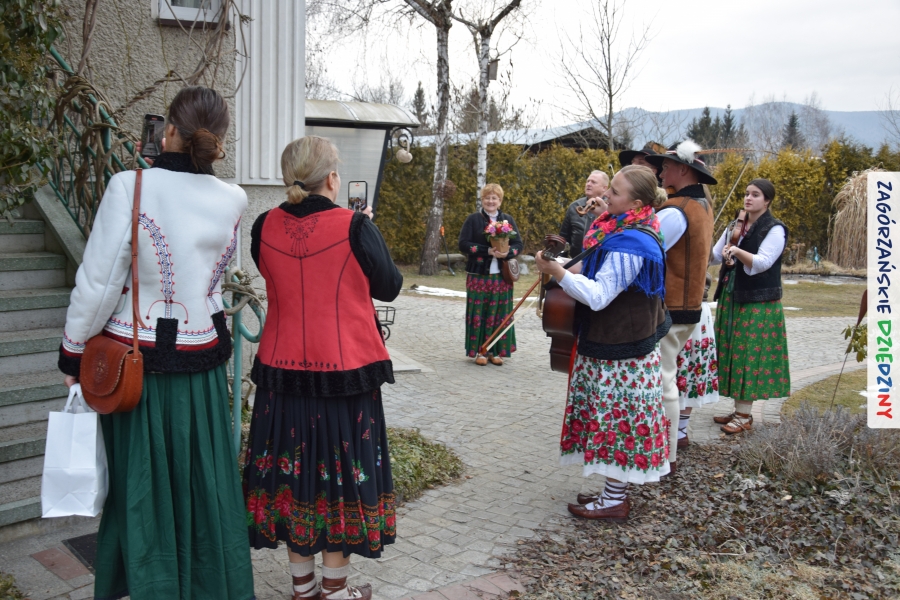 Idzie wiosna, idzie nowe – podobnie jak pierwsze nowalijki na straganie, tuż po pierwszym spotkaniu z Kapitułą Znaku Promocyjnego Zagórzańskie Dziedziny, pojawili się nowi użytkownicy marki lokalnej. Józef Bierowiec i Zofia Piętoń zaopiekowali się naszym nowym „słodkim” wsparciem w postaci Moniki Kołodziej prezentującej swoje wyroby jako Cukiernia Babeczka oraz kolejnym pszczelarzem, Zdzisławem Potaczkiem z Raby Niżnej, wzbogacającym naszą miodową, zagórzańską rodzinę. I jak przystało na zgraną grupę, dwa razy nam nie trzeba było powtarzać; my już jesteśmy umówieni na symboliczne pożegnanie się z kościołem w Lubomierzu – w marcu po Zagórzańskiej Mszy św. zaplanowaliśmy ognisko z kiełbaskami! (oby tylko pogoda dopisała…). Zdradzimy Wam w sekrecie, że Mirosław Cichorz, Wójt Gminy Mszana Dolna oraz Józef Nieckula, Sołtys Lubomierza obiecali w tym zakresie swoje wsparcie... A rozochocona wizją marcowego wydarzenia muzyczna kompanija jeszcze przed rozjazdem do domów skręciła pod dobrze znany adres na ul. Orkana w Mszanie Dolnej, by zaśpiewać „Sto lat!” Jubilatce o ogromnym sercu, Janinie Jakubiak, która nigdy nie odmawia gościny w swoich progach, zarówno Zagórzańskim Dziedzinom, jak i tym, co o naszych dziedzinach dalej „trąbią”, czy to w radiu, czy w telewizji… Nie mogliśmy o tak zacnym jubileuszu zapomnieć i chociaż w ten sposób - śpiewem – podziękować za wszelkie dobro, którego od niej doświadczyliśmy.