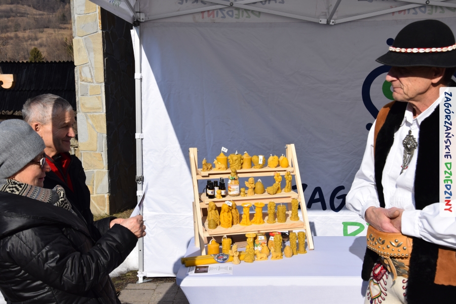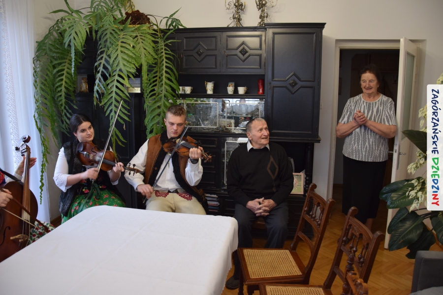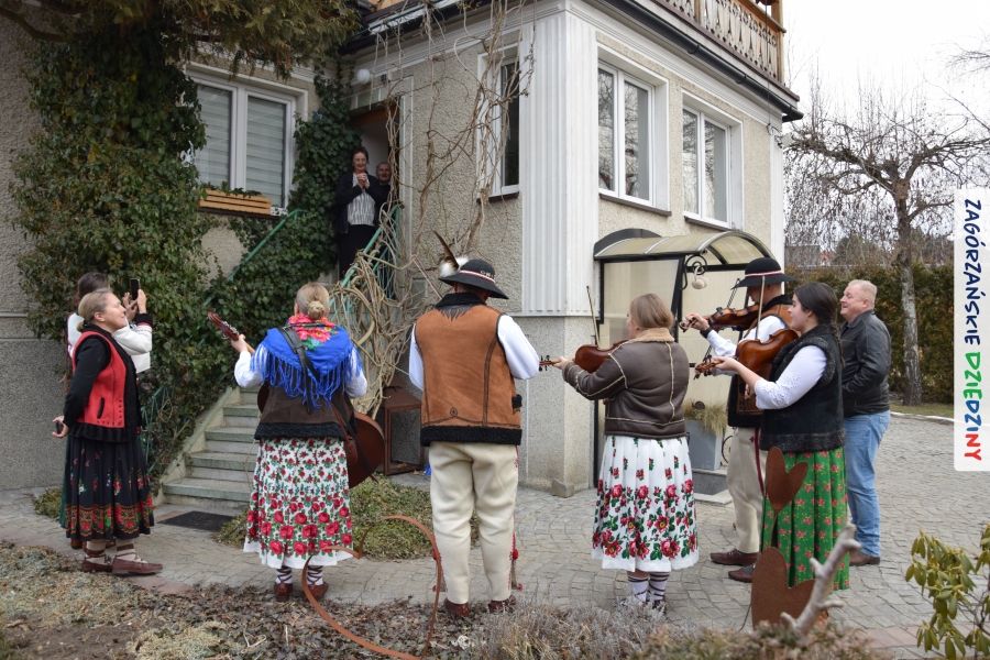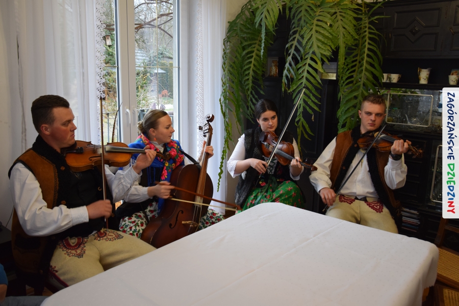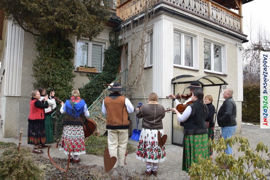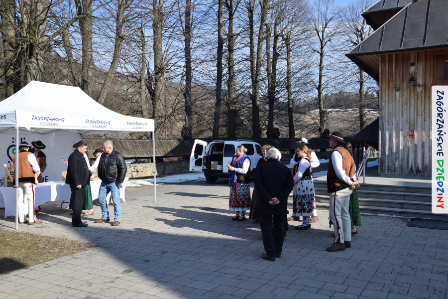 Idzie wiosna, idzie nowe – podobnie jak pierwsze nowalijki na straganie, tuż po pierwszym spotkaniu z Kapitułą Znaku Promocyjnego Zagórzańskie Dziedziny, pojawili się nowi użytkownicy marki lokalnej. Józef Bierowiec i Zofia Piętoń zaopiekowali się naszym nowym „słodkim” wsparciem w postaci Moniki Kołodziej prezentującej swoje wyroby jako Cukiernia Babeczka oraz kolejnym pszczelarzem, Zdzisławem Potaczkiem z Raby Niżnej, wzbogacającym naszą miodową, zagórzańską rodzinę. I jak przystało na zgraną grupę, dwa razy nam nie trzeba było powtarzać; my już jesteśmy umówieni na symboliczne pożegnanie się z kościołem w Lubomierzu – w marcu po Zagórzańskiej Mszy św. zaplanowaliśmy ognisko z kiełbaskami! (oby tylko pogoda dopisała…). Zdradzimy Wam w sekrecie, że Mirosław Cichorz, Wójt Gminy Mszana Dolna oraz Józef Nieckula, Sołtys Lubomierza obiecali w tym zakresie swoje wsparcie... A rozochocona wizją marcowego wydarzenia muzyczna kompanija jeszcze przed rozjazdem do domów skręciła pod dobrze znany adres na ul. Orkana w Mszanie Dolnej, by zaśpiewać „Sto lat!” Jubilatce o ogromnym sercu, Janinie Jakubiak, która nigdy nie odmawia gościny w swoich progach, zarówno Zagórzańskim Dziedzinom, jak i tym, co o naszych dziedzinach dalej „trąbią”, czy to w radiu, czy w telewizji… Nie mogliśmy o tak zacnym jubileuszu zapomnieć i chociaż w ten sposób - śpiewem – podziękować za wszelkie dobro, którego od niej doświadczyliśmy.