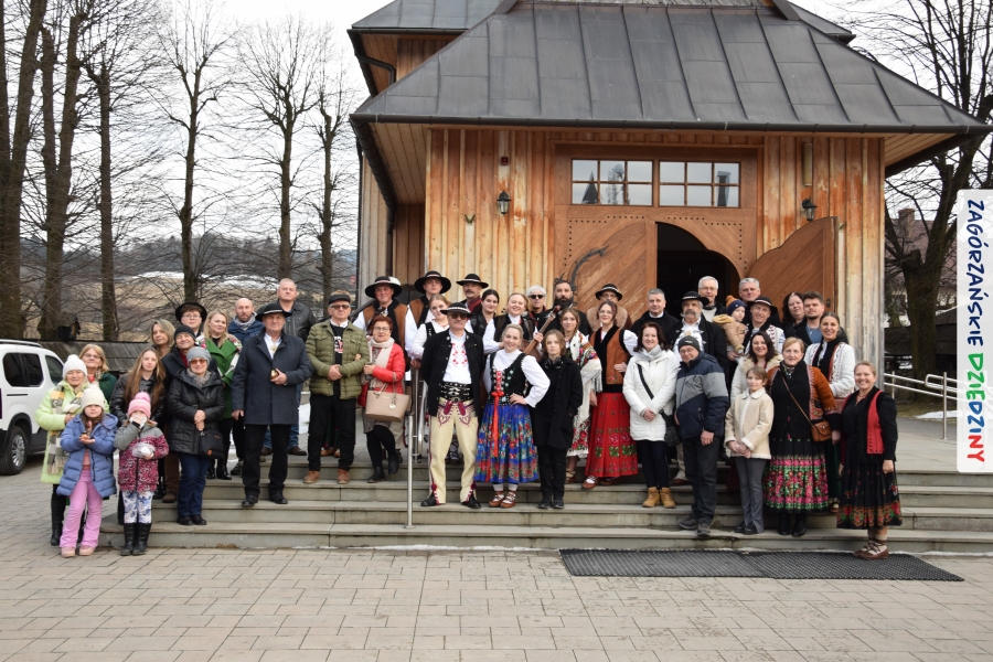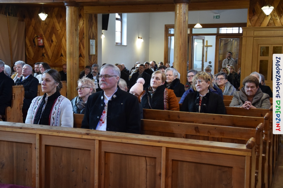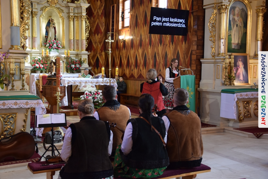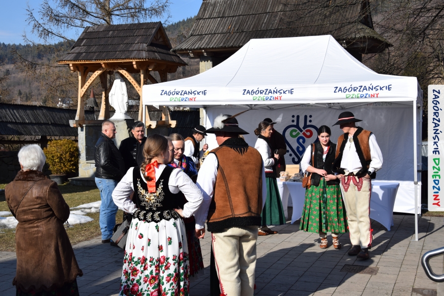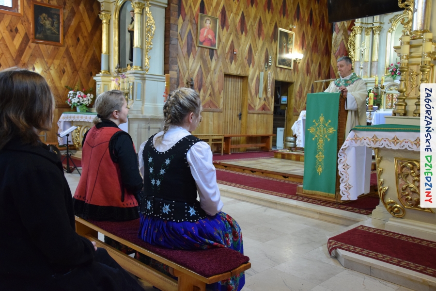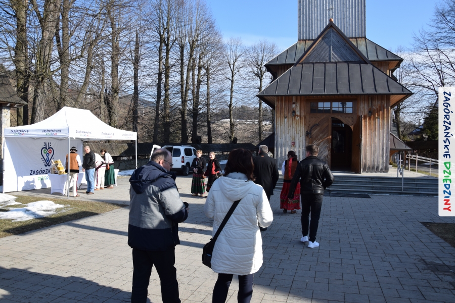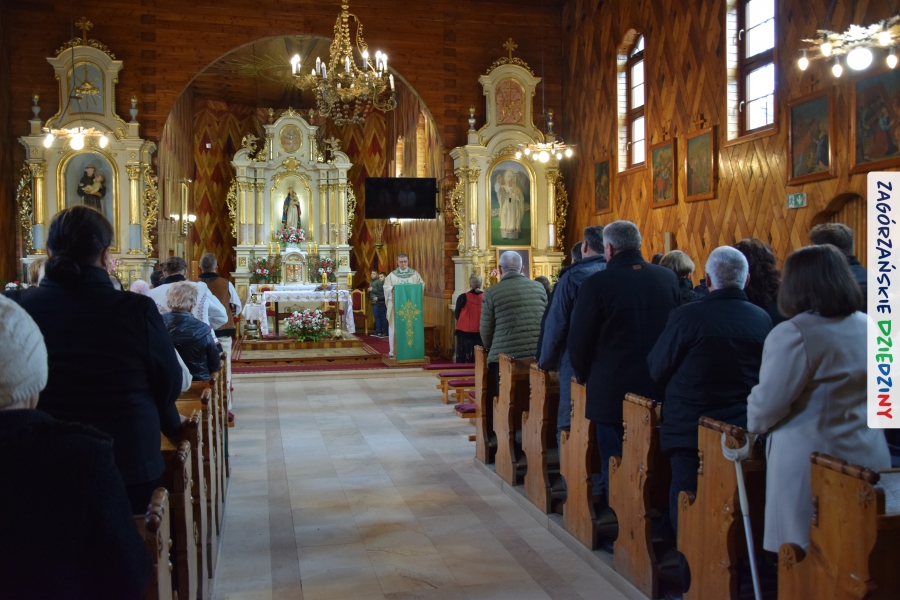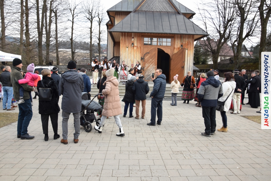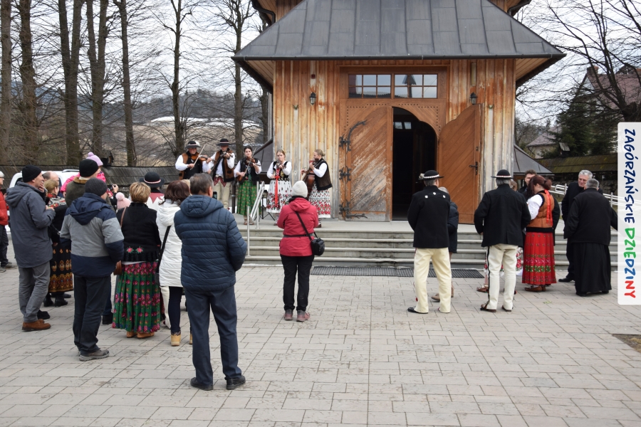 Tym razem, w ostatnią niedzielę lutego, 23., tej zimy już nie czuł nikt, kto pojawił się na dziedzińcu kościoła. Może trochę „zawczasu”, ale w mocnych promieniach słońca czuć było wiosnę, która wszystkim zaczęła już działać na wyobraźnię. Zebrani przed wejściem do świątyni, przygotowując do okolicznościowego kiermaszu biały, dziedzinny namiot, dzielili się swoimi spostrzeżeniami i planami; a to sołtys koniecznie chciał zaplanować nam kolejną wyprawę w znane tylko sobie leśne odstępy, co dalszą rozmowę przeniosło na czarny szlak do Kudłońskiego Bacy…; a to miejscowy proboszcz, O. Maciej Kustroń, pochwalił się wycieczkami na trzy okoliczne góry i zgrabnie to doświadczenie wplótł w niedzielne kazanie… Pojawili się również goście z okolic Limanowej i Dębicy, którzy najpierw skorzystali z uroków gorczańskich wzniesień, a potem odłożyli turystyczne kijki i lornetkę aby wspólnie z nami cieszyć się muzyczną oprawą Eucharystii przygotowanej przez rodzinną kapelę Kościelnioków z Olszówki.