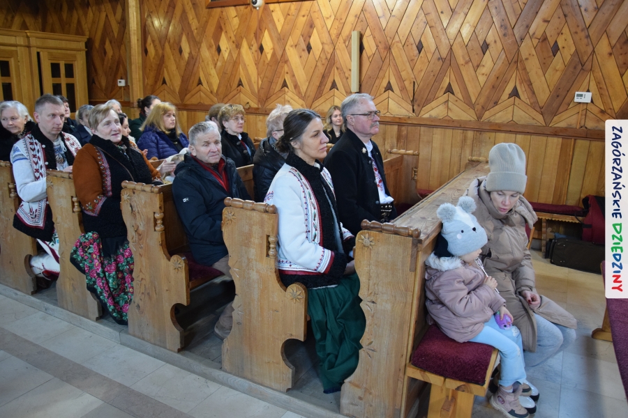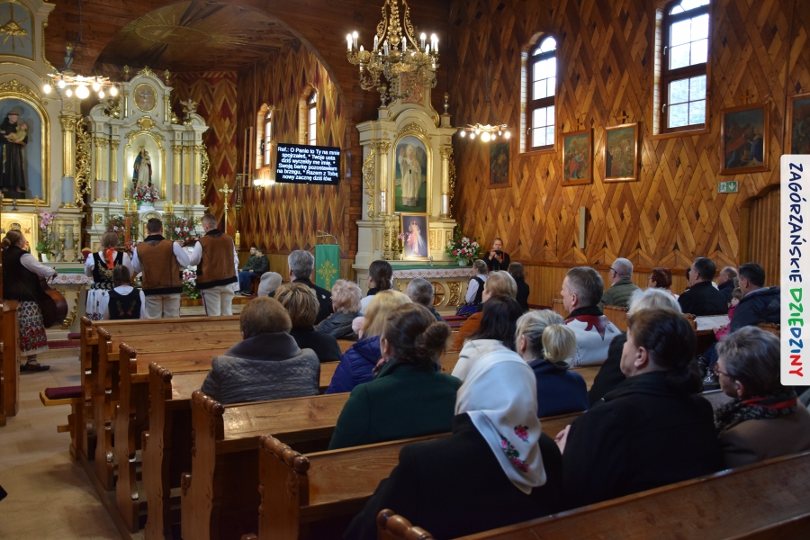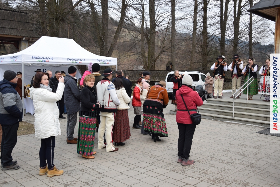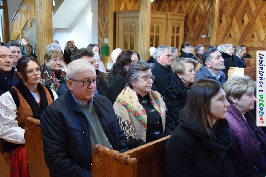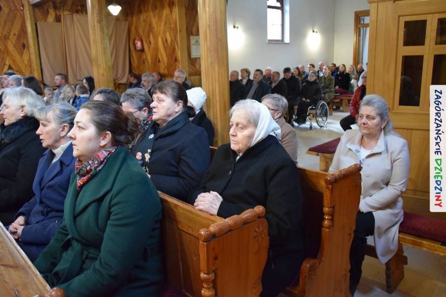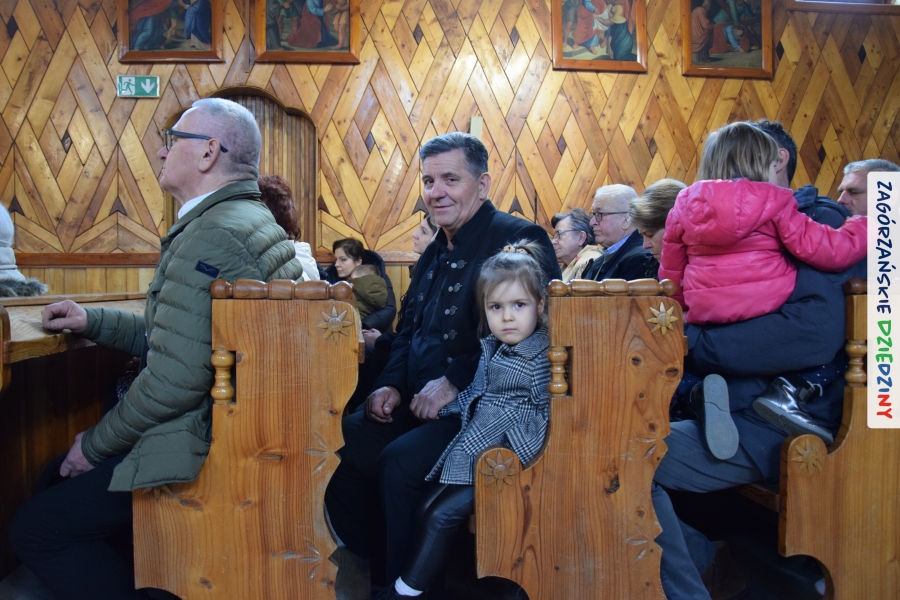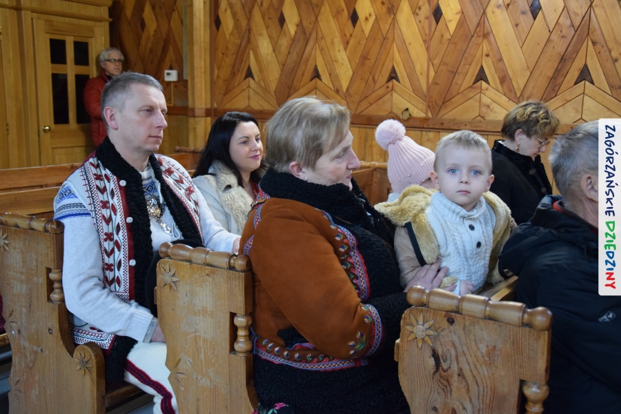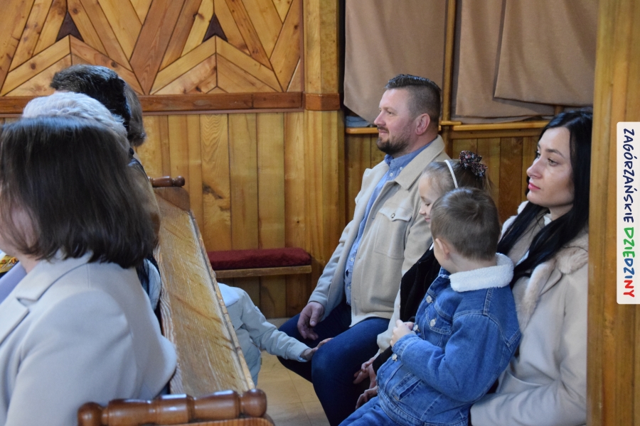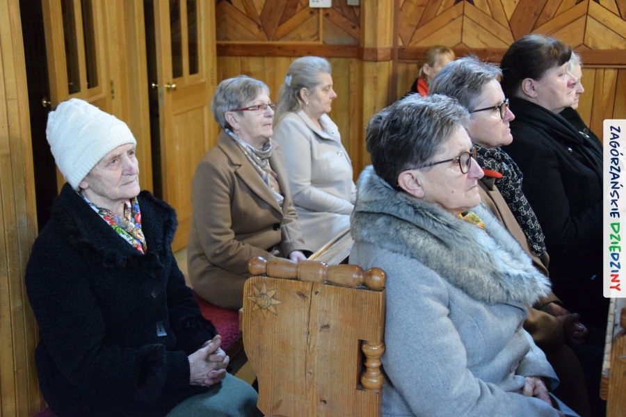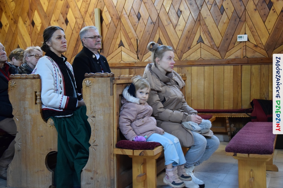 Tym razem, w ostatnią niedzielę lutego, 23., tej zimy już nie czuł nikt, kto pojawił się na dziedzińcu kościoła. Może trochę „zawczasu”, ale w mocnych promieniach słońca czuć było wiosnę, która wszystkim zaczęła już działać na wyobraźnię. Zebrani przed wejściem do świątyni, przygotowując do okolicznościowego kiermaszu biały, dziedzinny namiot, dzielili się swoimi spostrzeżeniami i planami; a to sołtys koniecznie chciał zaplanować nam kolejną wyprawę w znane tylko sobie leśne odstępy, co dalszą rozmowę przeniosło na czarny szlak do Kudłońskiego Bacy…; a to miejscowy proboszcz, O. Maciej Kustroń, pochwalił się wycieczkami na trzy okoliczne góry i zgrabnie to doświadczenie wplótł w niedzielne kazanie… Pojawili się również goście z okolic Limanowej i Dębicy, którzy najpierw skorzystali z uroków gorczańskich wzniesień, a potem odłożyli turystyczne kijki i lornetkę aby wspólnie z nami cieszyć się muzyczną oprawą Eucharystii przygotowanej przez rodzinną kapelę Kościelnioków z Olszówki.