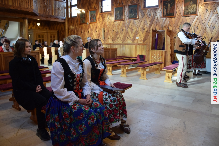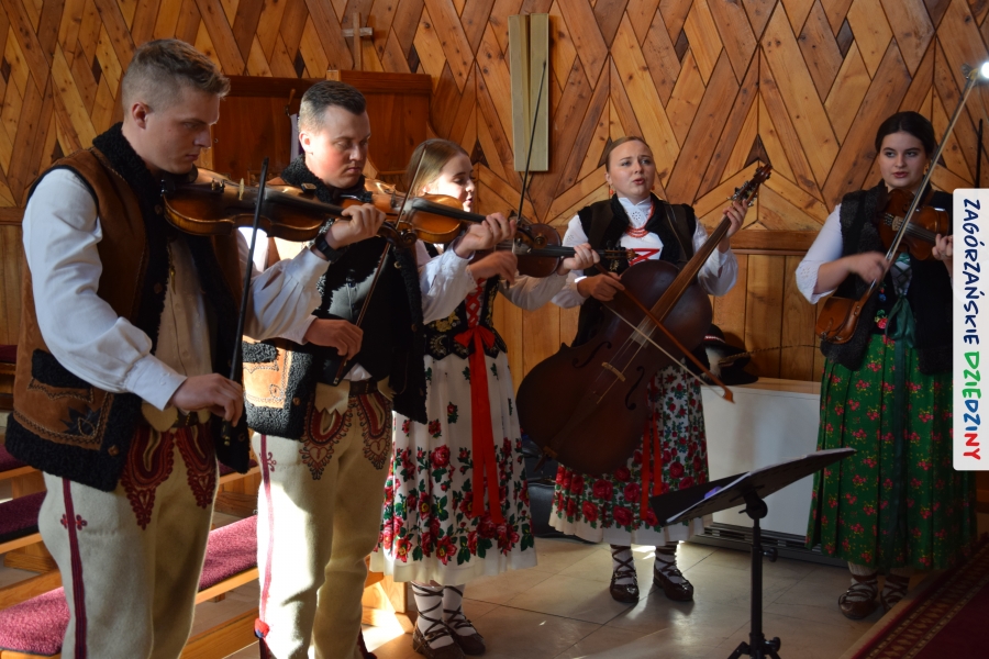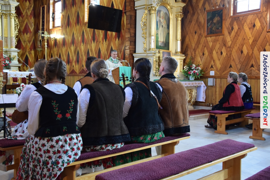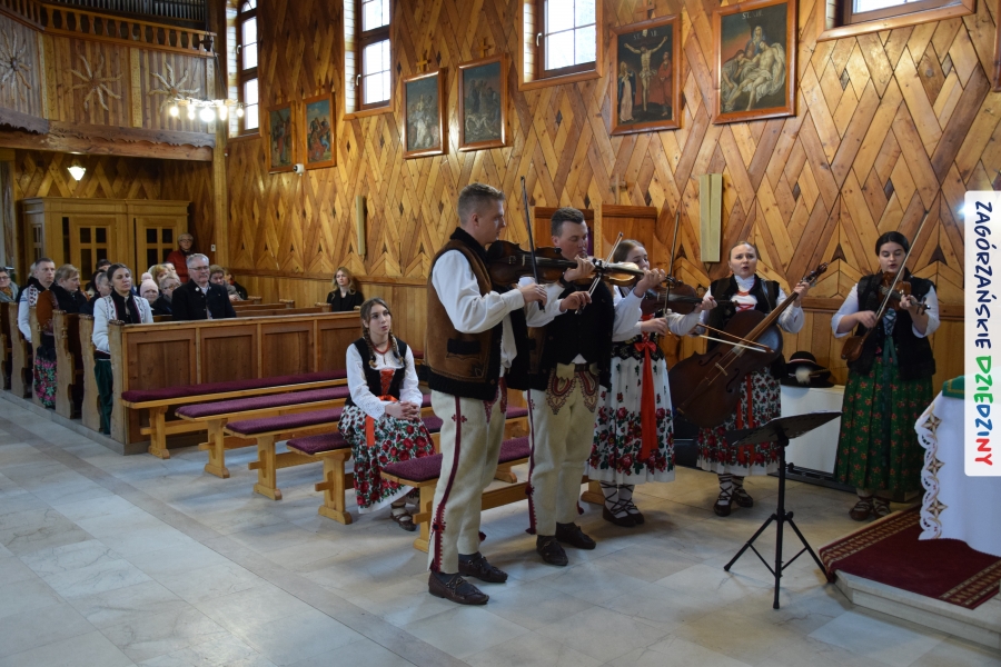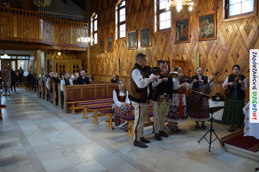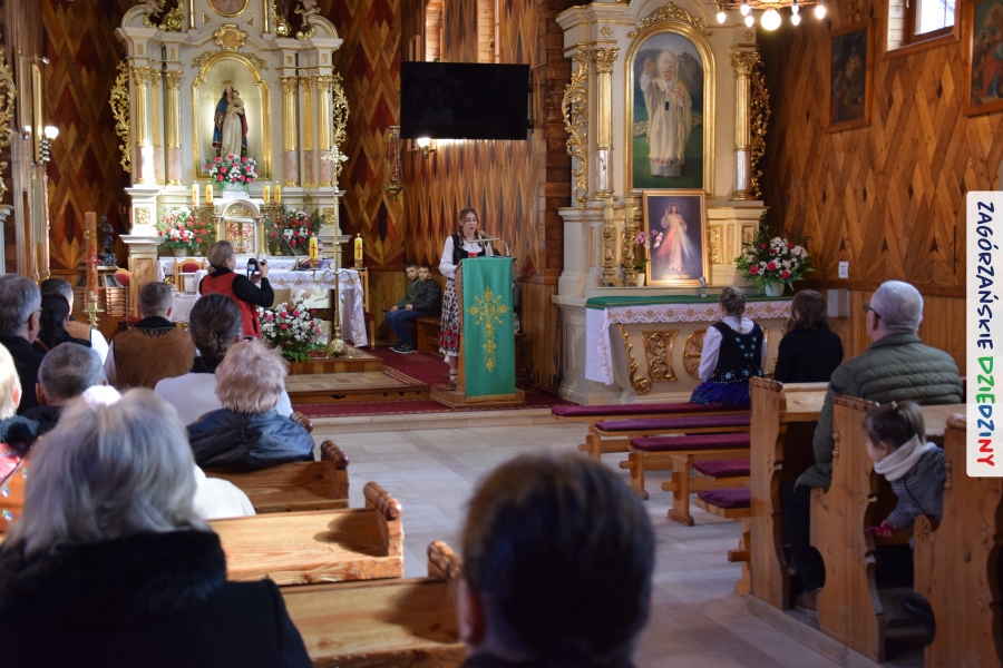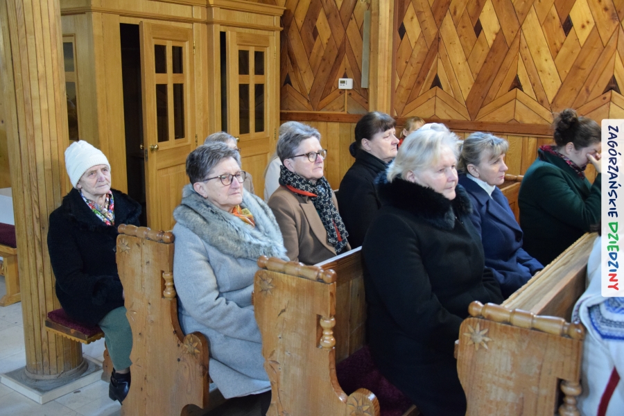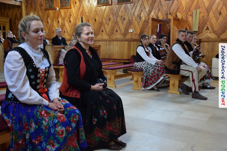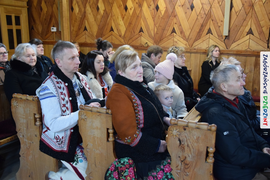 Tym razem, w ostatnią niedzielę lutego, 23., tej zimy już nie czuł nikt, kto pojawił się na dziedzińcu kościoła. Może trochę „zawczasu”, ale w mocnych promieniach słońca czuć było wiosnę, która wszystkim zaczęła już działać na wyobraźnię. Zebrani przed wejściem do świątyni, przygotowując do okolicznościowego kiermaszu biały, dziedzinny namiot, dzielili się swoimi spostrzeżeniami i planami; a to sołtys koniecznie chciał zaplanować nam kolejną wyprawę w znane tylko sobie leśne odstępy, co dalszą rozmowę przeniosło na czarny szlak do Kudłońskiego Bacy…; a to miejscowy proboszcz, O. Maciej Kustroń, pochwalił się wycieczkami na trzy okoliczne góry i zgrabnie to doświadczenie wplótł w niedzielne kazanie… Pojawili się również goście z okolic Limanowej i Dębicy, którzy najpierw skorzystali z uroków gorczańskich wzniesień, a potem odłożyli turystyczne kijki i lornetkę aby wspólnie z nami cieszyć się muzyczną oprawą Eucharystii przygotowanej przez rodzinną kapelę Kościelnioków z Olszówki.