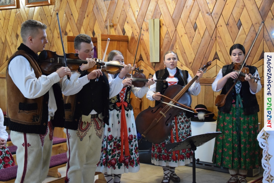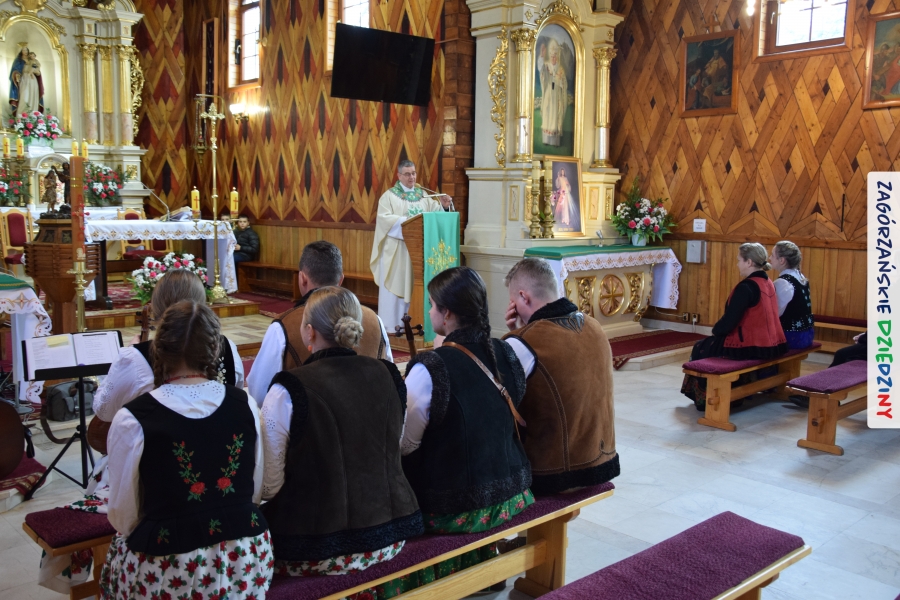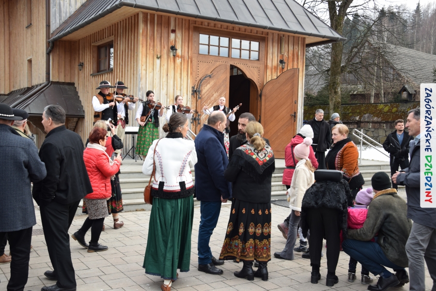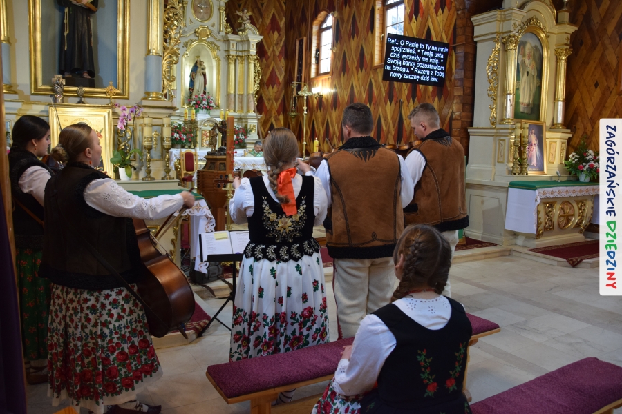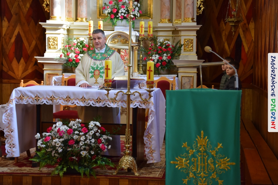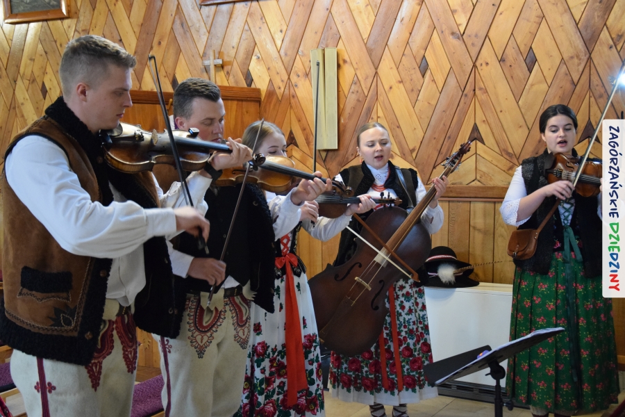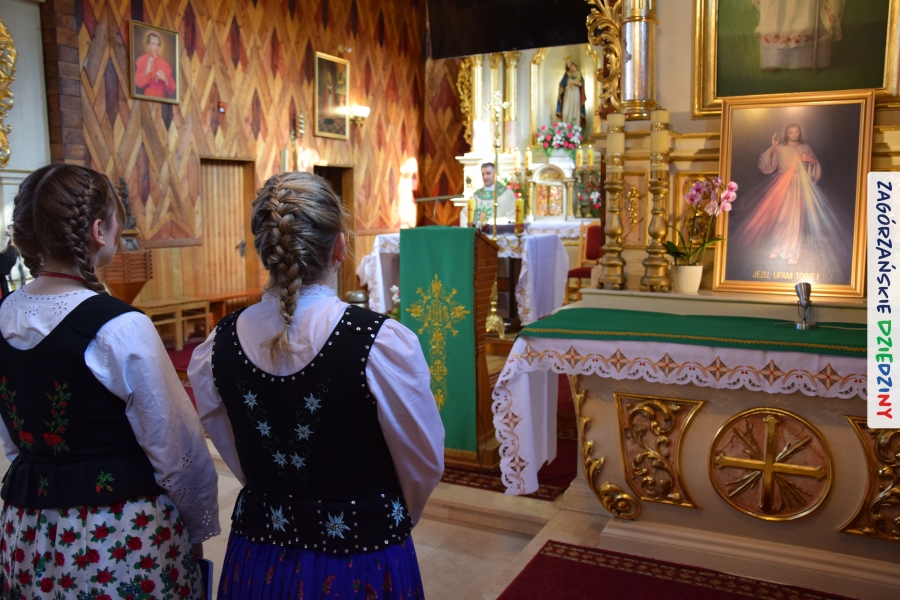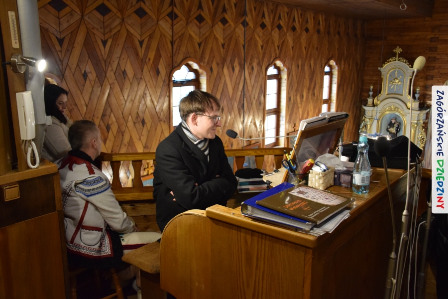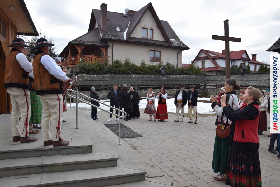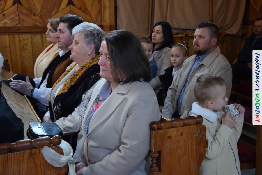 Tym razem, w ostatnią niedzielę lutego, 23., tej zimy już nie czuł nikt, kto pojawił się na dziedzińcu kościoła. Może trochę „zawczasu”, ale w mocnych promieniach słońca czuć było wiosnę, która wszystkim zaczęła już działać na wyobraźnię. Zebrani przed wejściem do świątyni, przygotowując do okolicznościowego kiermaszu biały, dziedzinny namiot, dzielili się swoimi spostrzeżeniami i planami; a to sołtys koniecznie chciał zaplanować nam kolejną wyprawę w znane tylko sobie leśne odstępy, co dalszą rozmowę przeniosło na czarny szlak do Kudłońskiego Bacy…; a to miejscowy proboszcz, O. Maciej Kustroń, pochwalił się wycieczkami na trzy okoliczne góry i zgrabnie to doświadczenie wplótł w niedzielne kazanie… Pojawili się również goście z okolic Limanowej i Dębicy, którzy najpierw skorzystali z uroków gorczańskich wzniesień, a potem odłożyli turystyczne kijki i lornetkę aby wspólnie z nami cieszyć się muzyczną oprawą Eucharystii przygotowanej przez rodzinną kapelę Kościelnioków z Olszówki.