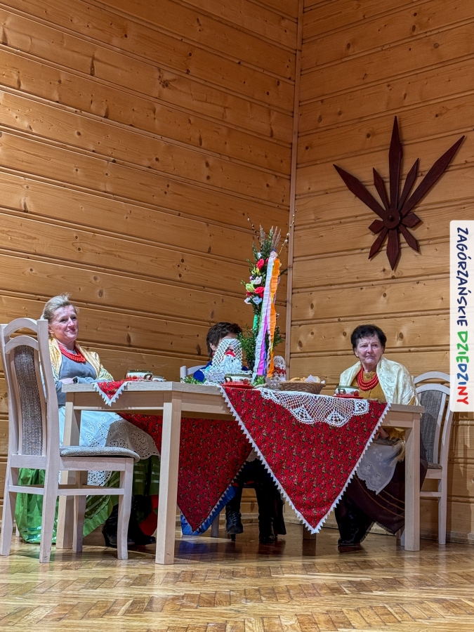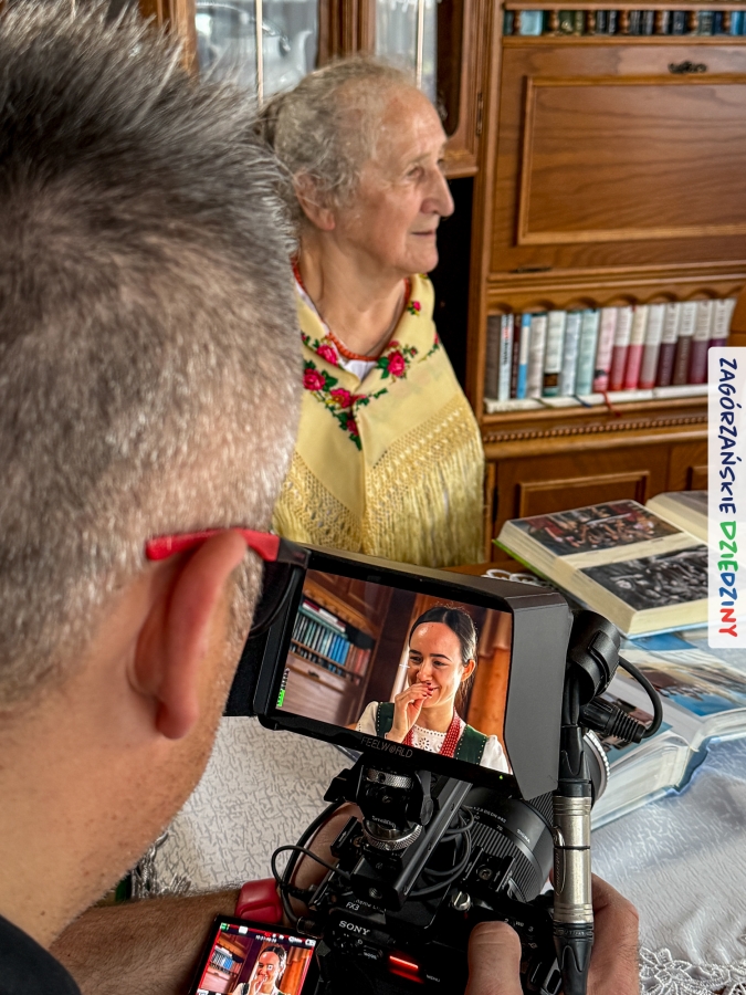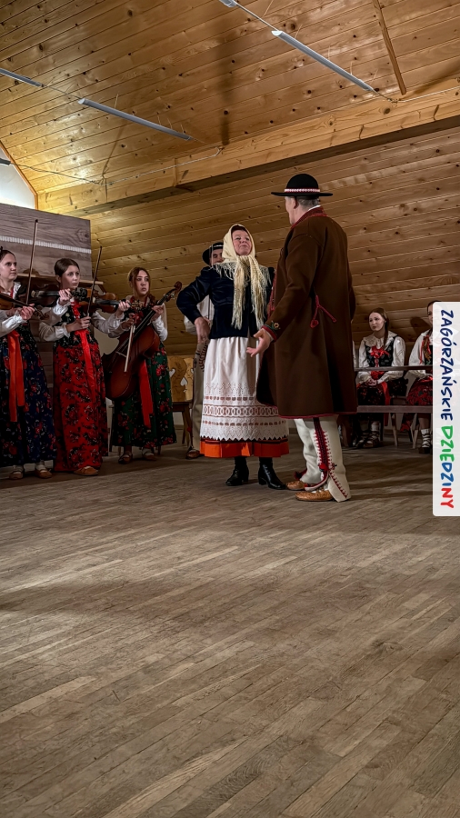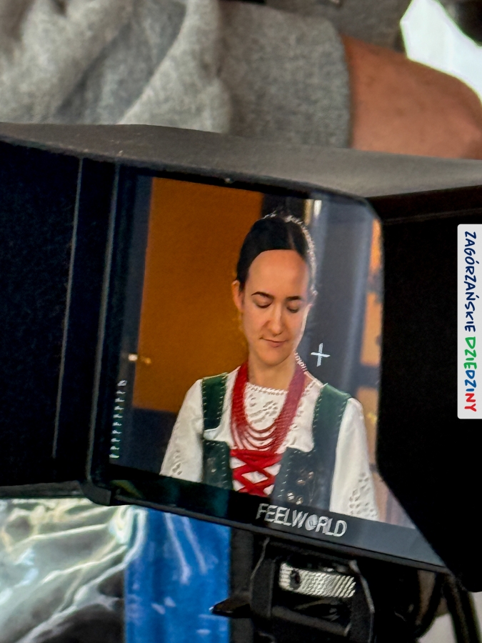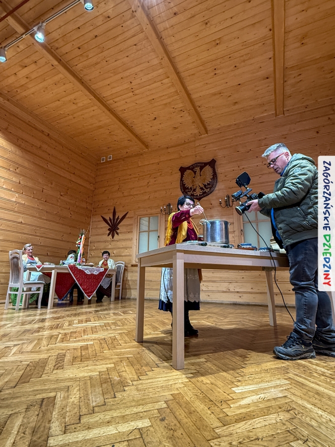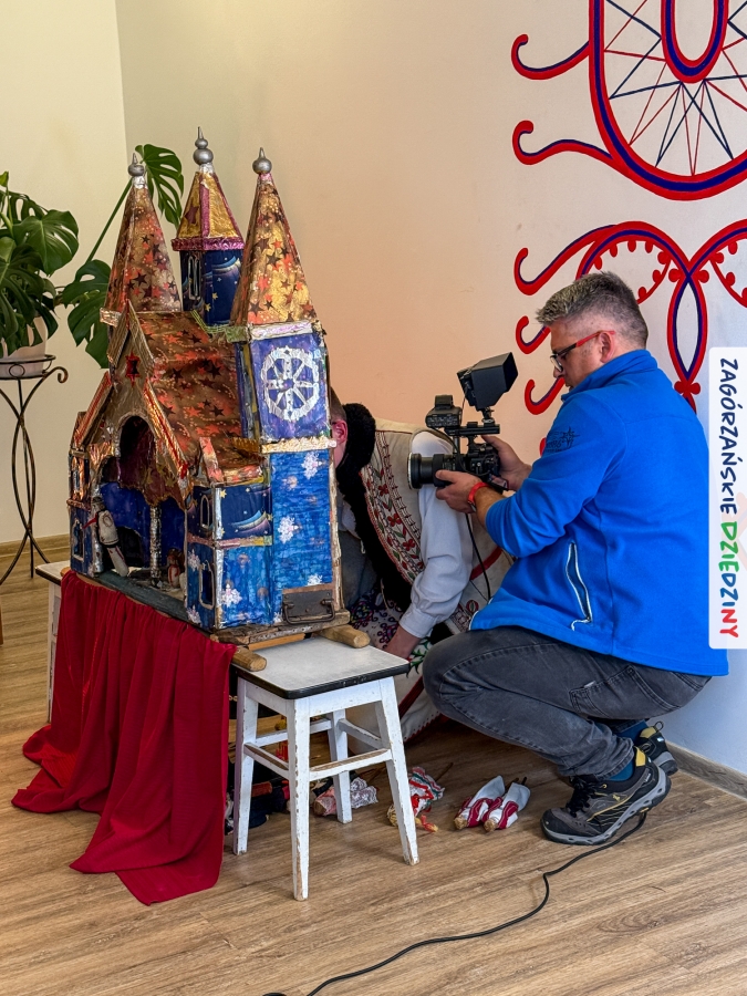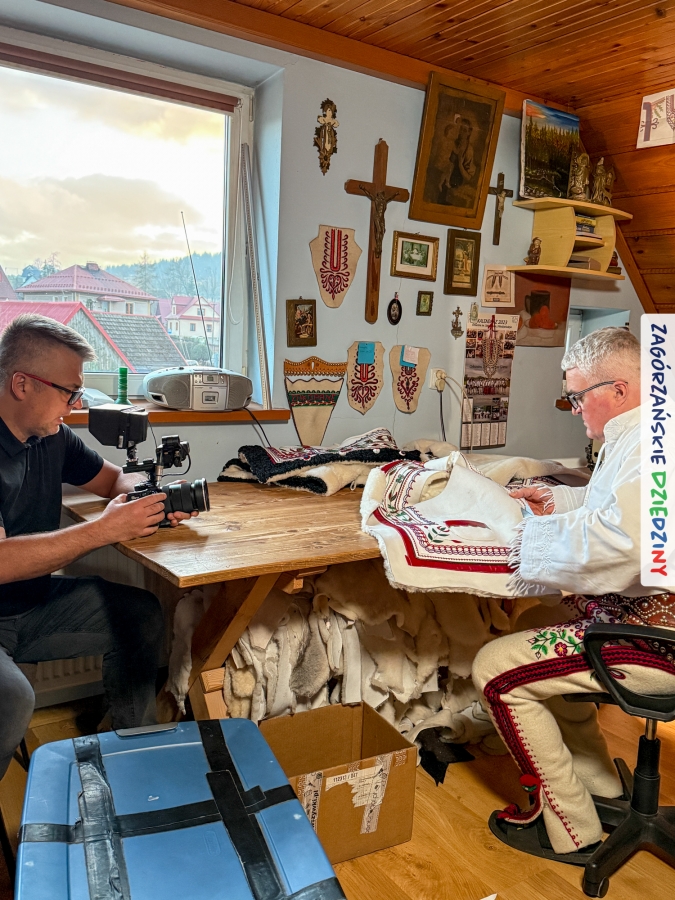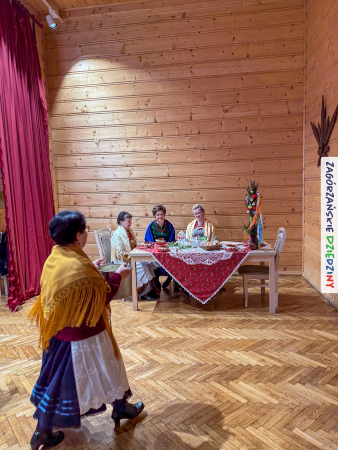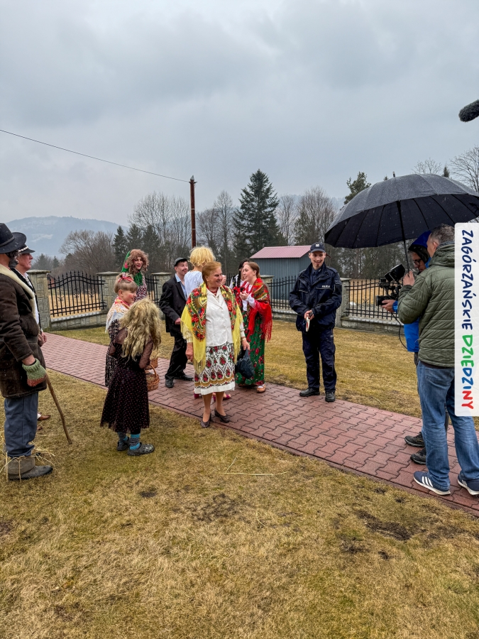 Zgodnie z ideą programu, wywiady nagraliśmy w Izbie podhalańskiej Muzeum Etnograficznego w Krakowie. Potem, już w terenie, z kamerą zawitaliśmy do Moniki Kościelniak – naszej bacy z certyfikatem czeladniczym. Przy okazji pobytu w Olszówce nie mogliśmy sobie odmówić przyjemności spotkania z muzykującym rodzeństwem – kapelą Kościelnioki, zrzeszonym w Stowarzyszeniu Miłośników Kultury Góralskiej Pod Cyrlom. Dorota, Marianna, Adrian i Grzegorz, to dzieci Moniki; również ich zobaczymy w pracy przy owczarni. W Olszówce spotkaliśmy się też z gaździnami z tamtejszego KGW, aby posłuchać opowieści o sodrze, czyli wielkanocnej zupie. Posileni tym niezwykle smacznym, zagórzańskim daniem, wybraliśmy się w podróż do Kasinki Małej. Tam, na przysiółku Zagródce, żywa jest inna wielkanocna tradycja, w odmianie nieco zapożyczonej z sąsiedniej Węglówki, a w zasadzie nawet z Wiśniowej, ale pomost stanowi ta pierwsza. Wyobraźcie sobie, że co roku, w Poniedziałek Wielkanocny, od bardzo wczesnych godzin porannych na Zagródcu słychać charakterystyczne „jukanie”. To znak, że „po śmiguszcie” wyruszyli przebrani za kobiety lub przedstawicieli różnych profesji, chłopcy i dorośli mężczyźni, upatrując swojej „ofiary”. Cieszy ich polewanie woda, cieszą ichpsoty, a młodzieńcy nie przepuszczą okazji, żeby w ten sposób przypodobać się dziewczynom. Te nie są wolne od ich „zalotów” również w drodze do kaplicy; wręcz przeciwnie – „dziadówki”, czyli nasi „śmiguśnicy” wiedzą, że w tym momencie mają największe pole do popisu… Po spotkaniu w wiosennymi kolędnikami spotkaliśmy się z tradycją bożonarodzeniową, która w rodzinie Szczypków, również z Kasinki Małej, trwa już przez cztery pokolenia. Ponad 130 – letnia szopkę lalkową przedstawił Dawid, tegoroczny maturzysta, niezwykle dumny z tego, że kultywuje rodzinne i rodzime tradycje! W tej zagórzańskiej miejscowości spotkaliśmy się również z Klaudią Gawronek, miłośniczką gwary zagórzańskiej, która, nie tylko zaprosiła wszystkich widzów do Zagórzańskich Dziedzin, ale pogwarzyła jeszcze wesoło z Anną Cież. Pochwaliła się też swoimi literackimi osiągnięciami.