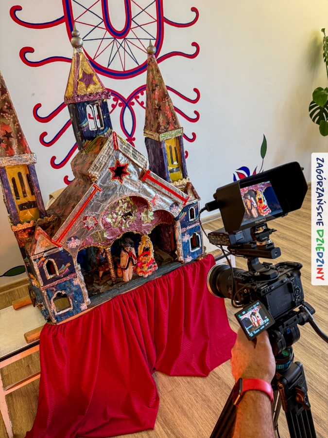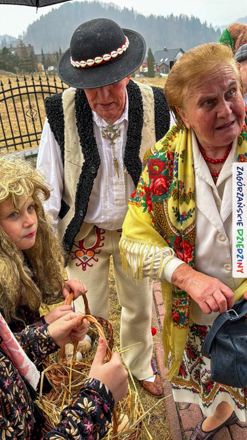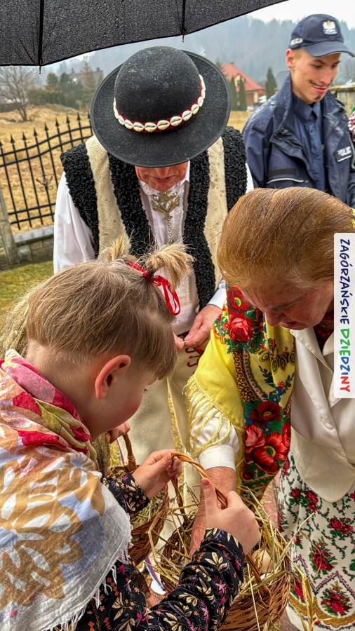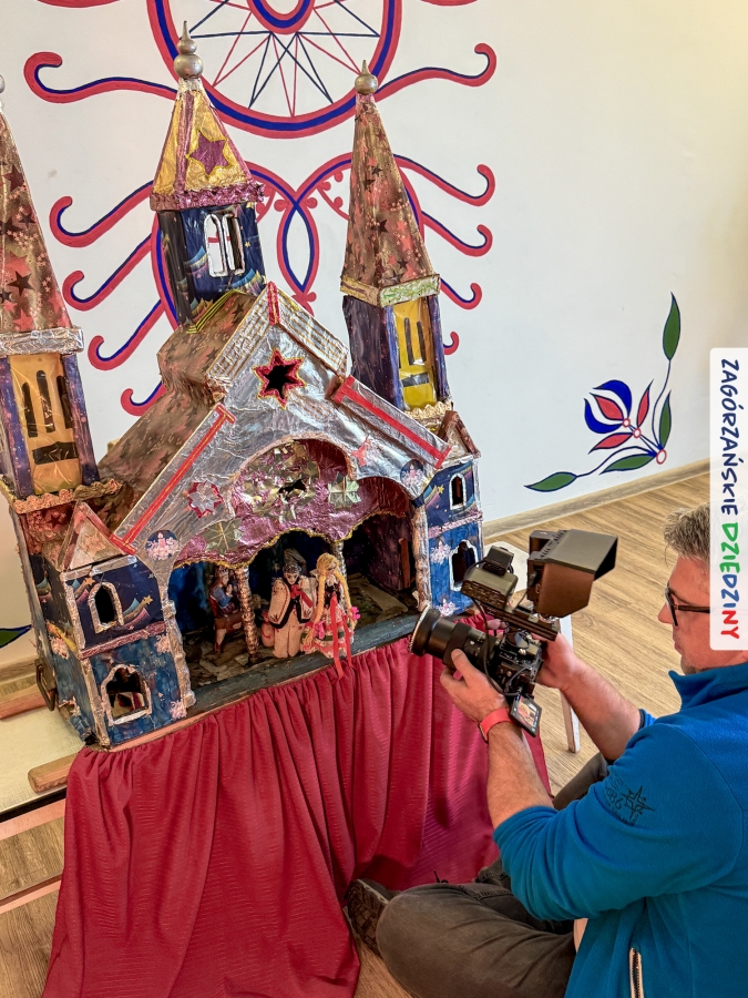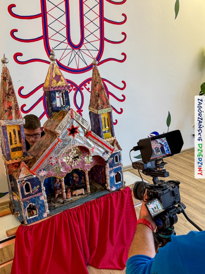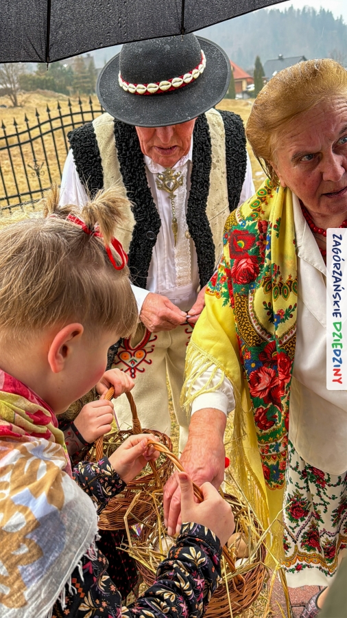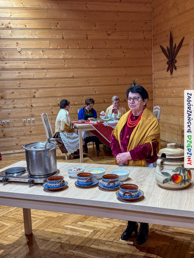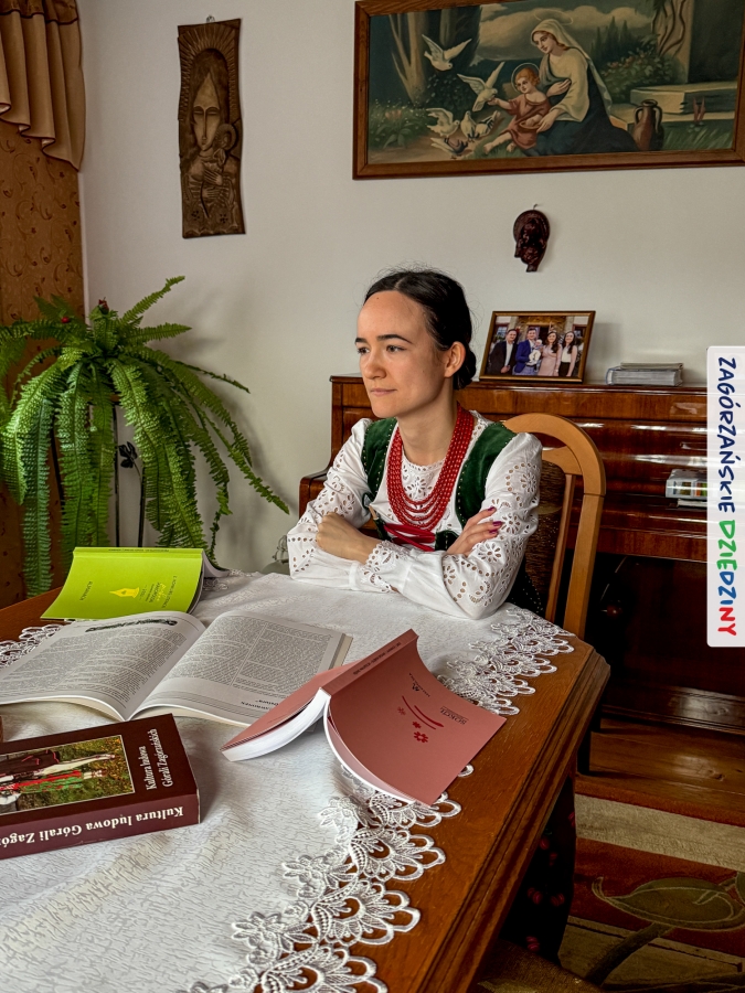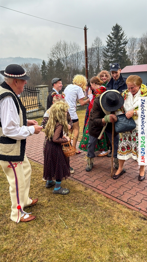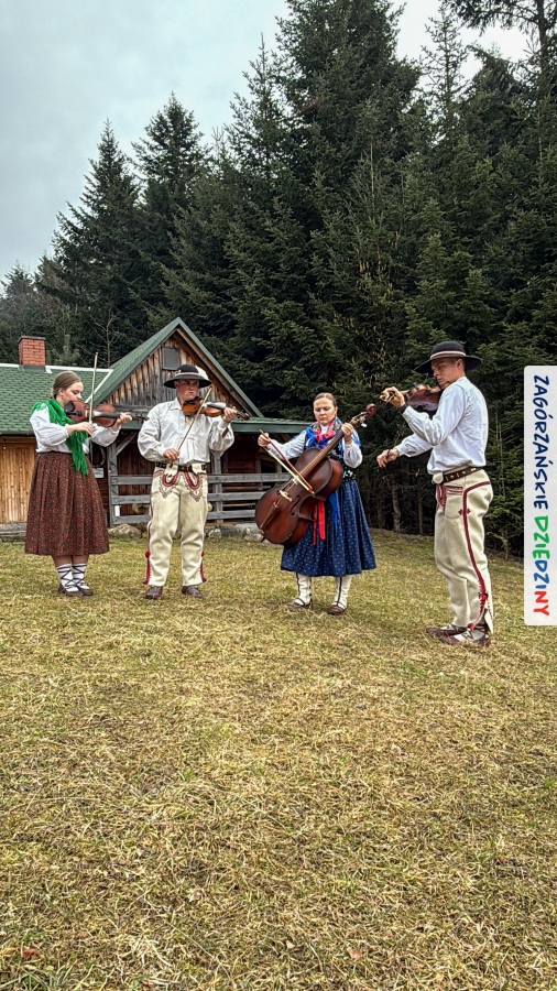 Zgodnie z ideą programu, wywiady nagraliśmy w Izbie podhalańskiej Muzeum Etnograficznego w Krakowie. Potem, już w terenie, z kamerą zawitaliśmy do Moniki Kościelniak – naszej bacy z certyfikatem czeladniczym. Przy okazji pobytu w Olszówce nie mogliśmy sobie odmówić przyjemności spotkania z muzykującym rodzeństwem – kapelą Kościelnioki, zrzeszonym w Stowarzyszeniu Miłośników Kultury Góralskiej Pod Cyrlom. Dorota, Marianna, Adrian i Grzegorz, to dzieci Moniki; również ich zobaczymy w pracy przy owczarni. W Olszówce spotkaliśmy się też z gaździnami z tamtejszego KGW, aby posłuchać opowieści o sodrze, czyli wielkanocnej zupie. Posileni tym niezwykle smacznym, zagórzańskim daniem, wybraliśmy się w podróż do Kasinki Małej. Tam, na przysiółku Zagródce, żywa jest inna wielkanocna tradycja, w odmianie nieco zapożyczonej z sąsiedniej Węglówki, a w zasadzie nawet z Wiśniowej, ale pomost stanowi ta pierwsza. Wyobraźcie sobie, że co roku, w Poniedziałek Wielkanocny, od bardzo wczesnych godzin porannych na Zagródcu słychać charakterystyczne „jukanie”. To znak, że „po śmiguszcie” wyruszyli przebrani za kobiety lub przedstawicieli różnych profesji, chłopcy i dorośli mężczyźni, upatrując swojej „ofiary”. Cieszy ich polewanie woda, cieszą ichpsoty, a młodzieńcy nie przepuszczą okazji, żeby w ten sposób przypodobać się dziewczynom. Te nie są wolne od ich „zalotów” również w drodze do kaplicy; wręcz przeciwnie – „dziadówki”, czyli nasi „śmiguśnicy” wiedzą, że w tym momencie mają największe pole do popisu… Po spotkaniu w wiosennymi kolędnikami spotkaliśmy się z tradycją bożonarodzeniową, która w rodzinie Szczypków, również z Kasinki Małej, trwa już przez cztery pokolenia. Ponad 130 – letnia szopkę lalkową przedstawił Dawid, tegoroczny maturzysta, niezwykle dumny z tego, że kultywuje rodzinne i rodzime tradycje! W tej zagórzańskiej miejscowości spotkaliśmy się również z Klaudią Gawronek, miłośniczką gwary zagórzańskiej, która, nie tylko zaprosiła wszystkich widzów do Zagórzańskich Dziedzin, ale pogwarzyła jeszcze wesoło z Anną Cież. Pochwaliła się też swoimi literackimi osiągnięciami.
