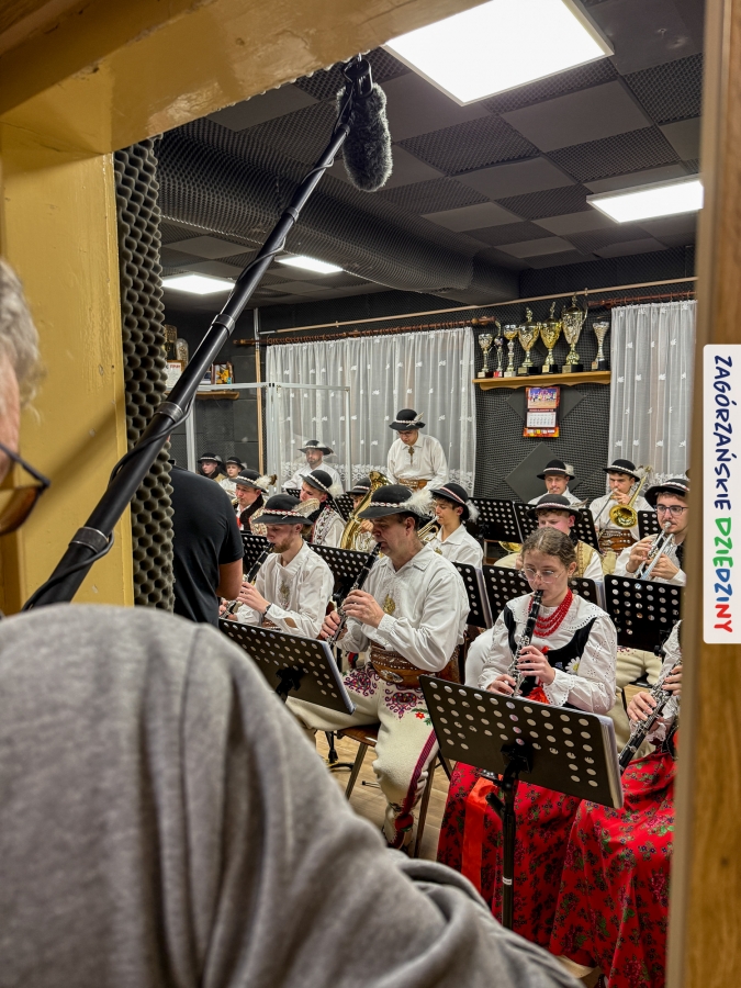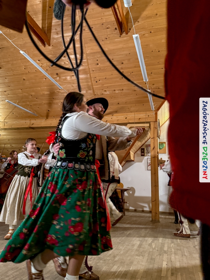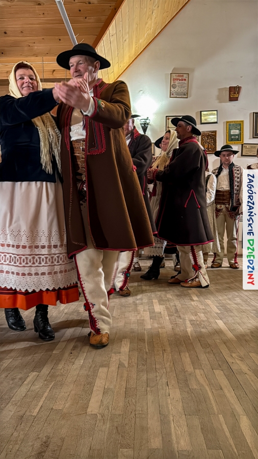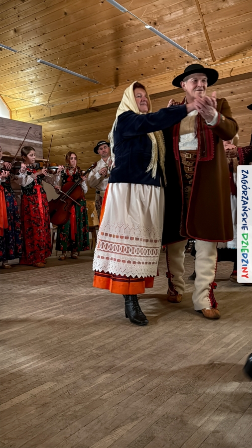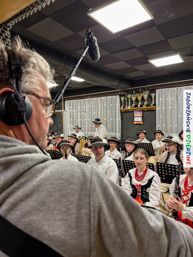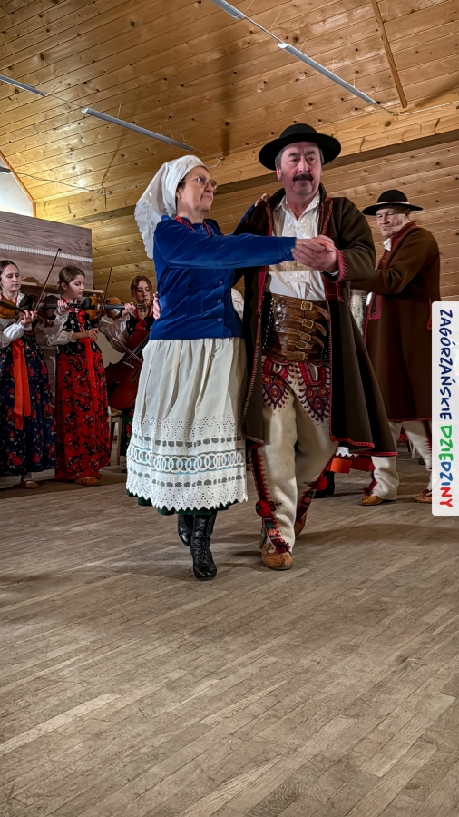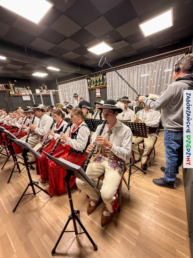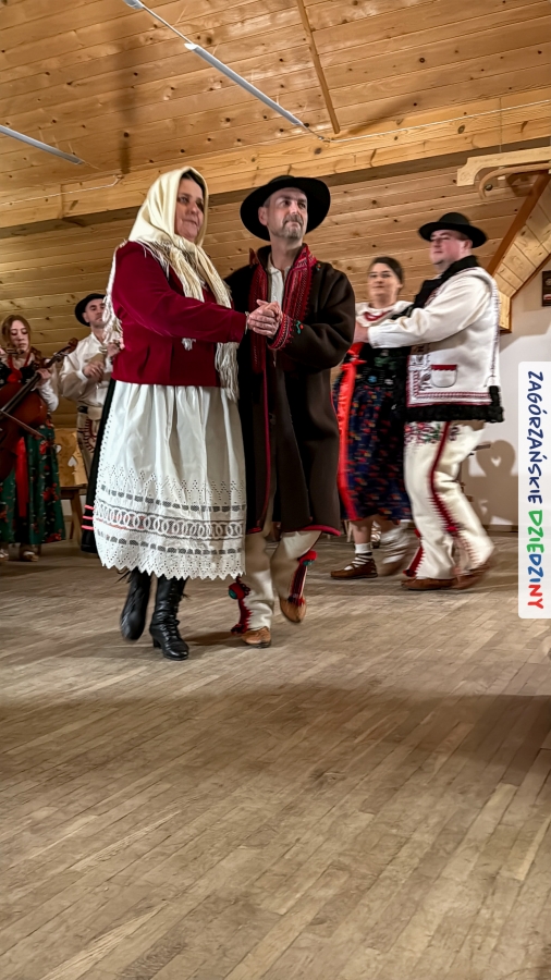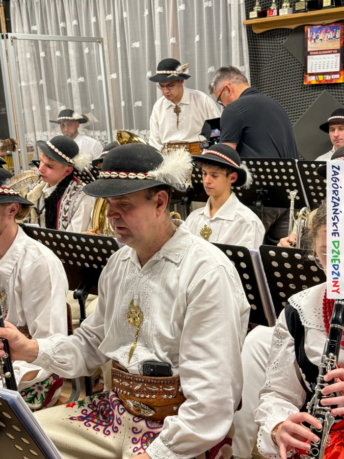 Przystanek w drodze, tym razem bez kamer, to kasinczańska Szapo ba Pizzeria. Tam gospodarze, Patrycja i Paweł Kołodziejowie, ugościli nas po królewsku, a dzielna ekipa zregenerowała nadwątlone intensywną pracą siły. Napięty plan dnia nie pozwalał na dłuższa biesiadę; w Kasinie Wielkiej czekał już bowiem na nas w swojej pracowni Rafał Nowak. Ten najbardziej znany w okolicy kuśnierz pokazał jak szyje białe, zagórzańskie serdaki i opowiedział o zdobieniu portek. Tak się nam wszystko dobrze złożyło, że od niego to tylko rzut beretem do pracowni innego, zagórzańskiego artysty, niezwykle utalentowanego w wielu dziedzinach, Adama Rusnarczyka. Ten przywitał nas muzyką jego rodzinnej kapeli (grają z nim dzieci: Justyna i Mateusz), pokazał pracownię i na naszych oczach gładził pokaźną rzeźbę. Trudno było wyjść z tej świątyni sztuki, jednak czekali już na nas Kasinianie – Zagórzanie, których zastaliśmy na piątkowej próbie. Tupnęło, furgnęło, nogi same niosły ich po parkiecie, a jak zaśpiewali „ w kosińskiej krainie” to zapewniali, że „się na Ćwilinie fijołek łozwinie”! Nie sprawdzaliśmy, czy tak się stało, bo zapadł już zmierzch, a na telewizyjną ekipę czekała kolejna muzyczna uczta – tym razem zafundowała ją Orkiestra Dęta Echo Gór z Kasinki Małej, łącząca tradycyjne stroje i melodie zagórzańskie, z nowoczesnymi aranżacjami i poważnymi utworami. Cieszył oko widok muzykującej młodzieży, a serce aż podrygiwało w takt zagórzańskiego konika…