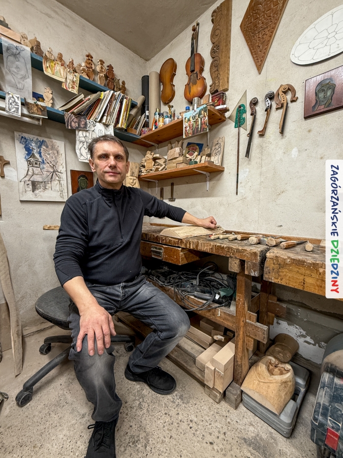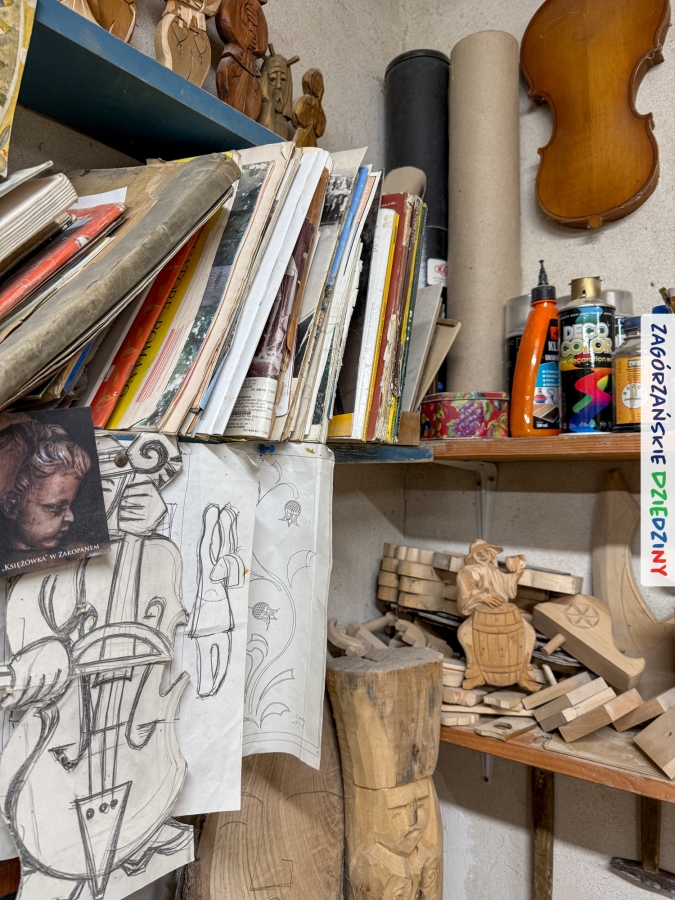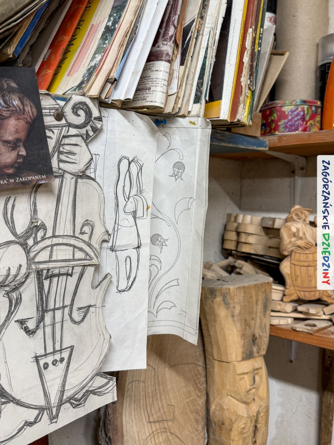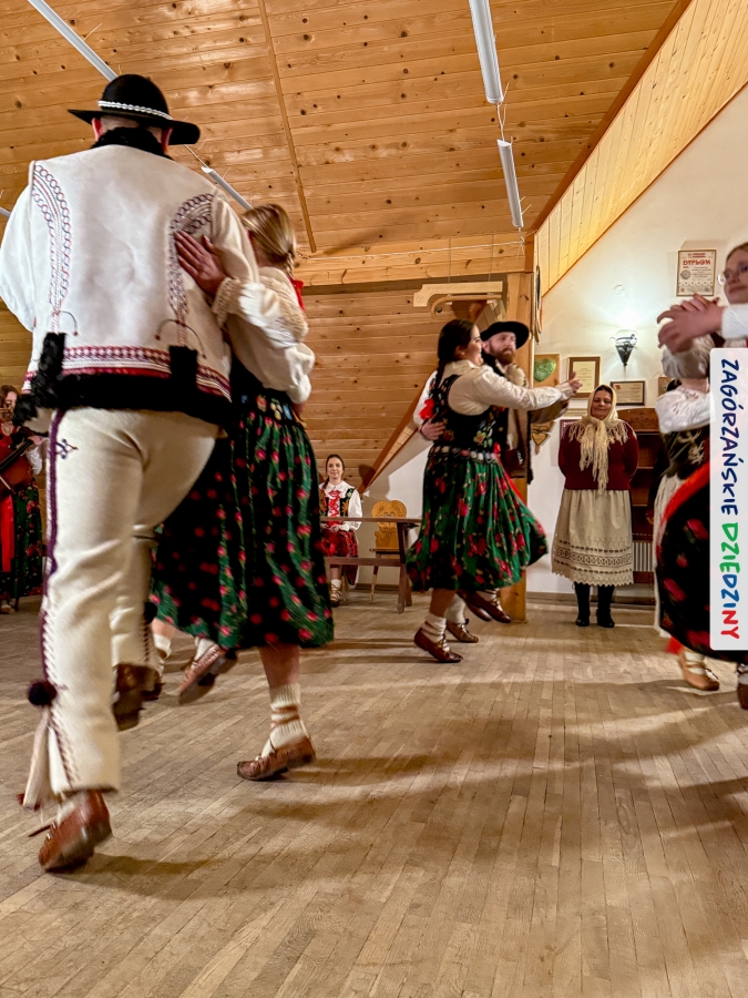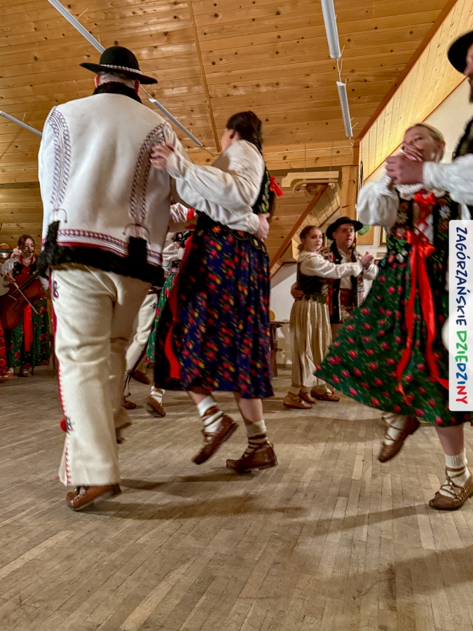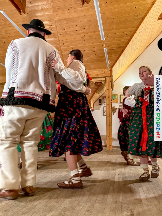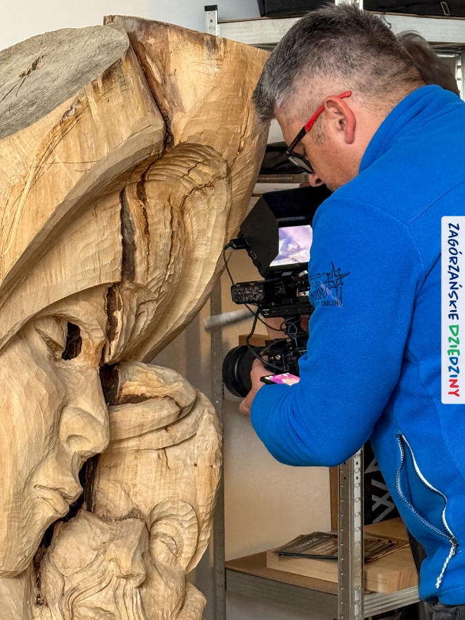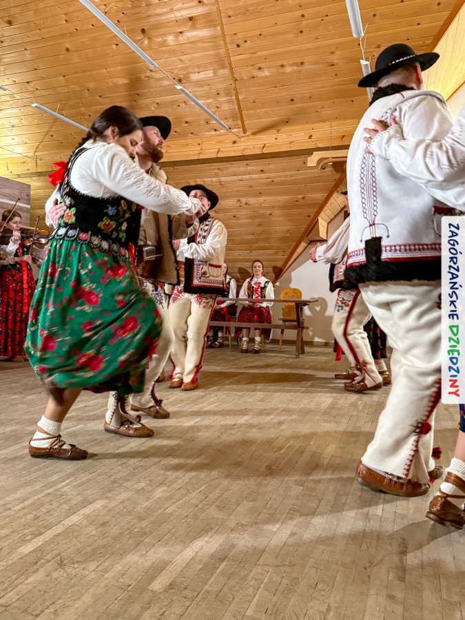Przystanek w drodze, tym razem bez kamer, to kasinczańska Szapo ba Pizzeria. Tam gospodarze, Patrycja i Paweł Kołodziejowie, ugościli nas po królewsku, a dzielna ekipa zregenerowała nadwątlone intensywną pracą siły. Napięty plan dnia nie pozwalał na dłuższa biesiadę; w Kasinie Wielkiej czekał już bowiem na nas w swojej pracowni Rafał Nowak. Ten najbardziej znany w okolicy kuśnierz pokazał jak szyje białe, zagórzańskie serdaki i opowiedział o zdobieniu portek. Tak się nam wszystko dobrze złożyło, że od niego to tylko rzut beretem do pracowni innego, zagórzańskiego artysty, niezwykle utalentowanego w wielu dziedzinach, Adama Rusnarczyka. Ten przywitał nas muzyką jego rodzinnej kapeli (grają z nim dzieci: Justyna i Mateusz), pokazał pracownię i na naszych oczach gładził pokaźną rzeźbę. Trudno było wyjść z tej świątyni sztuki, jednak czekali już na nas Kasinianie – Zagórzanie, których zastaliśmy na piątkowej próbie. Tupnęło, furgnęło, nogi same niosły ich po parkiecie, a jak zaśpiewali „ w kosińskiej krainie” to zapewniali, że „się na Ćwilinie fijołek łozwinie”! Nie sprawdzaliśmy, czy tak się stało, bo zapadł już zmierzch, a na telewizyjną ekipę czekała kolejna muzyczna uczta – tym razem zafundowała ją Orkiestra Dęta Echo Gór z Kasinki Małej, łącząca tradycyjne stroje i melodie zagórzańskie, z nowoczesnymi aranżacjami i poważnymi utworami. Cieszył oko widok muzykującej młodzieży, a serce aż podrygiwało w takt zagórzańskiego konika…