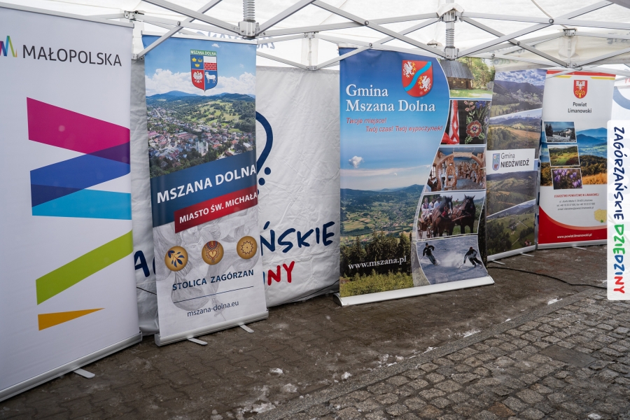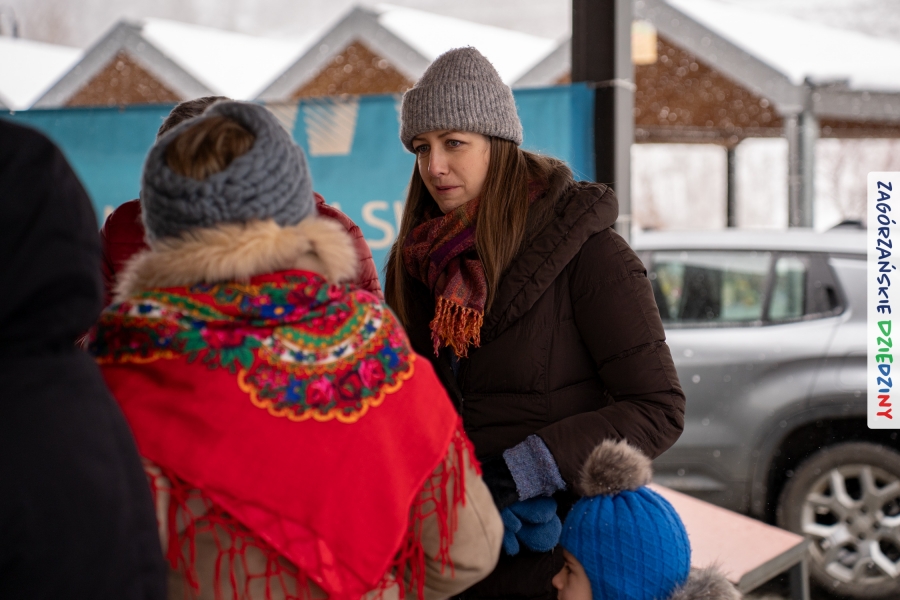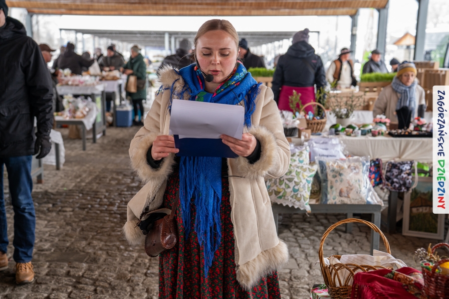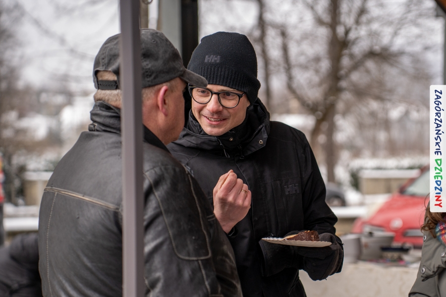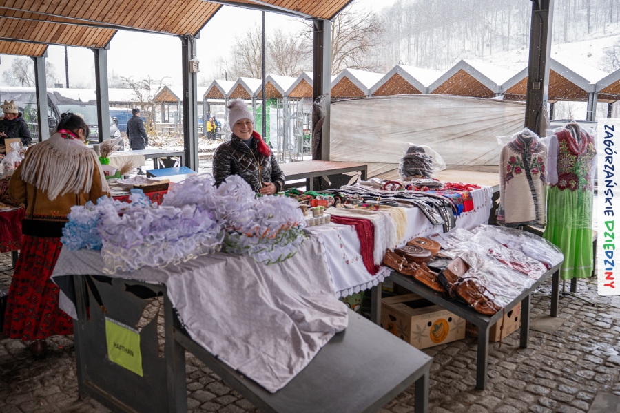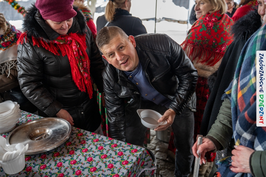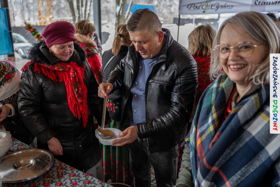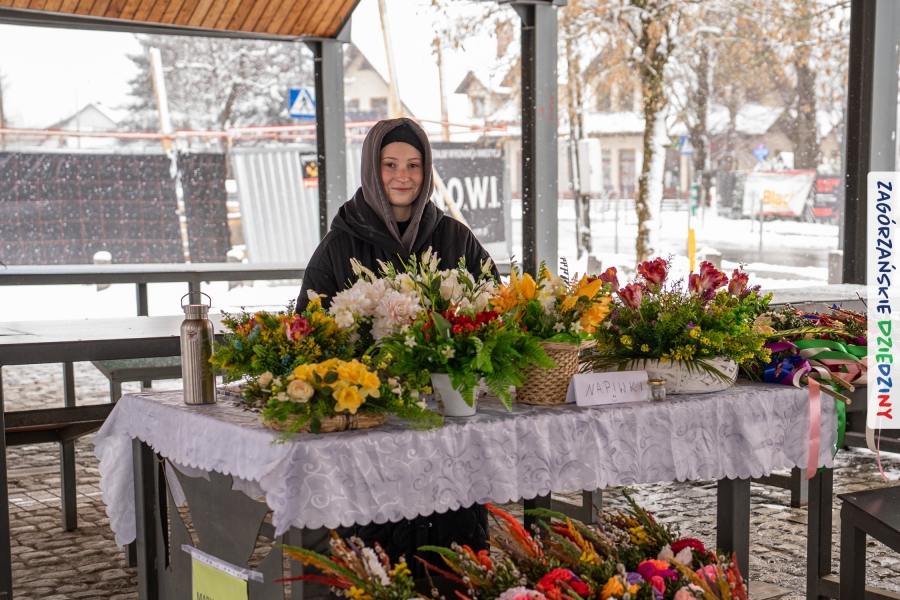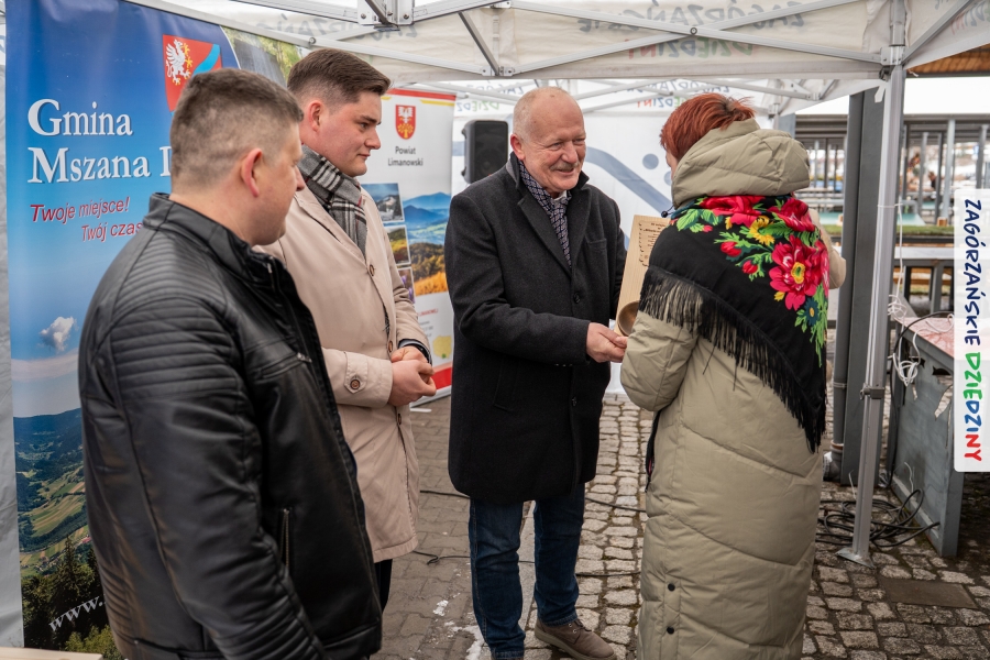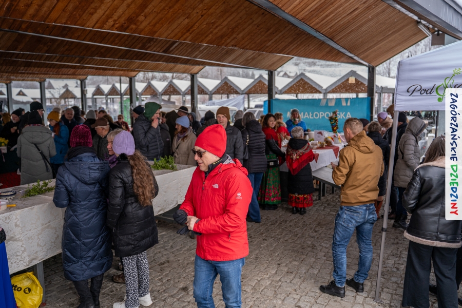Nie ma jednak co narzekać, tylko działać, bo na tym opiera się siła wspólnej organizacji – są ludzie, jest moc, a przede wszystkim dobra energia! Wtedy widzimy same pozytywy, bo, przyznajcie sami, było zjawiskowo! Wystawcy zapełnili stoły swoimi wyrobami, pojawiły się nowe twarze i nowe produkty, co więcej, nawet grono posiadaczy znaku marki Zagórzańskie Dziedziny nam się poszerzyło o kolejne lokalne propozycje. W tej grppie mamy także współorganizatorów wydarzenia odpowiedzialnych za kulinarną stronę jarmarku, czyli Stowarzyszenie Miłośników Kultury Góralskiej „Pod Cyrlom” z Olszówki. To właśnie Dorota Kościelniak, jego prezeska, poprosiła włodarzy naszych zagórzańskich gmin o oficjalne otwarcie IV Zagórzańskiego Jarmarku Wielkanocnego. Zarówno Burmistrz Miasta Mszana Dolna, Agnieszka Orzeł, jak i Wacław Zoń, Zastępca Wójta Gminy Mszana Dolna, życzyli wszystkim udanego jarmarku, pomimo zimowej aury.