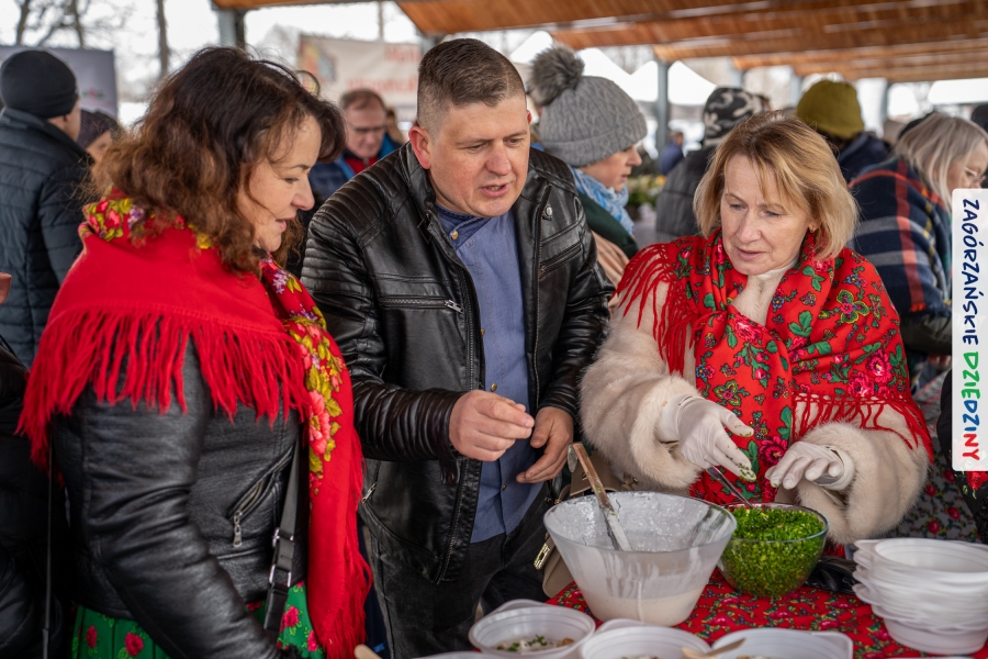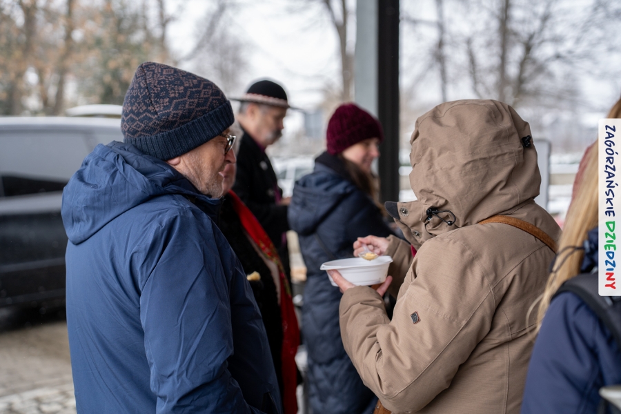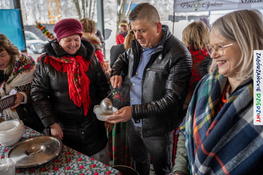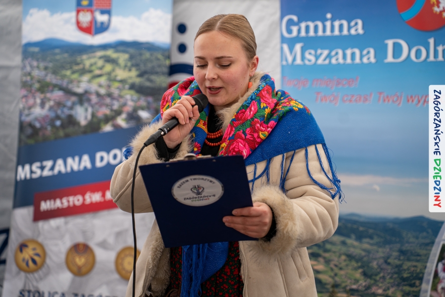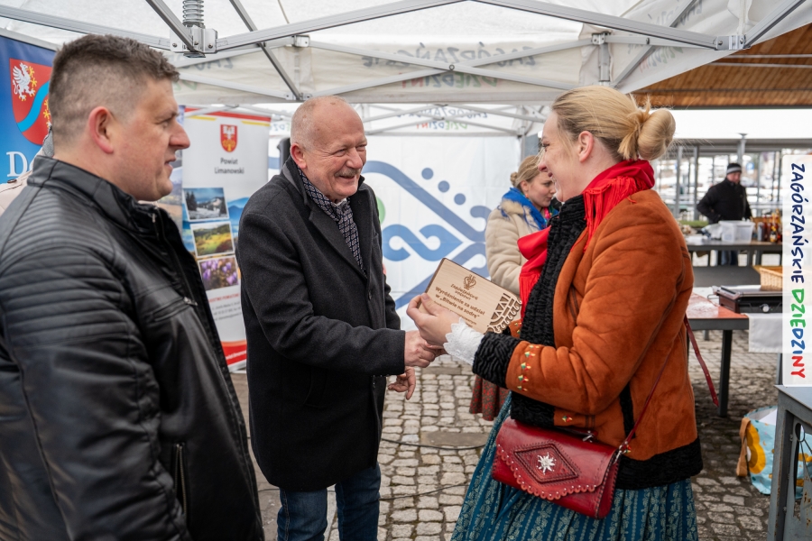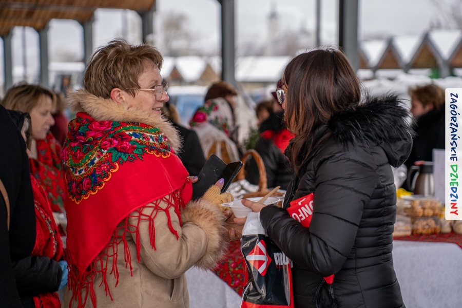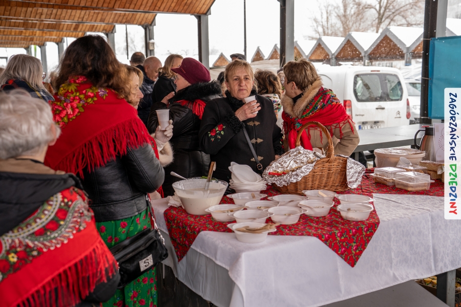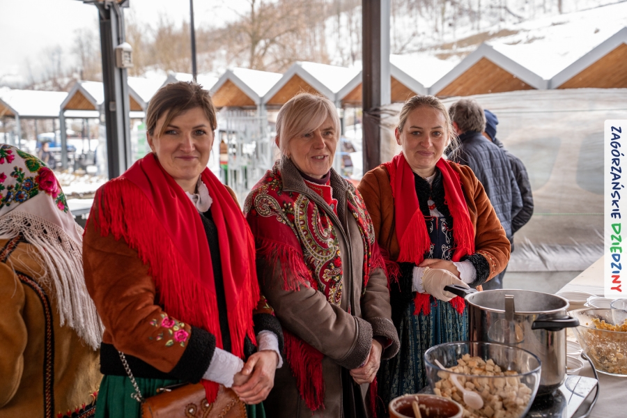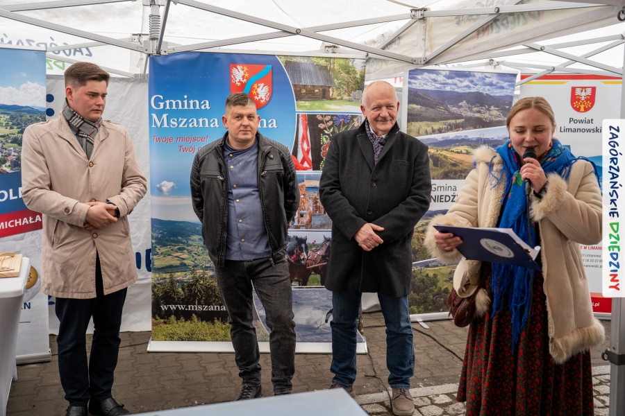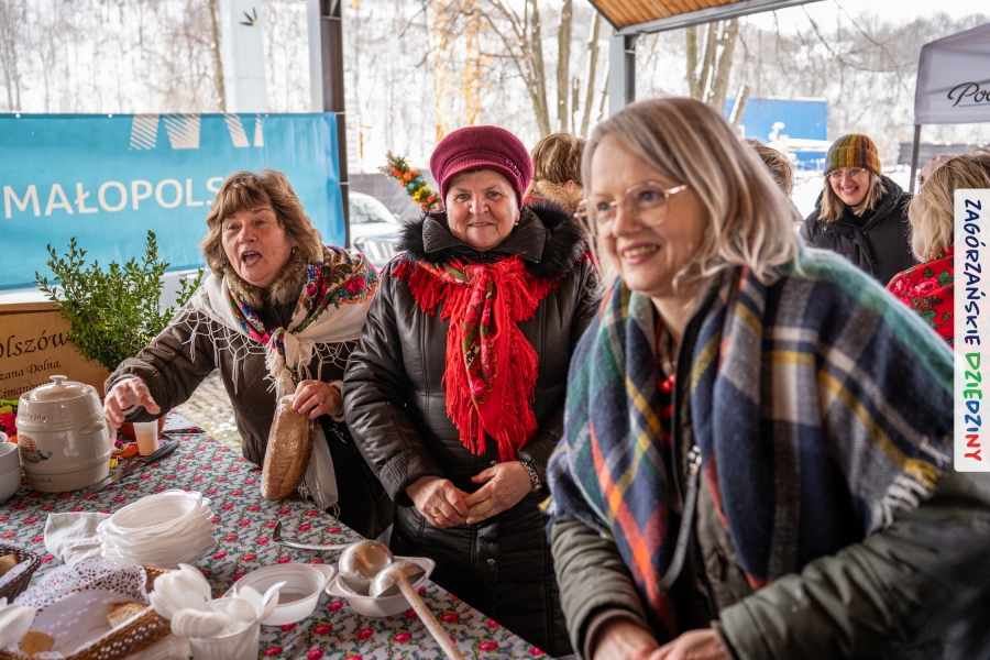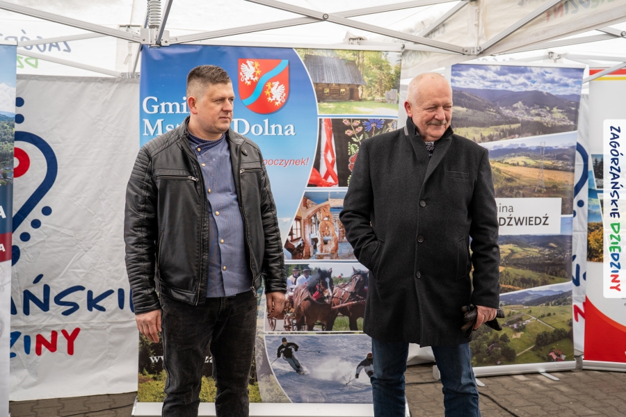 Nie ma jednak co narzekać, tylko działać, bo na tym opiera się siła wspólnej organizacji – są ludzie, jest moc, a przede wszystkim dobra energia! Wtedy widzimy same pozytywy, bo, przyznajcie sami, było zjawiskowo! Wystawcy zapełnili stoły swoimi wyrobami, pojawiły się nowe twarze i nowe produkty, co więcej, nawet grono posiadaczy znaku marki Zagórzańskie Dziedziny nam się poszerzyło o kolejne lokalne propozycje. W tej grppie mamy także współorganizatorów wydarzenia odpowiedzialnych za kulinarną stronę jarmarku, czyli Stowarzyszenie Miłośników Kultury Góralskiej „Pod Cyrlom” z Olszówki. To właśnie Dorota Kościelniak, jego prezeska, poprosiła włodarzy naszych zagórzańskich gmin o oficjalne otwarcie IV Zagórzańskiego Jarmarku Wielkanocnego. Zarówno Burmistrz Miasta Mszana Dolna, Agnieszka Orzeł, jak i Wacław Zoń, Zastępca Wójta Gminy Mszana Dolna, życzyli wszystkim udanego jarmarku, pomimo zimowej aury.