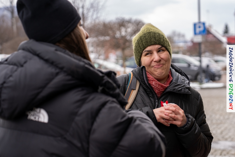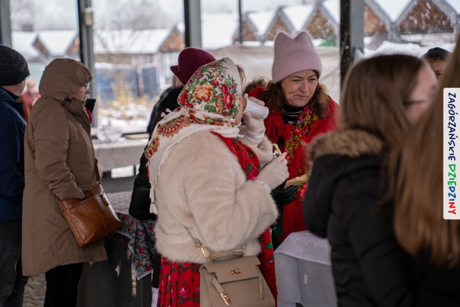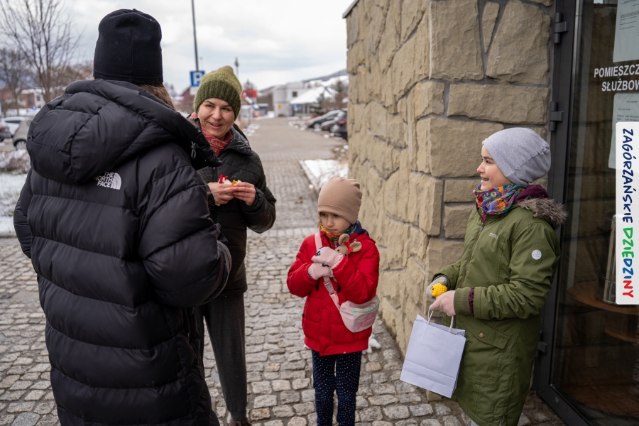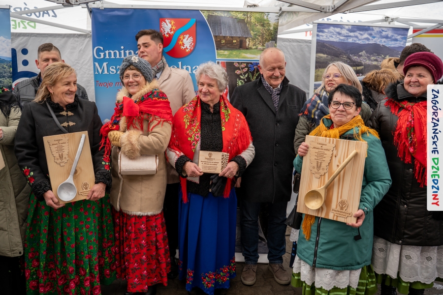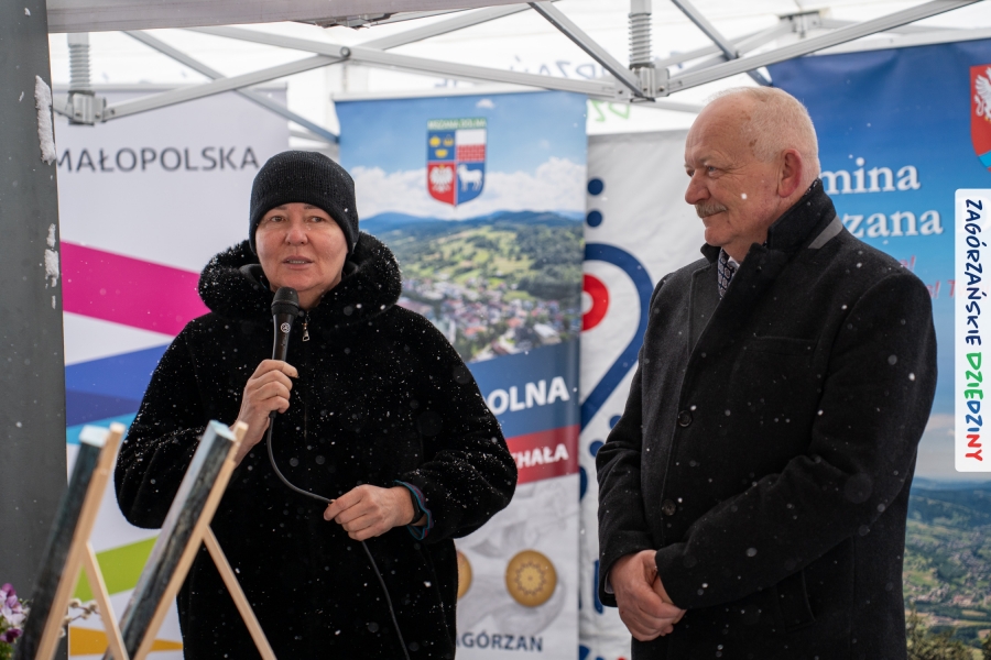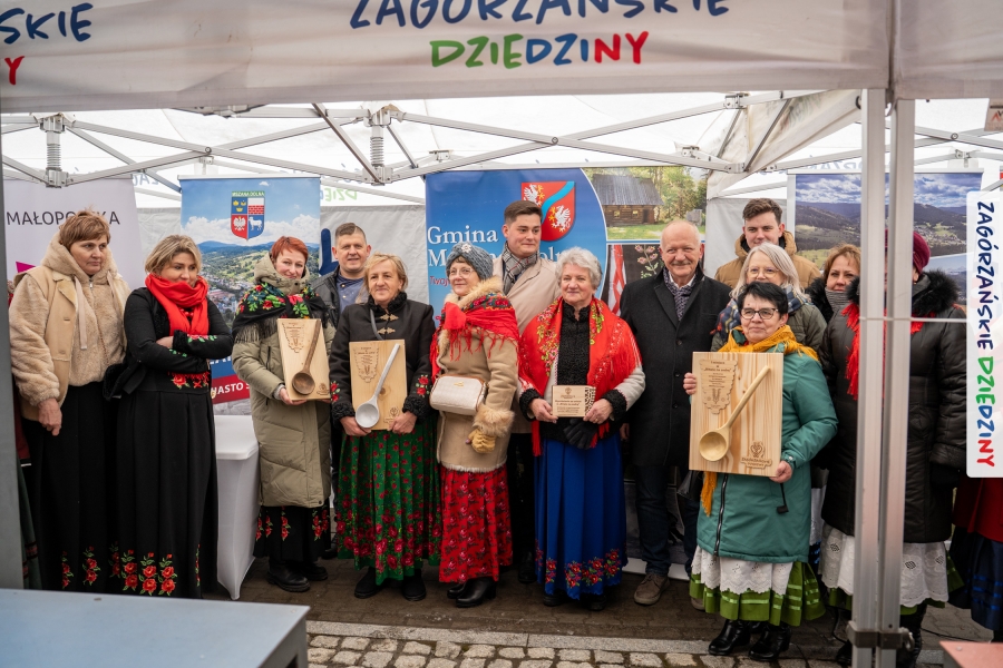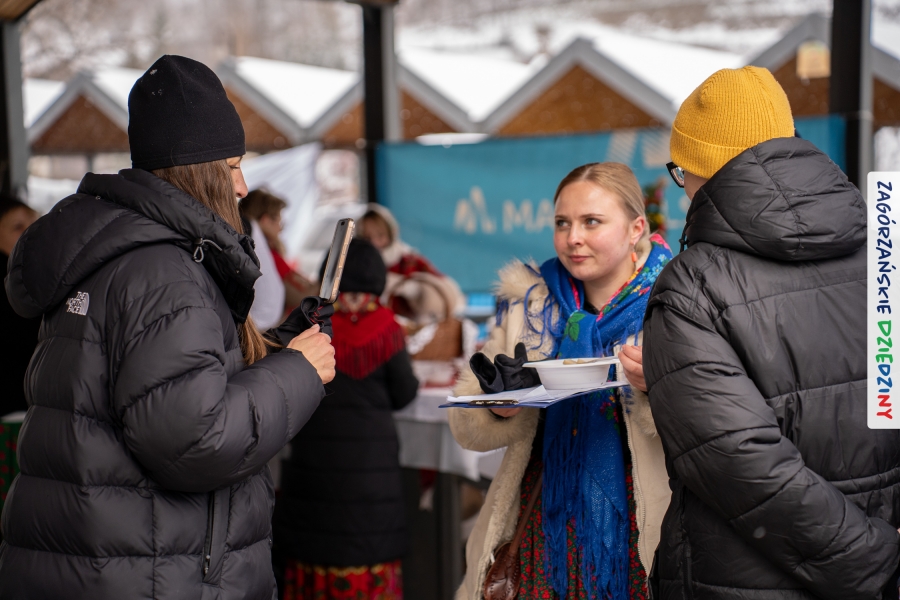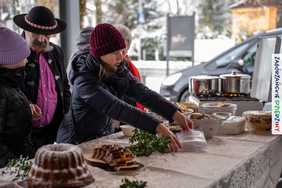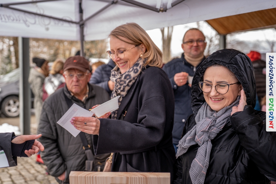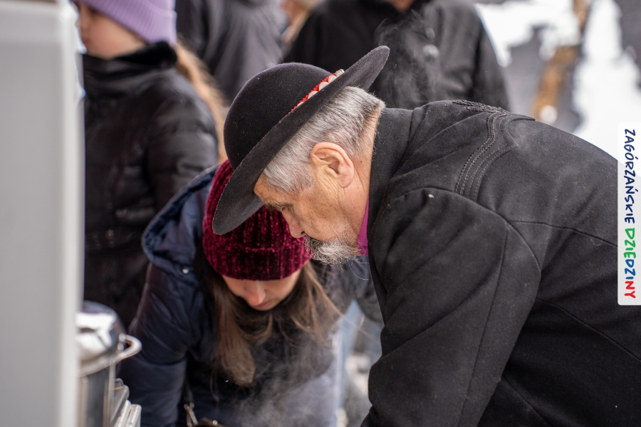 Nie ma jednak co narzekać, tylko działać, bo na tym opiera się siła wspólnej organizacji – są ludzie, jest moc, a przede wszystkim dobra energia! Wtedy widzimy same pozytywy, bo, przyznajcie sami, było zjawiskowo! Wystawcy zapełnili stoły swoimi wyrobami, pojawiły się nowe twarze i nowe produkty, co więcej, nawet grono posiadaczy znaku marki Zagórzańskie Dziedziny nam się poszerzyło o kolejne lokalne propozycje. W tej grppie mamy także współorganizatorów wydarzenia odpowiedzialnych za kulinarną stronę jarmarku, czyli Stowarzyszenie Miłośników Kultury Góralskiej „Pod Cyrlom” z Olszówki. To właśnie Dorota Kościelniak, jego prezeska, poprosiła włodarzy naszych zagórzańskich gmin o oficjalne otwarcie IV Zagórzańskiego Jarmarku Wielkanocnego. Zarówno Burmistrz Miasta Mszana Dolna, Agnieszka Orzeł, jak i Wacław Zoń, Zastępca Wójta Gminy Mszana Dolna, życzyli wszystkim udanego jarmarku, pomimo zimowej aury.