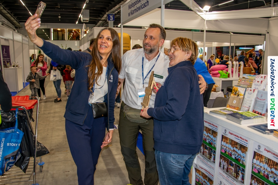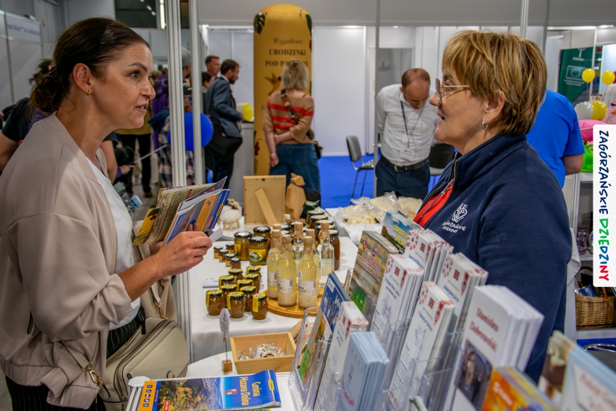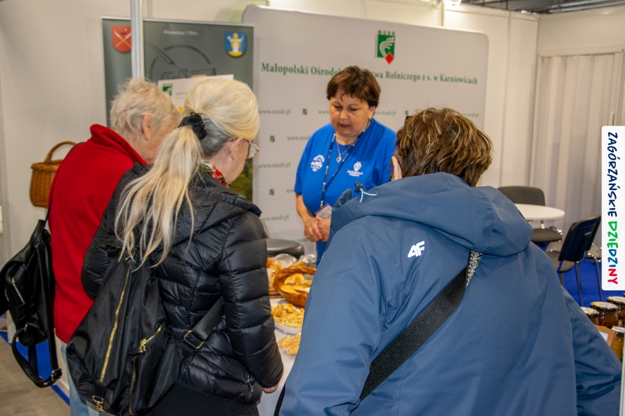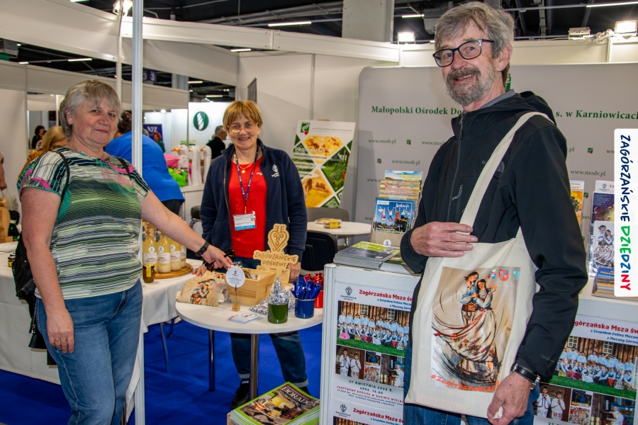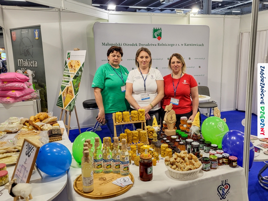 W kieleckiej hali targowej odbywały się jednocześnie inne wydarzenia: Expo2Bee skierowane do branży pszczelarskiej czy Camper & Travel. Również ich uczestnicy zwrócili uwagę na ofertę, którą prezentowały Zagórzanki. Odwiedził nas m. in. właściciel „Barciak – pasieka beskidzka”, a zarazem przedstawiciel Lasów Państwowych, Nadleśnictwa Krzeszowice, z którym poznaliśmy się w… Radocynie, podczas prezentacji marki! Nasza opowieść o sześciu schowanych w Zagórzańskich Dziedzinach skarbach zaciekawiła też przemiłą rodzinkę prowadzącą profil w SM Polskicaravaning – wydawnictwo – kampery – lifestyle. Dobrze było współpracować z przedstawicielami Małopolskiego Ośrodka Doradztwa Rolniczego w Karniowicach, z Anną Tobiasz na czele. Jak zwykle, na wysokości zadania stanęły Zagórzanki: Lucyna Pazdur (Baza Lubogoszcz), Monika Kubik (Zagórzańska Tradycja – Sery Podpuszczkowe), Ewelina Jurkowska (Młodzieżowy Ośrodek Rekolekcyjno – Rekreacyjny na Śnieżnicy) i Monika Woźniak (Pasieka u Piotra Woźniaka z Koniny), angażując się w promocję nie tylko swoich gospodarstw, czy obiektów turystycznych, ale promując wszystkie obiekty z pogranicza Beskidu Wyspowego i Gorców oraz „markowe” miody z Pasieki Przygórze nr 248 Józefa Bierowca i produkty z mszańskiej octowni, również ze Znakiem Promocyjnym Zagórzańskie Dziedziny.