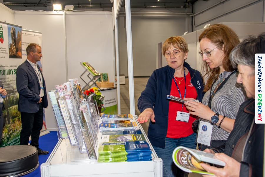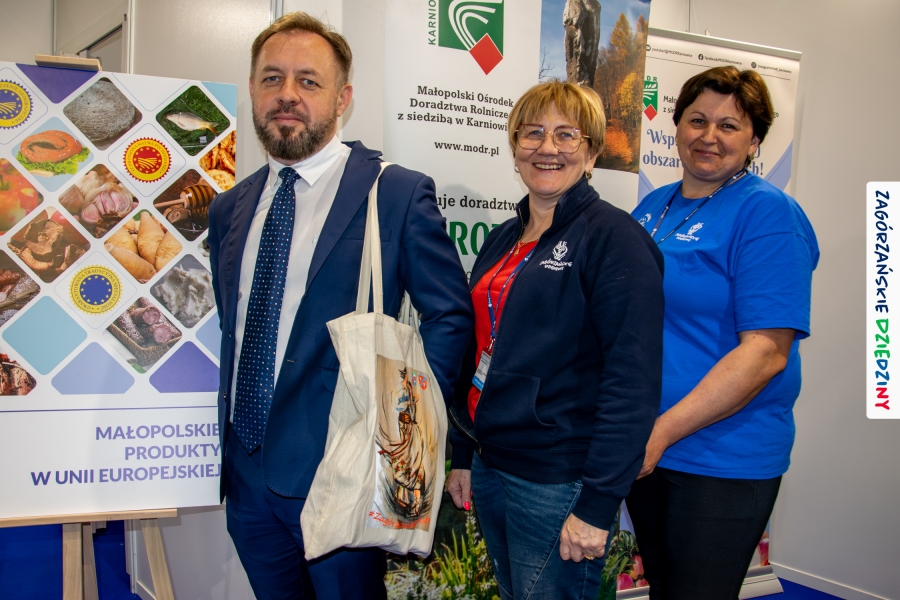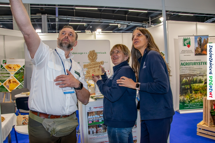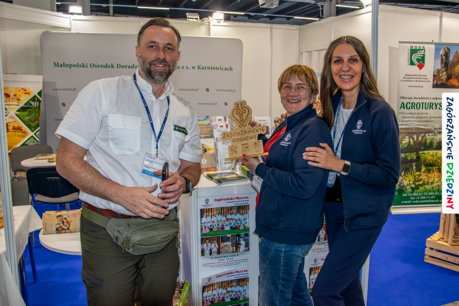 Nie pierwszy to raz udowodniliśmy, że sprawy niemożliwe załatwiamy od ręki, więc i tym razem wszystko szybko udało się „ogarnąć”. Tematem przewodnim targów SlowTravel - Targi Turystyki Zdrowotnej w Kielcach była agroturystyka i zdrowa żywność. Nie mogło więc zabraknąć tam Zagórzańskich Dziedzin ze swoją markową ofertą, która wpisuje się w ten temat doskonale! Zaproszenie do wspólnej promocji otrzymaliśmy od Małopolskiego Ośrodka Doradztwa Rolniczego w Karniowicach oraz Ministerstwa Rolnictwa i Rozwoju Wsi. Z obiema instytucjami skutecznie współpracowaliśmy już wcześniej, decyzja więc nie mogła być inna. I okazała się słuszna! Przez cały weekend rozmawialiśmy z mieszkańcami całej Polski o tym, jak dobrze wypocząć tam, gdzie Beskid Wyspowy wita się z Gorcami; proponowaliśmy usługi świadczone przez gospodarstwa agroturystyczne i całą branżę działającą w regionie. Wszak turystyka wiejska to pojemne pojęcie! Na hasło: Beskid Wyspowy, Gorce, Mszana Dolna, Kasina Wielka, Lubomierz… na twarzach naszych gości pojawiał się uśmiech! Jedni bywają, inni bywali, a jeszcze inni słyszeli… Niektórzy dopytywali gdzie dokładnie to jest. Niezmiennie zachwycały wszystkich opowieści o bogatej ofercie, którą wypracowaliśmy wraz z naszymi, zagórzańskimi, rolnikami i innymi przedstawicielami branży turystycznej i okołoturystycznej. Nie tylko noclegi i góry, ale też dobre, zdrowe jedzenie, warsztaty, questy, czy wydarzenia budziły zainteresowanie naszych gości. Nasz autorski sposób „zarzucania przynęty” wzbudzał zachwyt i powodował ciągły ruch na stoisku. Nie jest dla nas niespodzianką, że po markowe, gorczańskie sery podpuszczkowe, do Moniki Kubik przez dwa dni tworzyły się kolejki, a opowieść o praoccie mszańskim zadziwiała i zachwycała! Skutecznie zainteresowaliśmy też naszą okolicą Czesława Siekierskiego, Ministra Rolnictwa i Rozwoju Wsi oraz Przemysława Saltarskiego, Dyrektora Departamentu Oświaty i Polityki Społecznej w tym ministerstwie. Odwiedzili nas branżowi dziennikarze, a zdjęcia ze stoiska pojawiły się m. in. na profilu Targów Kielce: https://www.facebook.com/share/p/16TeREgGXi/?mibextid=wwXIfr; MODR: https://www.facebook.com/share/p/15aKodLk3j/?mibextid=wwXIfr oraz Barciak – Pasieka Beskidzka: https://www.facebook.com/share/r/16H7viuJ6e/?mibextid=wwXIfr.