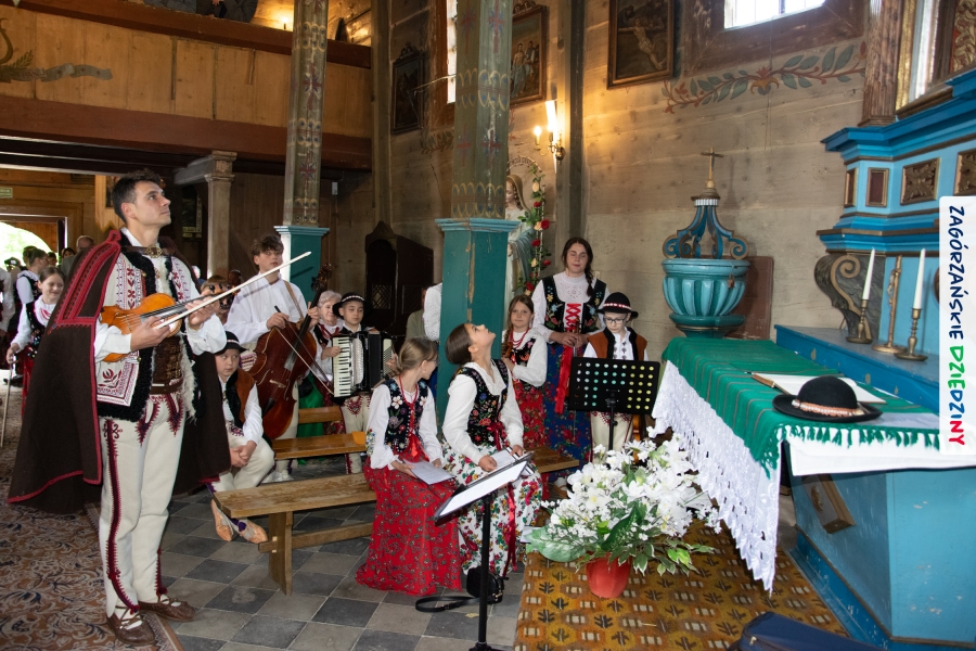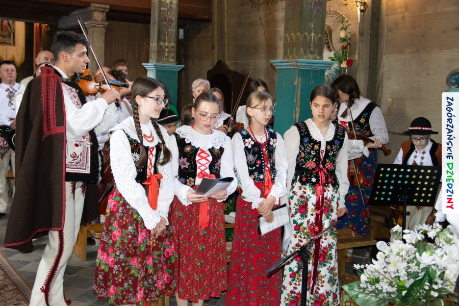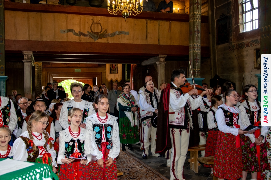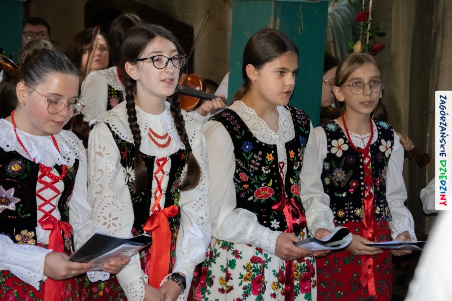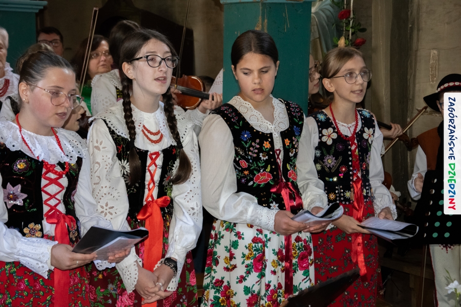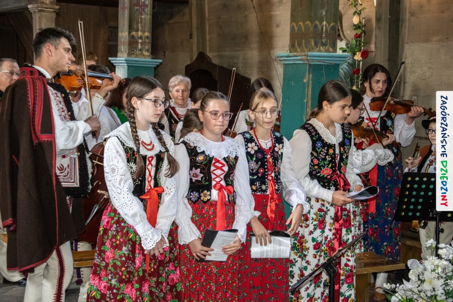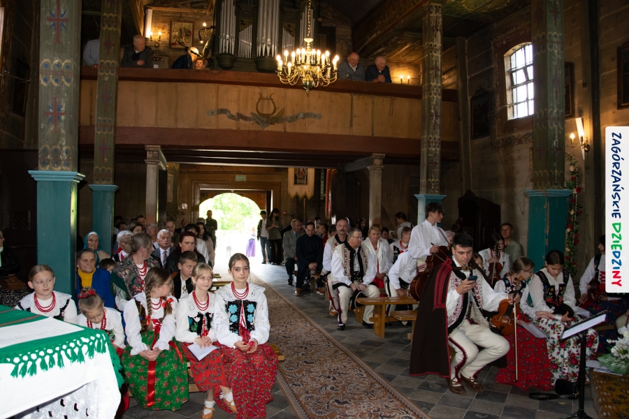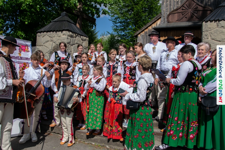 Po zakończeniu nabożeństwa, na placu kościelnym, członkowie zespołu zaprezentowali krótki program artystyczny, który przyciągnął uwagę publiczności. Można było podziwiać piękne głosy i tradycyjne melodie oraz ubranych odświętnie Zagórzan.
