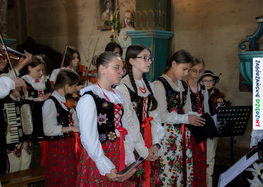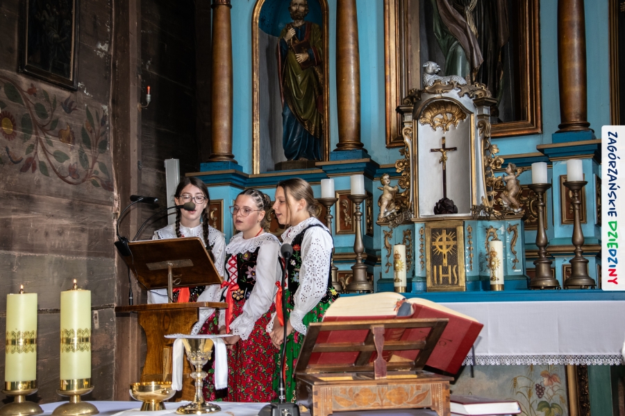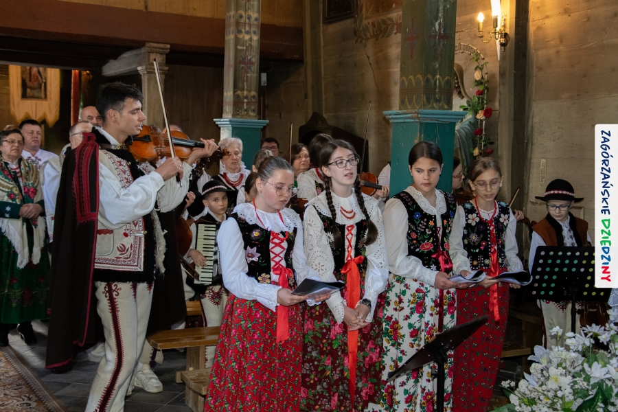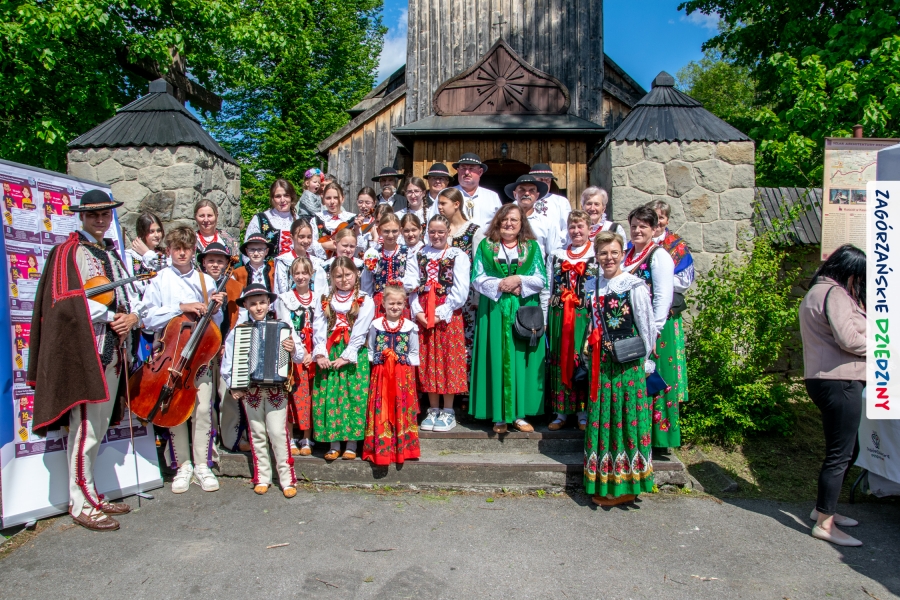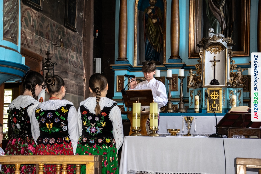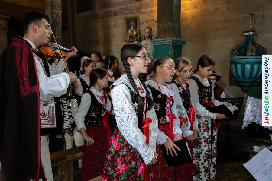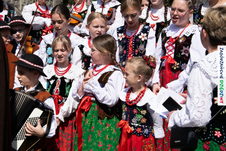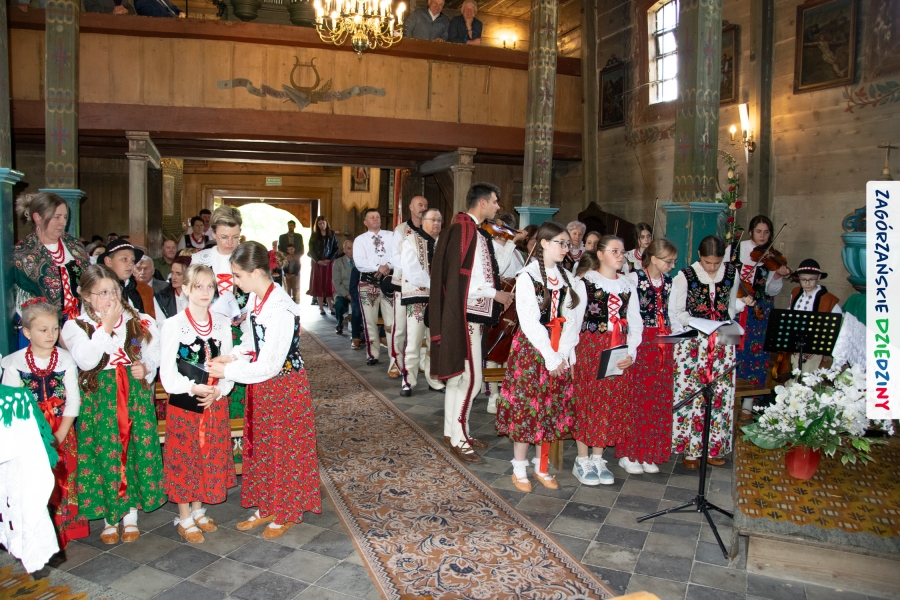 Po zakończeniu nabożeństwa, na placu kościelnym, członkowie zespołu zaprezentowali krótki program artystyczny, który przyciągnął uwagę publiczności. Można było podziwiać piękne głosy i tradycyjne melodie oraz ubranych odświętnie Zagórzan.