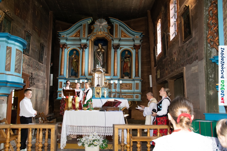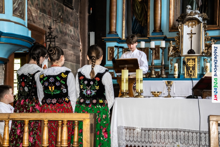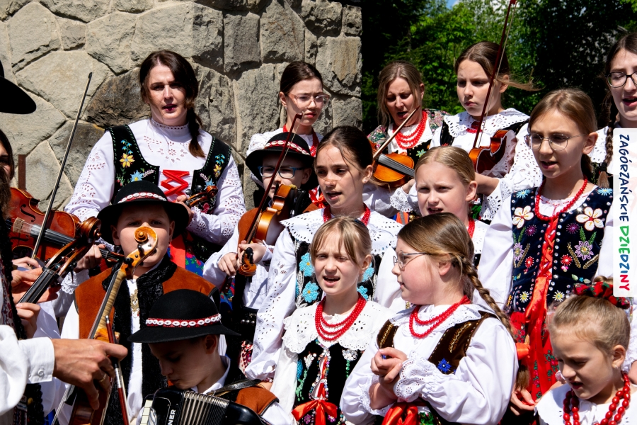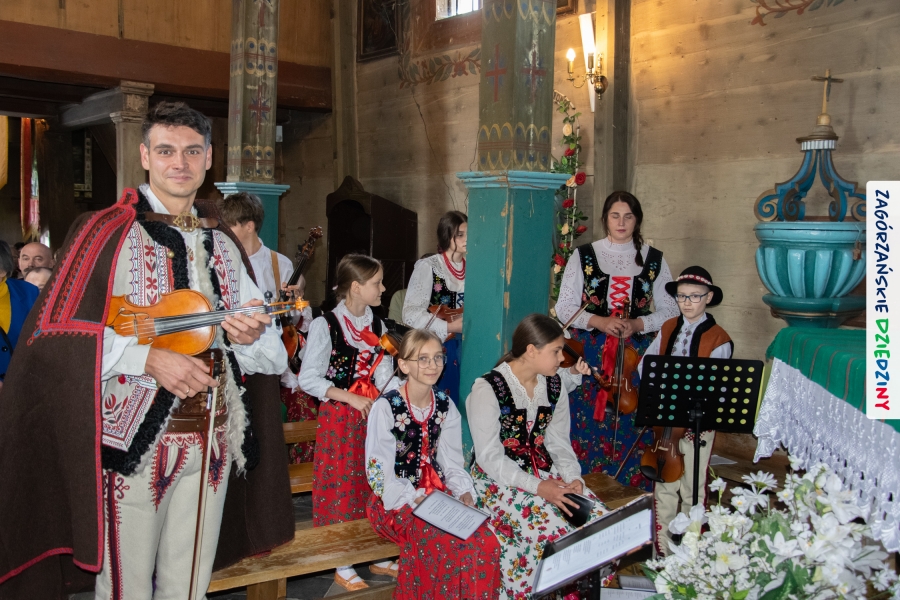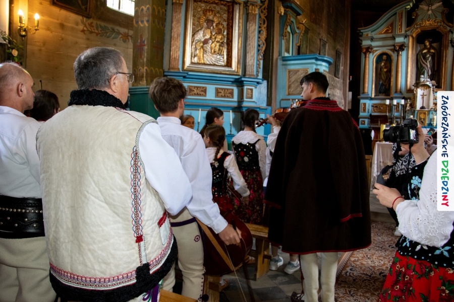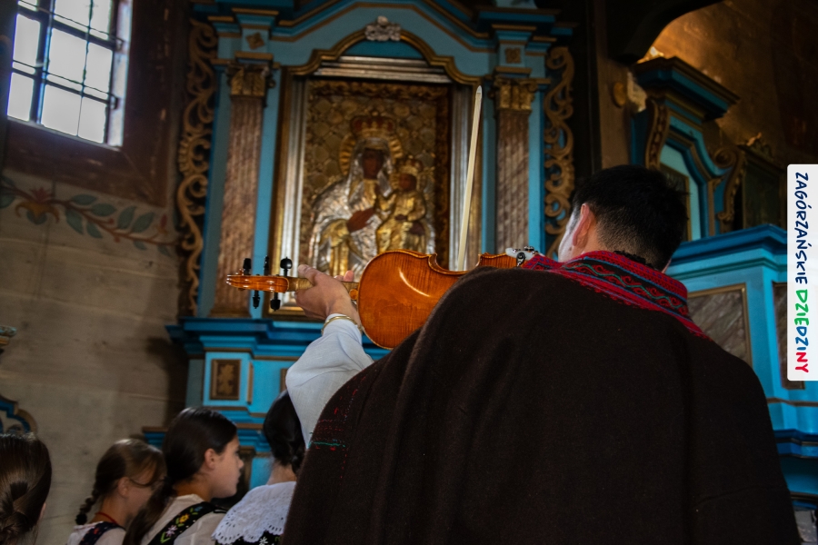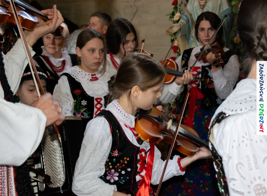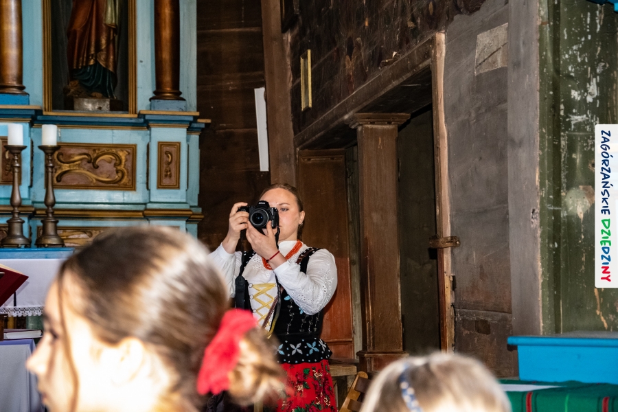 Po zakończeniu nabożeństwa, na placu kościelnym, członkowie zespołu zaprezentowali krótki program artystyczny, który przyciągnął uwagę publiczności. Można było podziwiać piękne głosy i tradycyjne melodie oraz ubranych odświętnie Zagórzan.