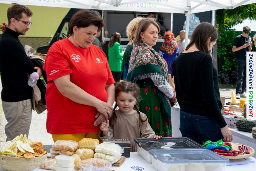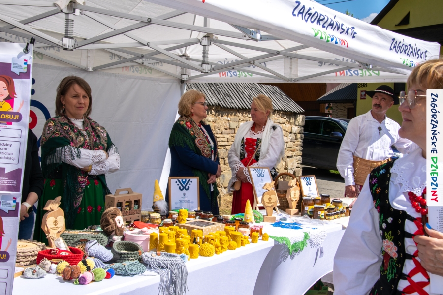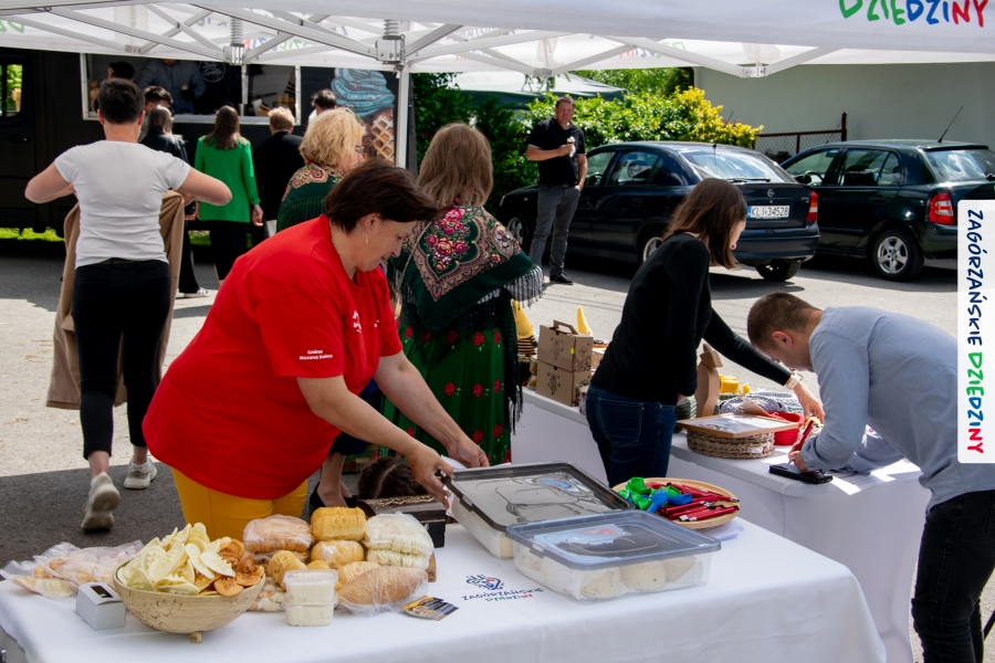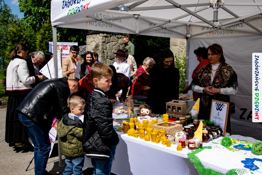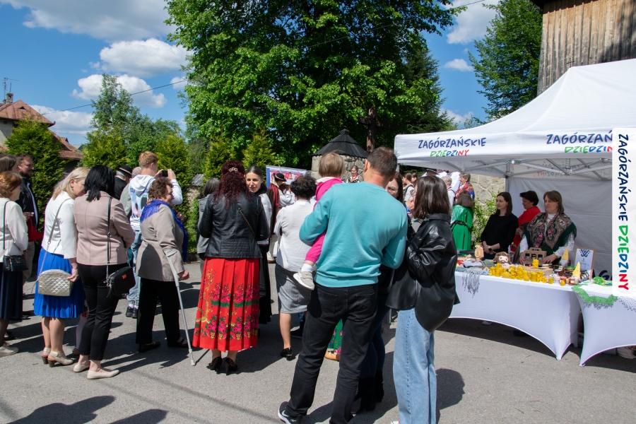 Nie zabrakło również regionalnego kiermaszu, zorganizowanego przez partnerów Zagórzańskich Dziedzin, na którym można było nabyć lokalne produkty – od wyrobów rękodzielniczych (koronki Zofia Piętoń) po smakołyki przygotowane według tradycyjnych receptur (Gorczańskie sery od Moniki Kubik vel Zagórzańska Tradycja - Sery Podpuszczkowe i miody z Pasieka u Piotra Woźniaka z Koniny oraz Pasieki Przygórze nr 248 prowadzonej przez Józefa Bierowca), a także przepysznych lodów od Lody i Spółka.