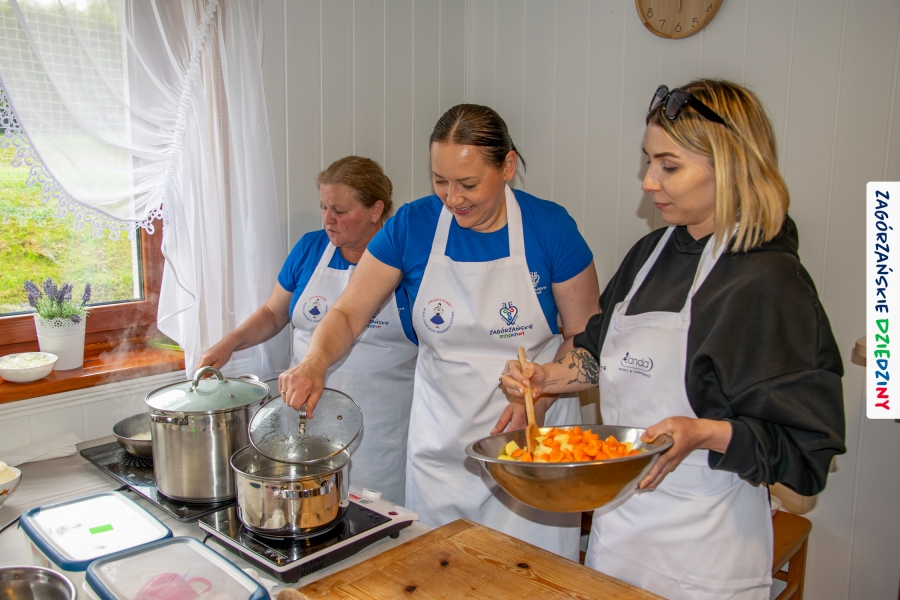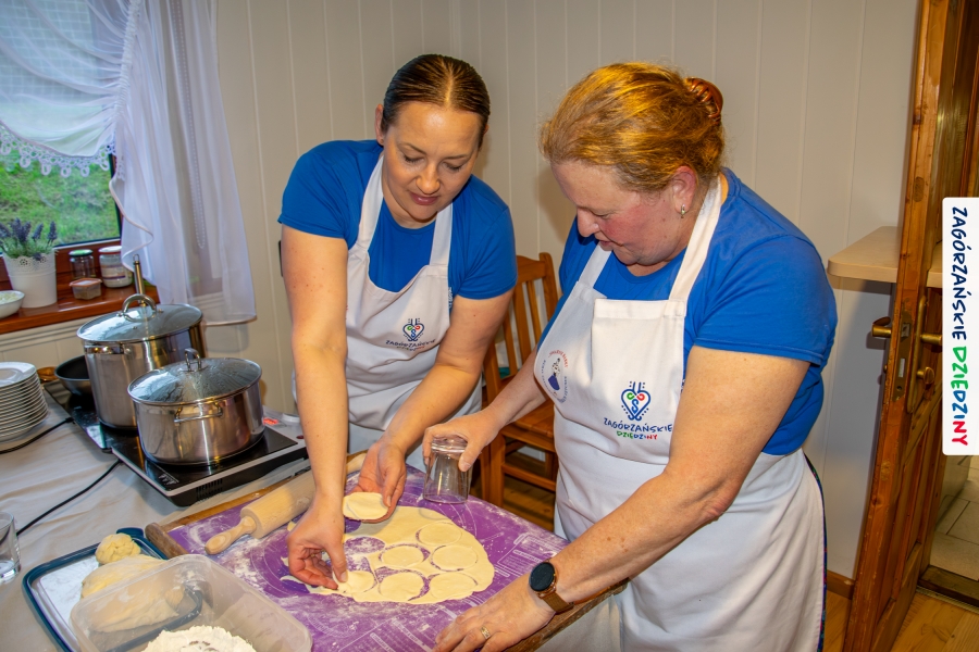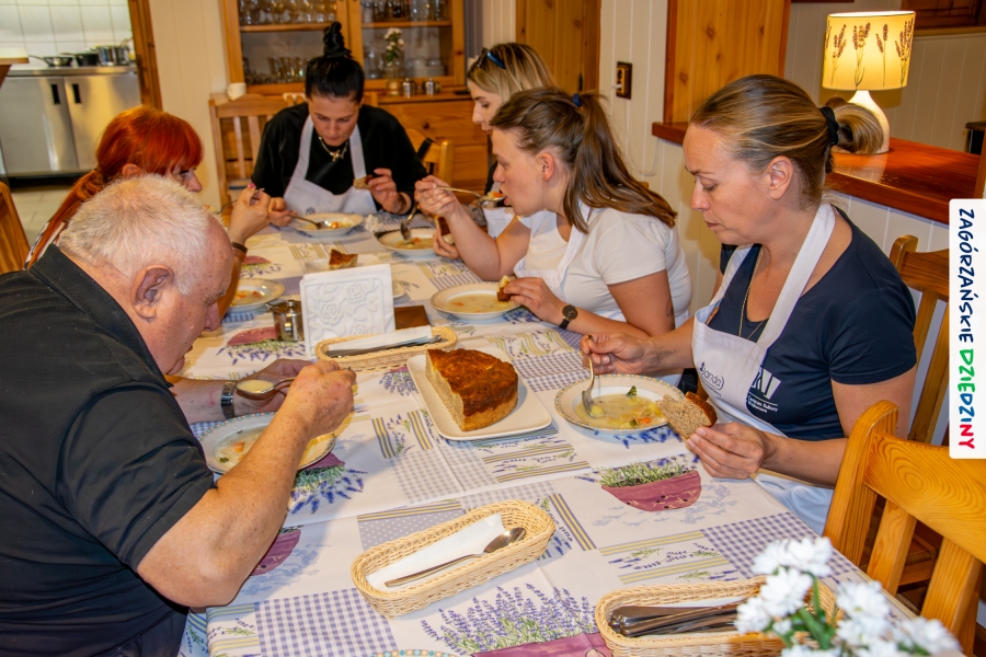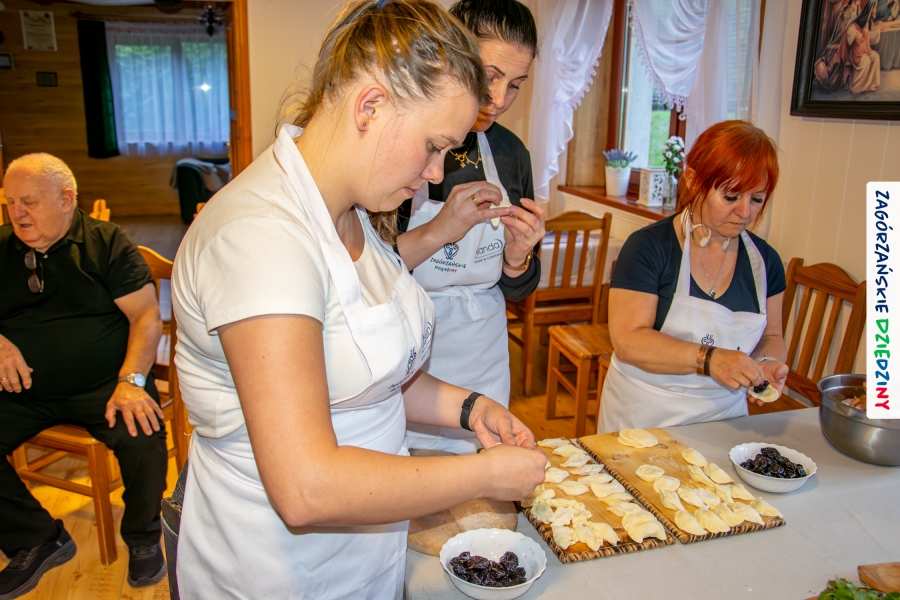 Pomysł spotkania w gronie zainteresowanych tematem osób zrodził się już w lutym, kiedy to Pani Dyrektor (a zarazem Radna Powiatu Wejherowskiego) razem z Wojciechem Kuzielem, Radnym kaszubskiej Gminy Wejherowo przyjechali na pierwszą wizytę do Gminy Mszana Dolna. Rozmawiano wówczas o współpracy tych dwóch odległych od siebie samorządów. Goście Zagórzan skorzystali z kilku atrakcji przygotowanych przez gospodarzy. Śmiało można powiedzieć, że Zagórzanie trafili do serc Kaszubów przez… żołądek. Podczas warsztatów „Zagórzańskie smaki” prowadzonych przez Śwarne Babki z KGW Łętowe, wyróżnionych Znakiem Promocyjnym Zagórzańskie Dziedziny, rozwiązała się bowiem dyskusja na temat Zagórzańskich Dziedzin. Przy degustacji potraw, przygotowanych podczas zajęć praktycznych, wywiązała się rozmowa na ten temat. Nie trzeba było długo czekać, żeby goście znad morza wybrali się ponownie w Beskid Wyspowy, aby wziąć udział w prezentacji markowych działań. Panie z BiCK spotkały się z Mirosławem Cichorzem, Wójtem Gminy Mszana Dolna oraz Wacławem Zoniem, jego Zastępcą. Wysłuchały długiej i szczegółowej prelekcji na temat procesu budowy zagórzańskiej marki lokalnej. Wykład poparto praktycznymi przykładami sposobu znakowania produktów, usług i inicjatyw ściśle związanych z Regionem Zagórzańskim oraz funkcjonowaniem szerokiej oferty Zagórzańskich Dziedzin. Goszczące u Zagórzan Kaszubianki zapoznały się m. in. z ofertą Janda Resort & Conference, dopytały o korzyści płynące ze współpracy pod marką lokalną oraz te wynikające z przyznanego ofercie ośrodka Znaku Promocyjnego Zagórzańskie Dziedziny. Podczas pobytu w Ośrodku Edukacyjnym Gorczańskiego Parku Narodowego poznały chronione przez tę instytucję dziedzictwo przyrodnicze Górali Zagórzańskich, które stanowi jeden z filarów markowych działań. Na trasie markowych miejsc, które odwiedziły, nie zabrakło nowego obiektu, Folwarku Starej Winiarni, który w tym roku otrzymał swój Znak Promocyjny Zagórzańskie Dziedziny. Zachwyciły się też opowieścią Zagórzańskiego Informatora Turystycznego na temat Stanisława Dobrowolskiego oraz stworzonej przez niego Galerii Sztuki Hołd Karpatom, a także najstarszego w Gminie Mszana Dolna zabytku – XVII wiecznego kościoła p.w. św. Marii Magdaleny w Kasinie Wielkiej. Stąpając po zabytkowej posadzce, rozglądając się dookoła i słuchając opowieści Górala Zagórzańskiego wyobrażały sobie jak to musi być pięknie w tym obiekcie podczas Zagórzańskich Mszy św., gdy kościół tętni życiem, muzyką regionalną i mieni się barwami kolorowych, zagórzańskich strojów. Wieczór znów należał do łętowianek, które w ramach warsztatów kulinarnych, razem ze swoimi gośćmi przygotowały pyszną kolację, złożoną z czterech zagórzańskich potraw wpisanych na ministerialną Listę Produktów Tradycyjnych: sapki, zagórzańskiej zupy z korpieli na mleku, pierogów z suszonymi śliwkami i razowego kołacza na słono. Razem z nimi do stołu zasiadł Stefan Kaleta, właściciel Ośrodka Sportowo – Rekreacyjnego Słoneczny w Mszanie Dolnej. U niego bowiem przedstawicielki wejherowskiej gminy znalazły „dach” na czas swojego pobytu u Zagórzan. Znany w okolicy miłośnik sportu z rozrzewnieniem zajadał się sapką, której, jak wspomina, nie jadł ponad 50 lat! Otoczony wianuszkiem kobiet chętnie dzielił się swoją wiedzą o regionie, jego kulturze i historii. Wyjazd w góry nie byłby zaliczony, gdyby zabrakło w nim zakupów… serów oczywiście! O to, aby całe zaopatrzenie bezpiecznie dotarło nad morze zadbała sama Monika Kubik. Jej Gorczańskie sery, posiadające zagórzański certyfikat jakości, to obowiązkowy souvenir z miejsca, gdzie Beskid Wyspowy wita się z Gorcami…